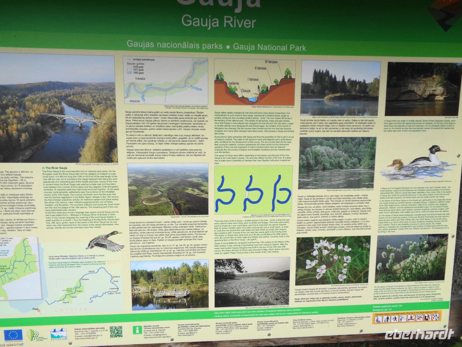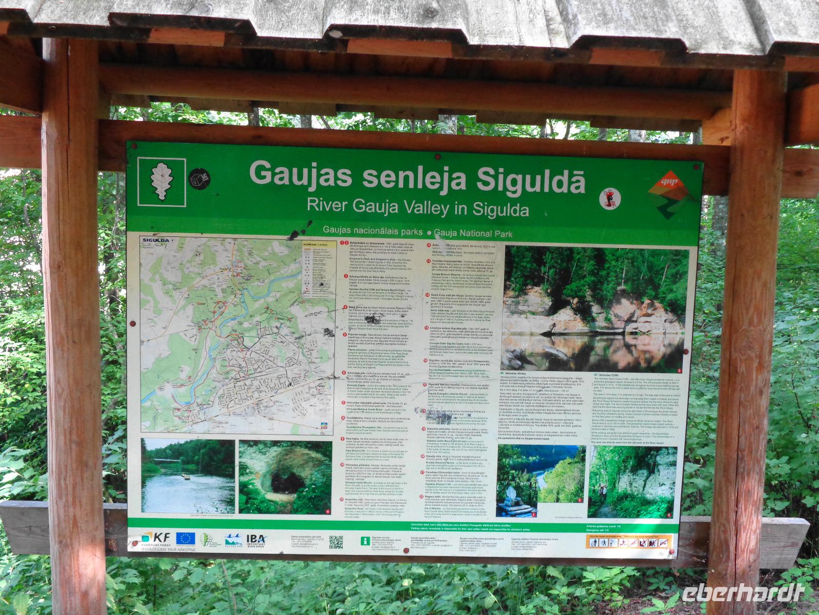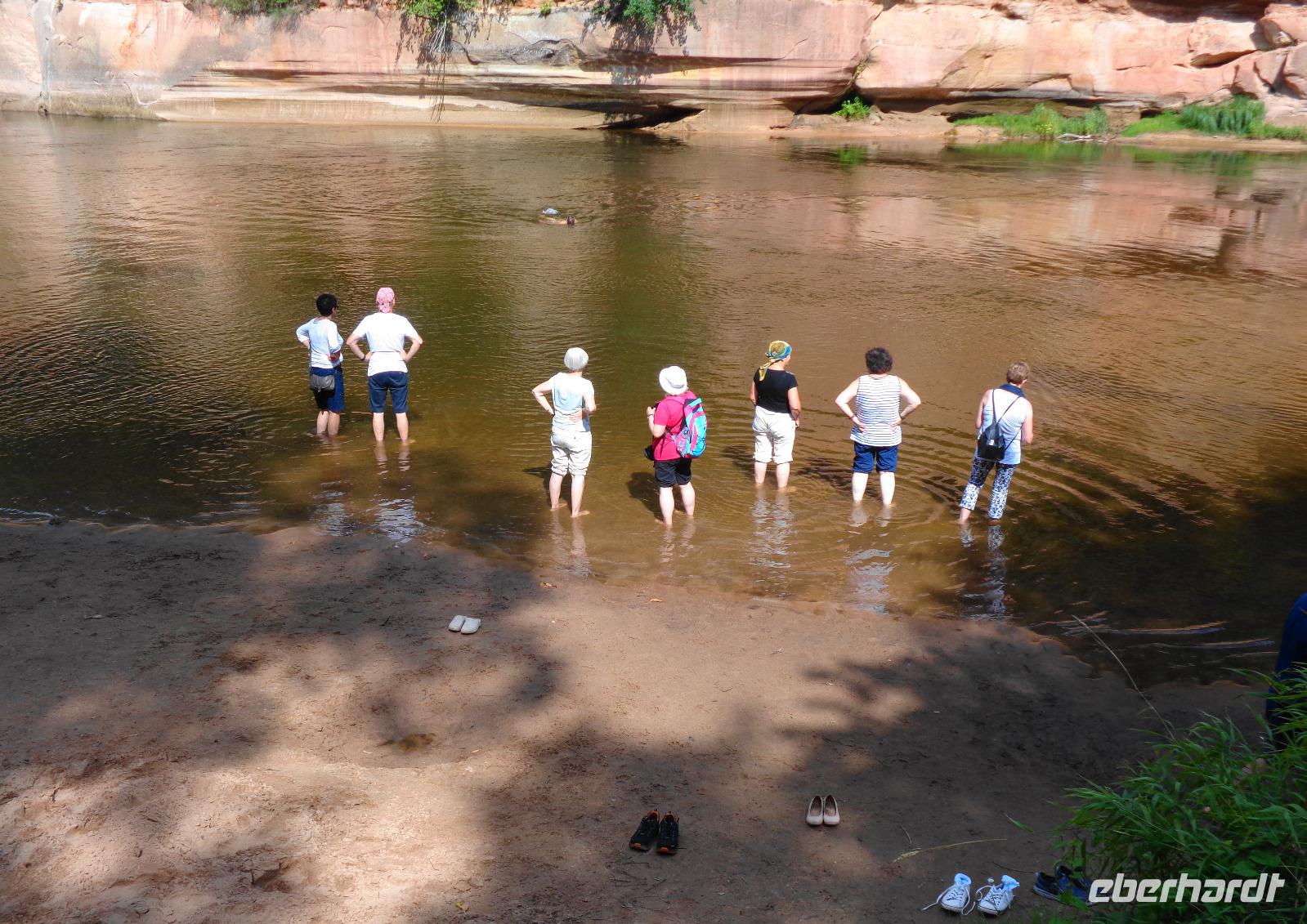 Mit seinen 917 km2 ist der Gauja-Nationalpark der größte des Baltikums. Die grandiose Landschaft des Urstromtals der Gauja mit über 30 m hohen Sandsteinfelsen und zahlreichen Höhlen ist ein Eldorado für Naturfreunde. Unsere Wanderung durch die „Livländische Schweiz" führte uns an die Ufer der Gauja mit ihren beeindruckenden Steilufern und einige unserer Wasserratten nützten auch hier die Möglichkeit zu einem erfrischenden Bad. An der Gutmannshöhle, der größten im Baltikum, lauschten wir der Geschichte von der tragischen Liebe eines jungen Mädchens, der „Rose von Turaida", zu zwei Männern.