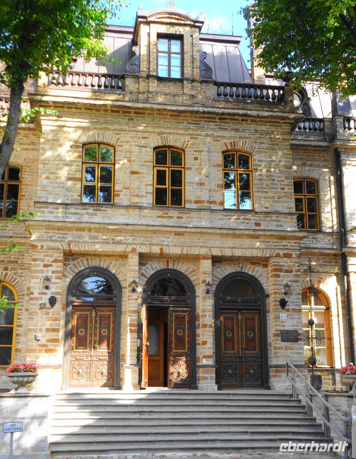 Da unser Heimflug nach Deutschland erst am Nachmittag ging, hatten wir am Vormittag noch Gelegenheit, den gutbürgerlichen Stadtteil Katharinental zu erkunden. Wir schlenderten vorbei an den schön renovierten Villen aus dem 19. u. 20. Jh., sahen den Amtssitz der estnischen Staatspräsidentin und bestaunten den modernen Neubau des Estnischen Kunstmuseums KUMU, das eine umfangreiche Sammlung estnischer Kunst beherbergt. Das „Peterhäuschen", ein ehemaliges Wohnhaus des Zaren, ist heute ein Museum.