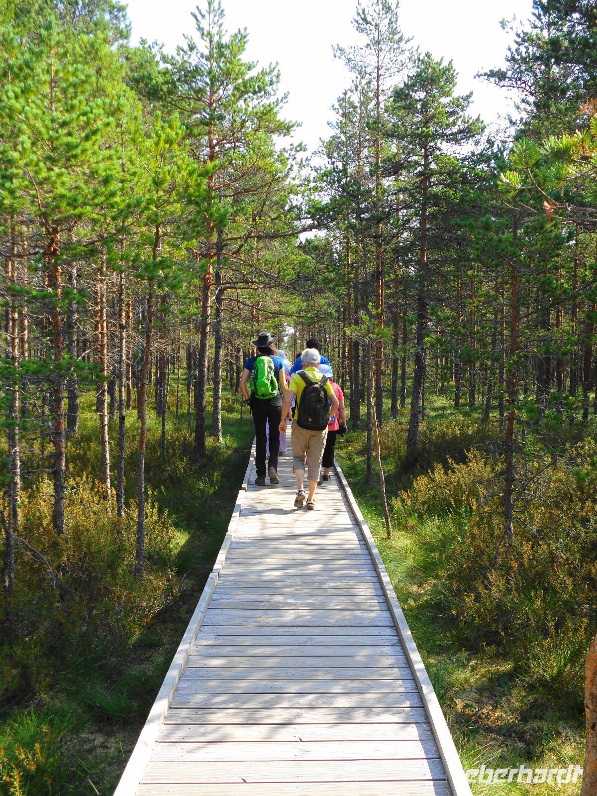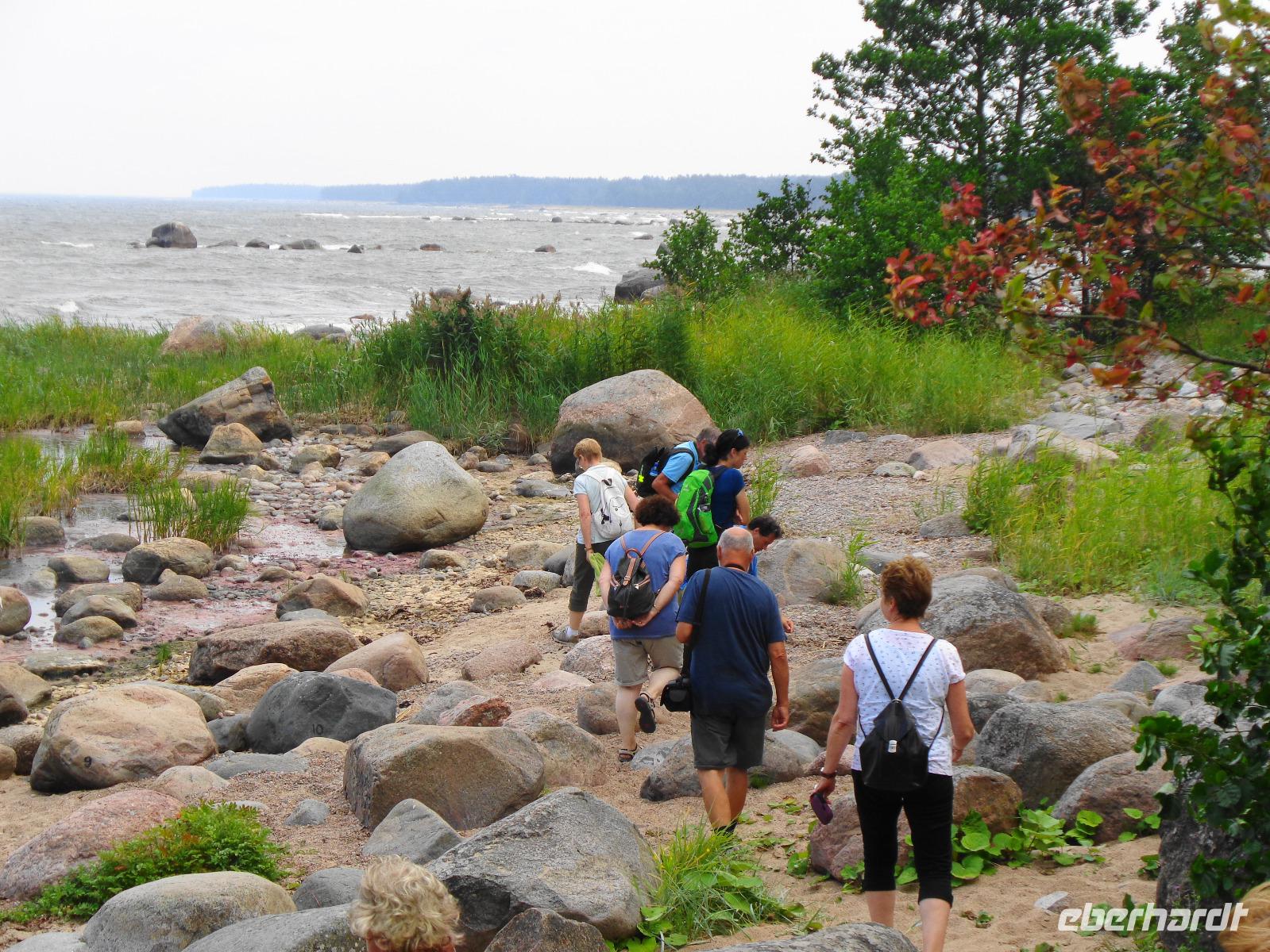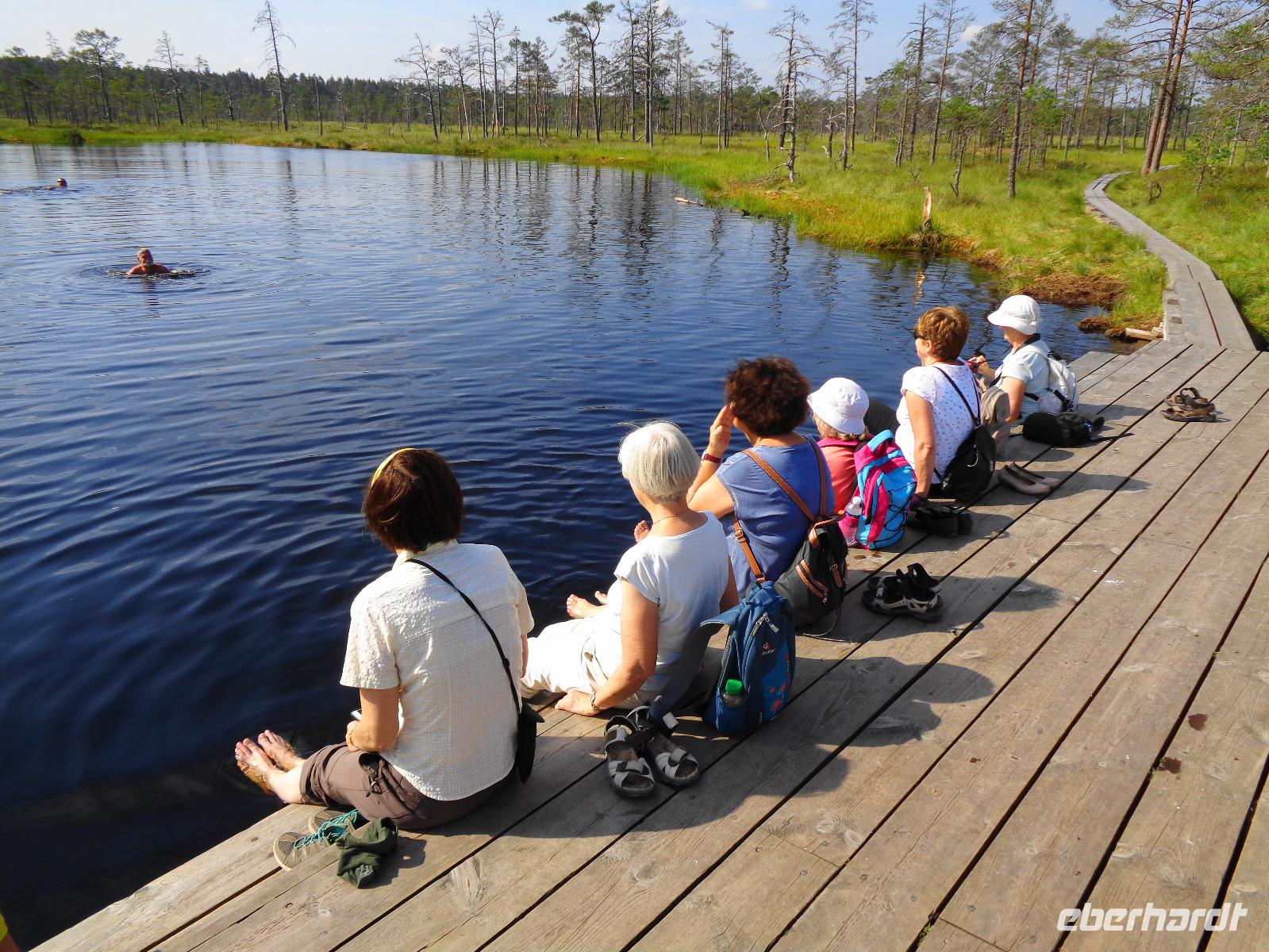 Am heutigen Tag war Eduard, ein estnischer Reiseleiter, unser Begleiter. Mit ihm wanderten wir durch den Lahemaa NP, der vor fast 50 Jahren der erste NP der Sowjetunion war und heute der größte in Estland ist. Dieses Naherholungsgebiet der Tallinner besticht durch einsame Wälder, Sümpfe, unzählige Seen und malerische Küstengebiete. Holzstege führten uns durch Moore, Kiefernwälder und zu idyllischen Seen.