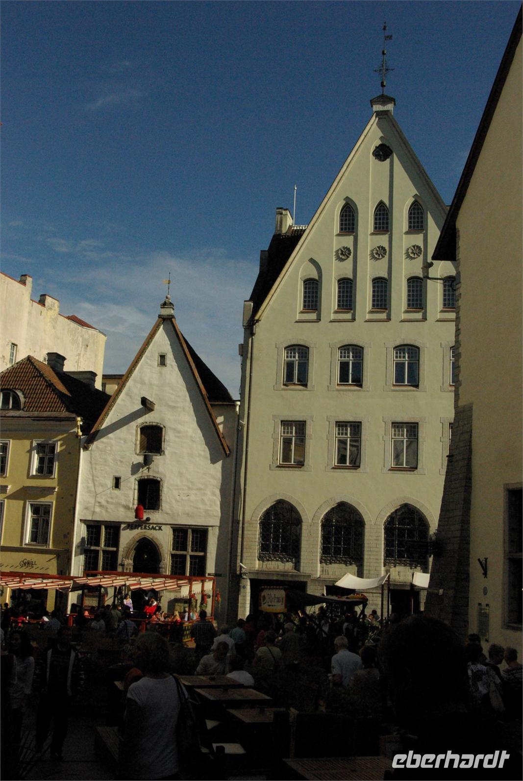 Ab 19 Uhr trafen sich alle zum Abendessen in den gotischen Gewölben des„Peppersack". Aus Anlass des Bergfestes der Reise gab es im Namen von Eberhardt- Travel einen zünftigen Peppersackwodka nach Art des Hauses, der so recht Platz im Magen für das reichhaltig rustikale Abendbrot schuf. Schweren Herzens verabschiedeten wir die so engagierte wie kompetente Reiseleiterin Regina, die allen ans Herz gewachsen war. Viele traten danach mit ihr den Heimweg zum Hotel an, doch einige genossen noch das rege Treiben in der alten Hansestadt Reval.