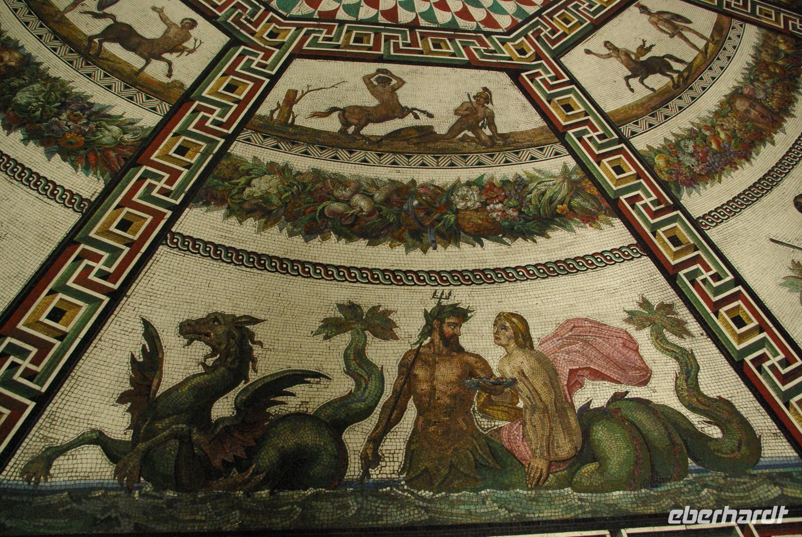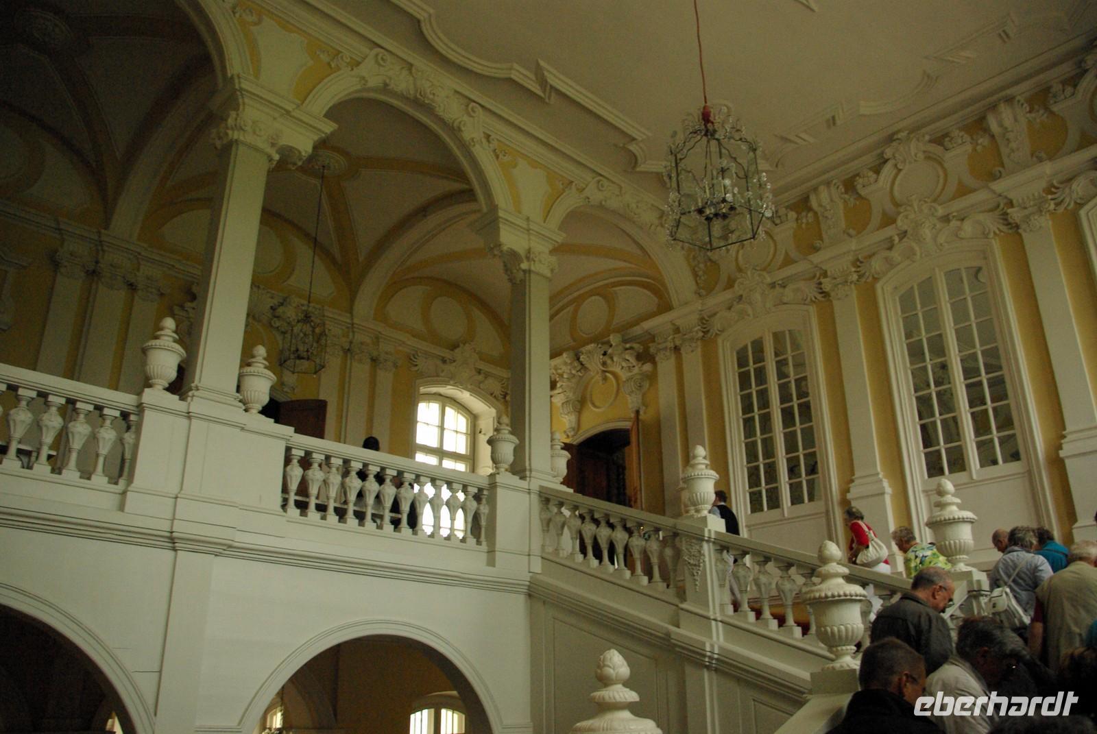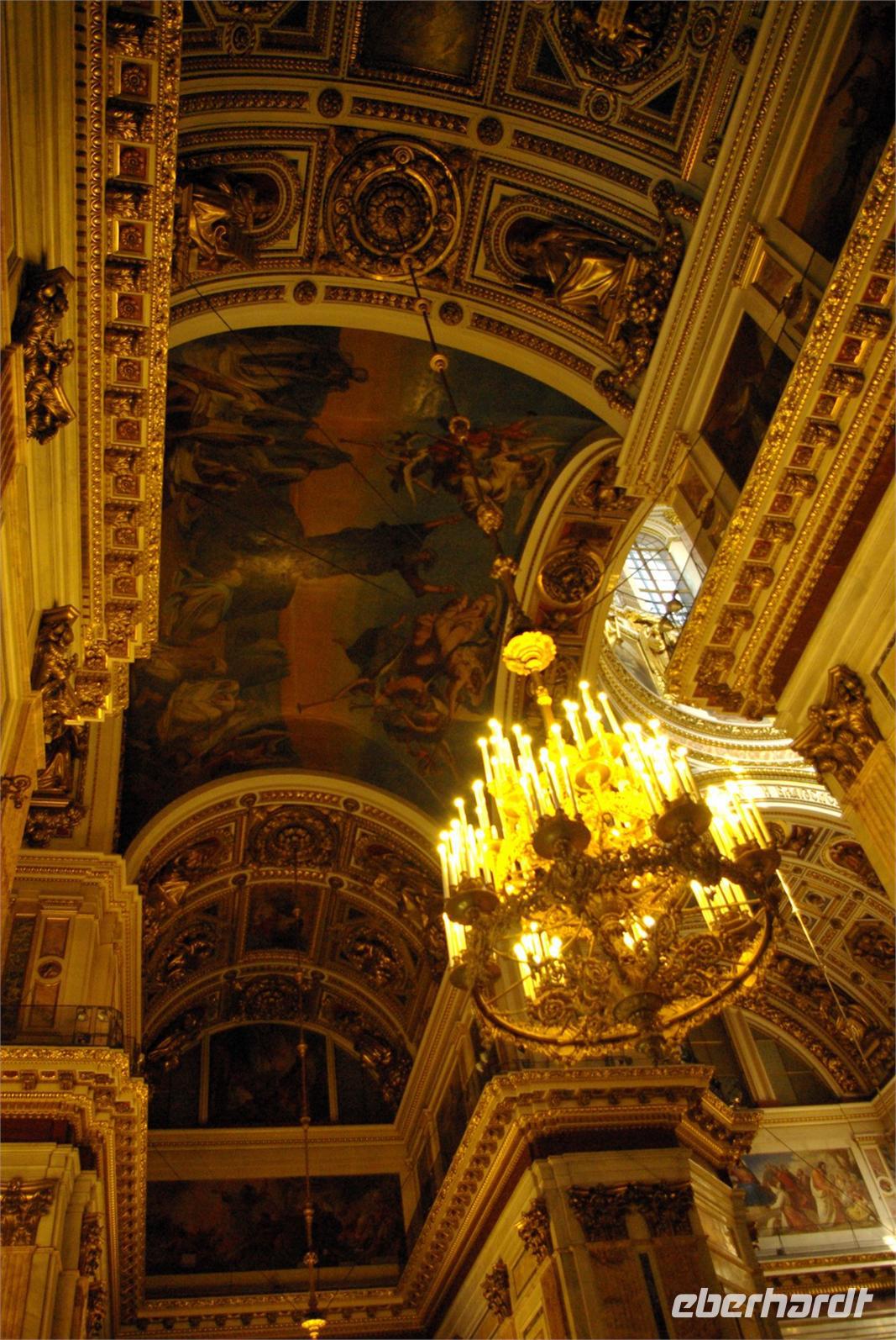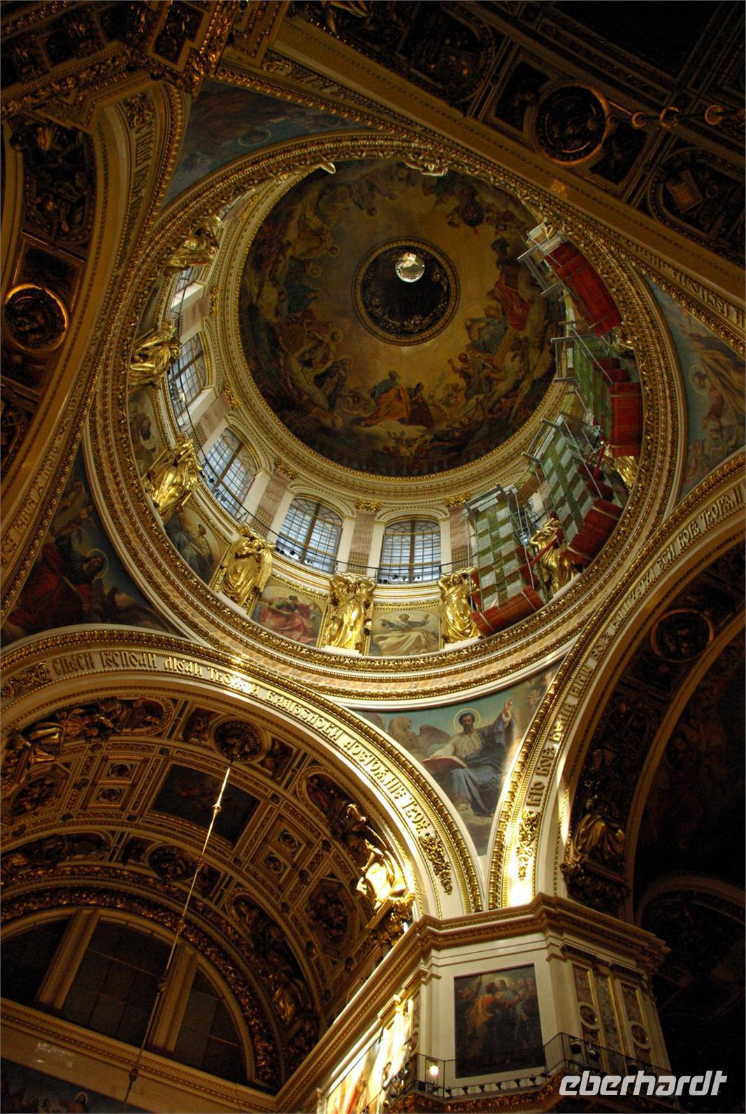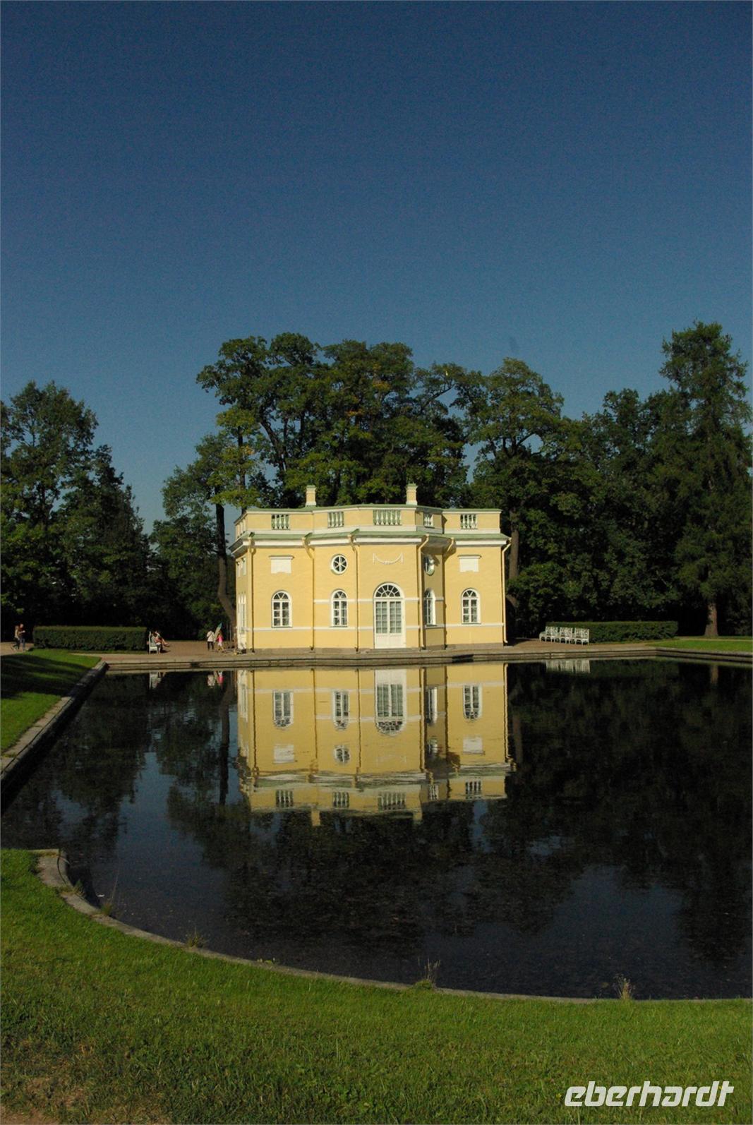 Das Besichtigungsprogramm begann an der Auferstehungskirche, im Volksmund Blutkirche, die zum Andenken an den ermordeten Zaren Alexander von dessen gleichnamigem Sohn in tradierter Moskauer Bauweise mit vielen bunten Zwiebeltürmen errichtet wurde. Danach kam mit dem Besuch der Eremitage der mit Abstand kunsthistorische Höhepunkt der Reise, denn schließlich ist sie eine der drei größten Kunstsammlungen überhaupt, wohl auch qualitativ. Nach der Mittagspause mit Bordverpflegung wartete mit Peterhof ein weiterer Höhepunkt. Die nach dem Vorbild von Versailles als Sommerschloss erbaute Anlage begeistert vor allem durch die imposanten Wasserspiele mit zahlreichen vergoldeten Figuren. Leider regnete es anfänglich, doch nach einer Weile war wieder trockenes und halbwegs helles Wetter, so dass auch die Fotografen auf ihre Kosten kamen.