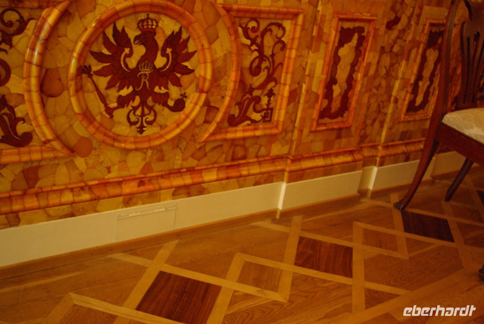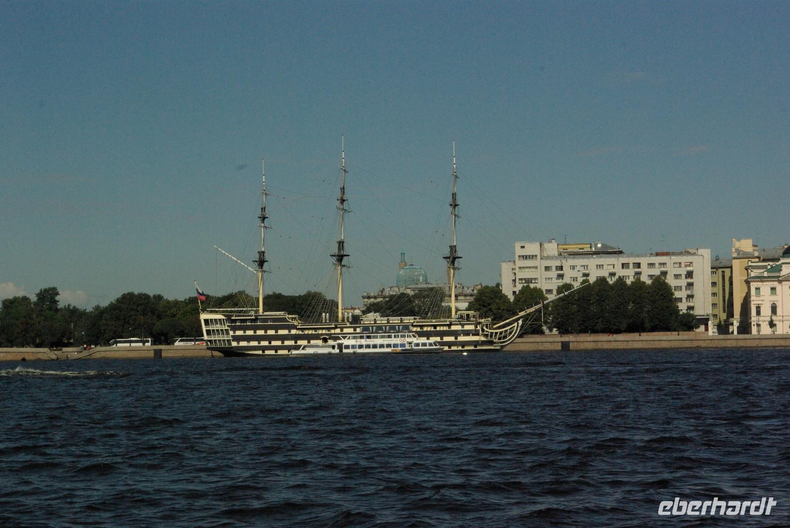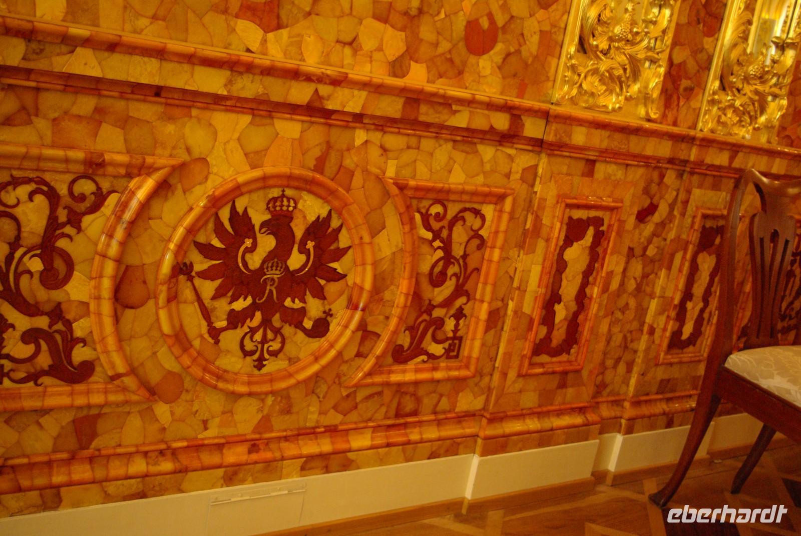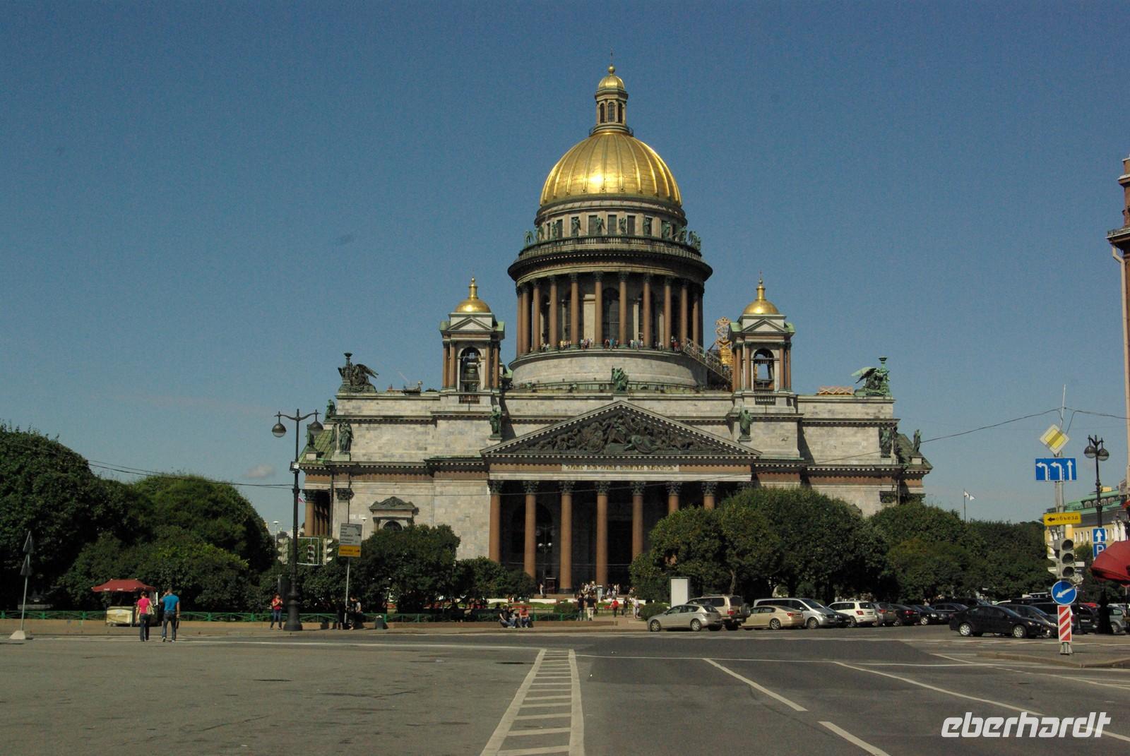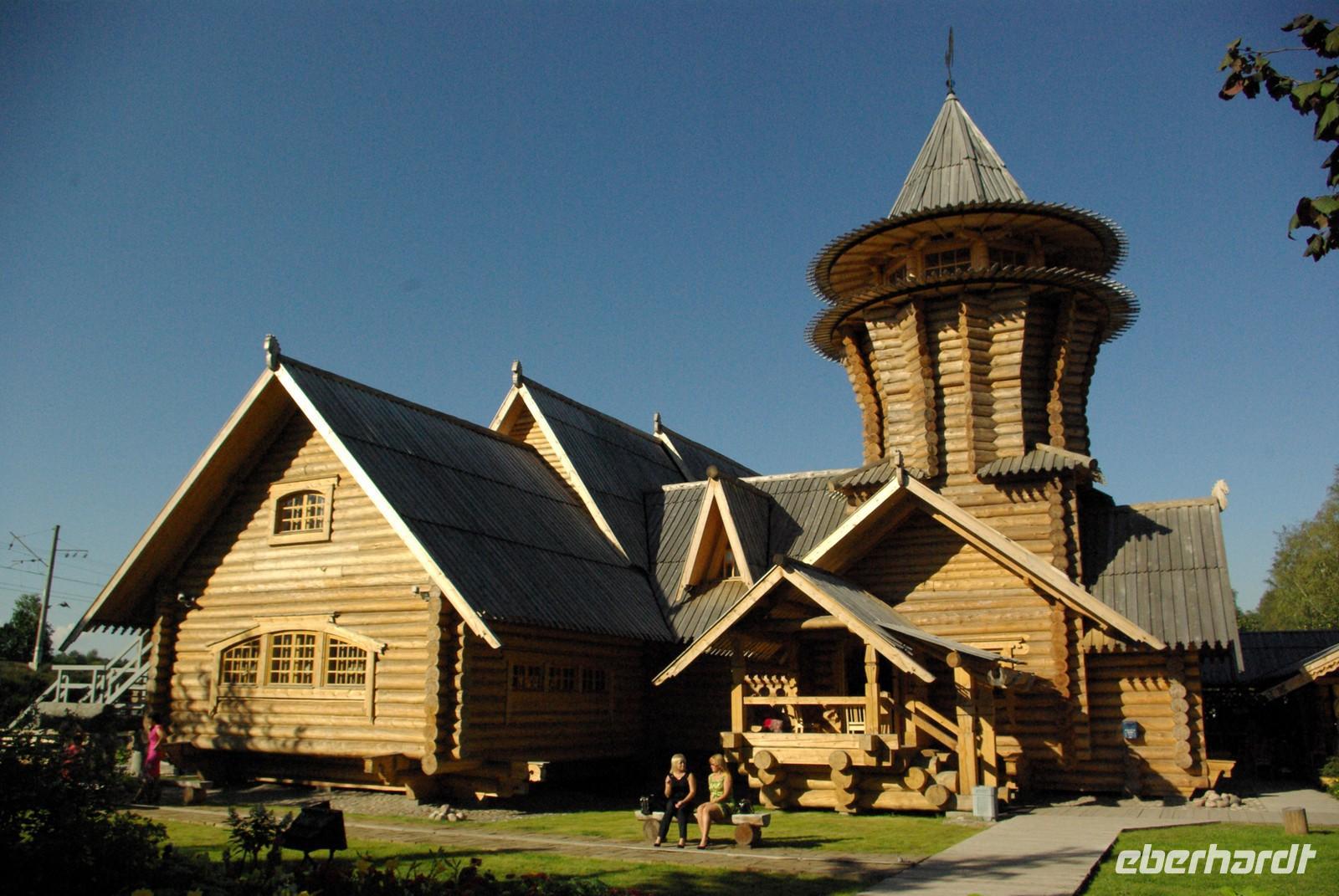 Nach dem Frühstück traf sich die Gruppe um 09.30 Uhr am Bus zur Stadtbesichtigung, die mit einem Ausstieg am barocken Smolnykloster, einer Lehranstalt für adlige Hofdamen und erste Machtzentrale Lenins, begann. Anschließend fuhren wir auf die Insel mit der Peter- und Paul- Festung und besichtigten die gleichnamige Kathedrale mit den Gräbern der wichtigsten einst in Petersburg residierenden Zaren aus der Romanow- Dynastie, einschließlich der Familie Nikolaus II, die von den Bolschewiki ermordet und deren Leichen erst in den Neunzigern umgebettet wurden. Den langen Newskiprospekt entlang, vorbei an der Kasaner Kathedrale, pausierten wir auf der Rostrabrücke unweit der Börse, um dann die russisch- orthodoxe Hauptkirche, die Isaakkathedrale zu besichtigen, die sich wie die Kasaner Kathedrale architektonisch an den Petersdom in Rom anlehnt. Die anschließende Mittagspause nutzten alle zu einer einstündigen Bootsrundfahrt auf der Newa und zwei Nebenflüssen, die beste Blicke auf den Marmorpalast des Fürsten Orlow und den Panzerkreuzer Aurora, sowie diverse Paläste und Kirchen bot. Am Nachmittag fuhren wir nach Zarskoe Selo, heute Puschkin, um den Katharinenpalast mit dem legendenumwobenen Bernsteinzimmer anzusehen. Hier war einiger Andrang, der letztendlich eine knappe Stunde Anstehzeit an mehreren Stationen erzeugte, doch gestählt durch die Tücken russischer Grenzwillkür fiel diese Zeit kaum ins Gewicht und das grandiose Ensemble belohnte die Geduld überreichlich. Bei der Führung durch schier endlose Gänge verloren sich die Massen auch wieder, nur im Bernsteinzimmer ballte sich das Publikum, allerdings war zügiger Durchlauf organisiert. Danach fuhren wir zum nahe gelegenen Restaurant „Podvorie", einem zwar nagelneu, doch in traditioneller Holzblockbauweise errichteten Komplex, der ein wenig an Baba Jagas Hexenhaus erinnerte. Hier erwartete uns an langer Tafel ein zünftig rustikal- russisches Mahl mit Borschtsch und diversen weiteren Gängen, denen guter Wodka Platz im Magen schaffte, der auch die allgemeine Kommunikation beförderte, die danach im Hotel ihre Fortsetzung fand.
