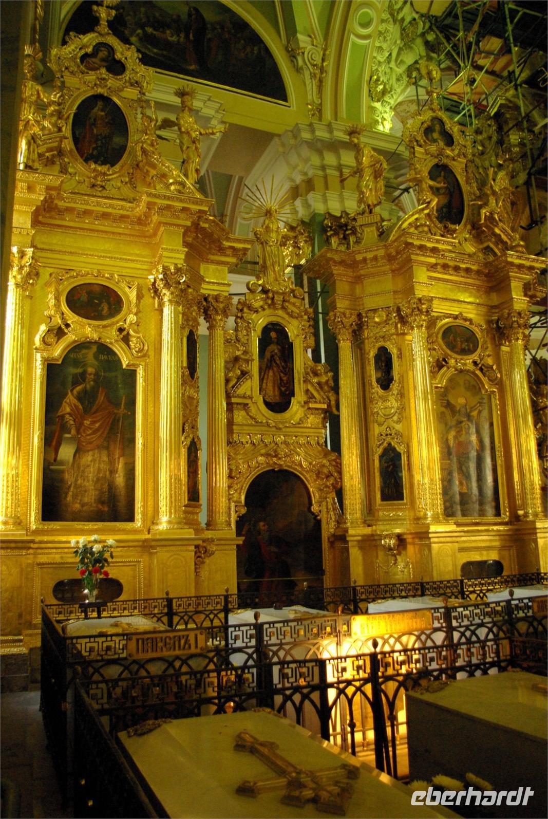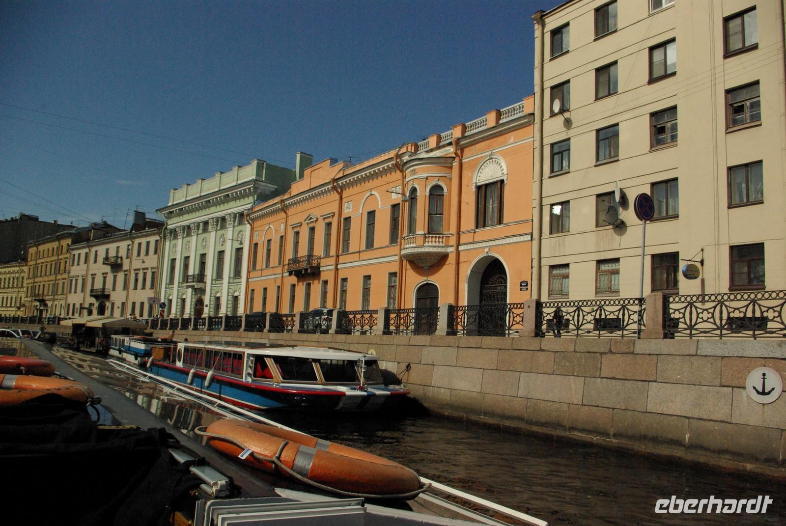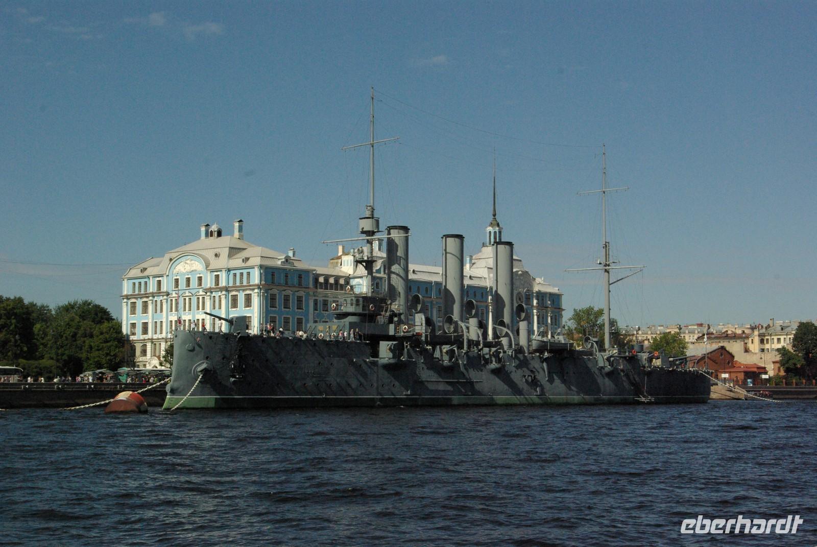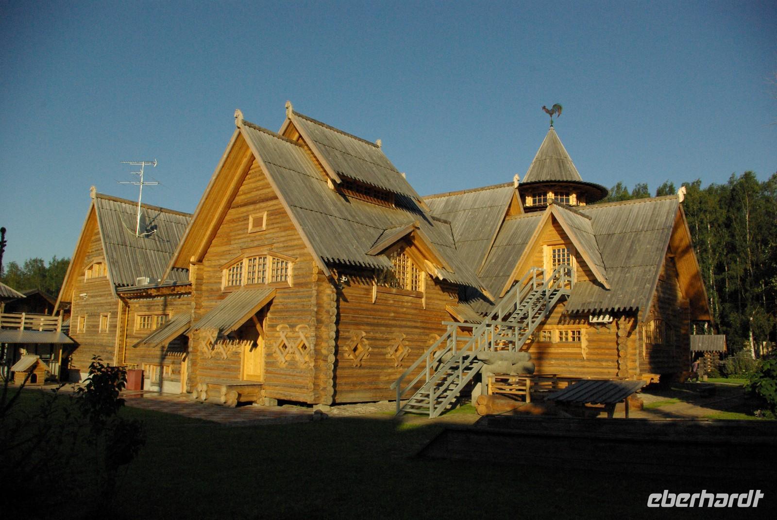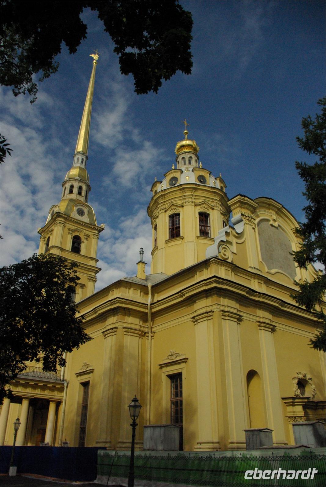 Nach dem Frühstück traf sich die Gruppe um 09.30 Uhr am Bus zur Stadtbesichtigung, die mit einem Ausstieg am barocken Smolnykloster, einer Lehranstalt für adlige Hofdamen und erste Machtzentrale Lenins, begann. Anschließend fuhren wir auf die Insel mit der Peter- und Paul- Festung und besichtigten die gleichnamige Kathedrale mit den Gräbern der wichtigsten einst in Petersburg residierenden Zaren aus der Romanow- Dynastie, einschließlich der Familie Nikolaus II, die von den Bolschewiki ermordet und deren Leichen erst in den Neunzigern umgebettet wurden. Den langen Newskiprospekt entlang, vorbei an der Kasaner Kathedrale, pausierten wir auf der Rostrabrücke unweit der Börse, um dann die russisch- orthodoxe Hauptkirche, die Isaakkathedrale zu besichtigen, die sich wie die Kasaner Kathedrale architektonisch an den Petersdom in Rom anlehnt. Die anschließende Mittagspause nutzten alle zu einer einstündigen Bootsrundfahrt auf der Newa und zwei Nebenflüssen, die beste Blicke auf den Marmorpalast des Fürsten Orlow und den Panzerkreuzer Aurora, sowie diverse Paläste und Kirchen bot. Am Nachmittag fuhren wir nach Zarskoe Selo, heute Puschkin, um den Katharinenpalast mit dem legendenumwobenen Bernsteinzimmer anzusehen. Hier war einiger Andrang, der letztendlich eine knappe Stunde Anstehzeit an mehreren Stationen erzeugte, doch gestählt durch die Tücken russischer Grenzwillkür fiel diese Zeit kaum ins Gewicht und das grandiose Ensemble belohnte die Geduld überreichlich. Bei der Führung durch schier endlose Gänge verloren sich die Massen auch wieder, nur im Bernsteinzimmer ballte sich das Publikum, allerdings war zügiger Durchlauf organisiert. Danach fuhren wir zum nahe gelegenen Restaurant „Podvorie", einem zwar nagelneu, doch in traditioneller Holzblockbauweise errichteten Komplex, der ein wenig an Baba Jagas Hexenhaus erinnerte. Hier erwartete uns an langer Tafel ein zünftig rustikal- russisches Mahl mit Borschtsch und diversen weiteren Gängen, denen guter Wodka Platz im Magen schaffte, der auch die allgemeine Kommunikation beförderte, die danach im Hotel ihre Fortsetzung fand.