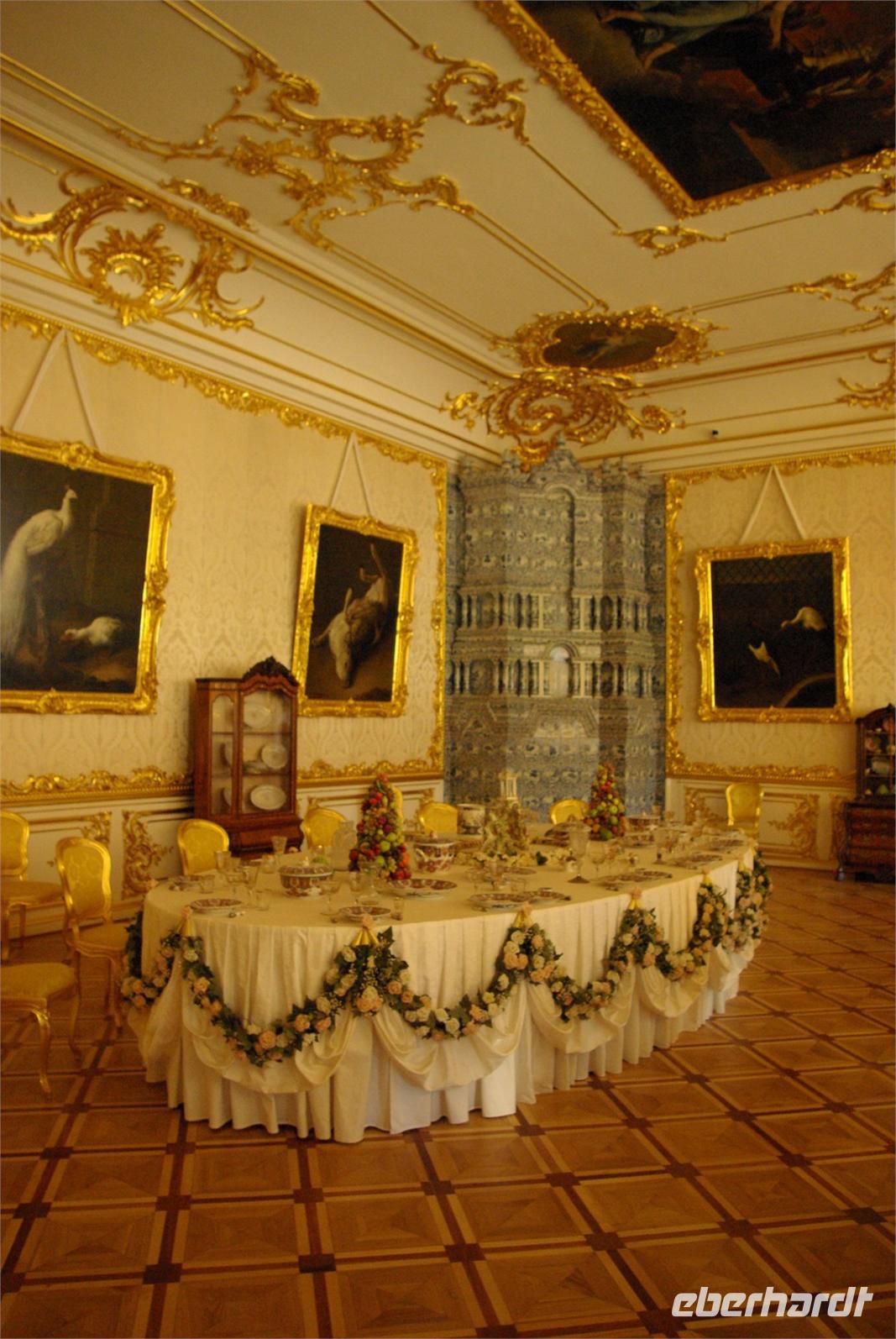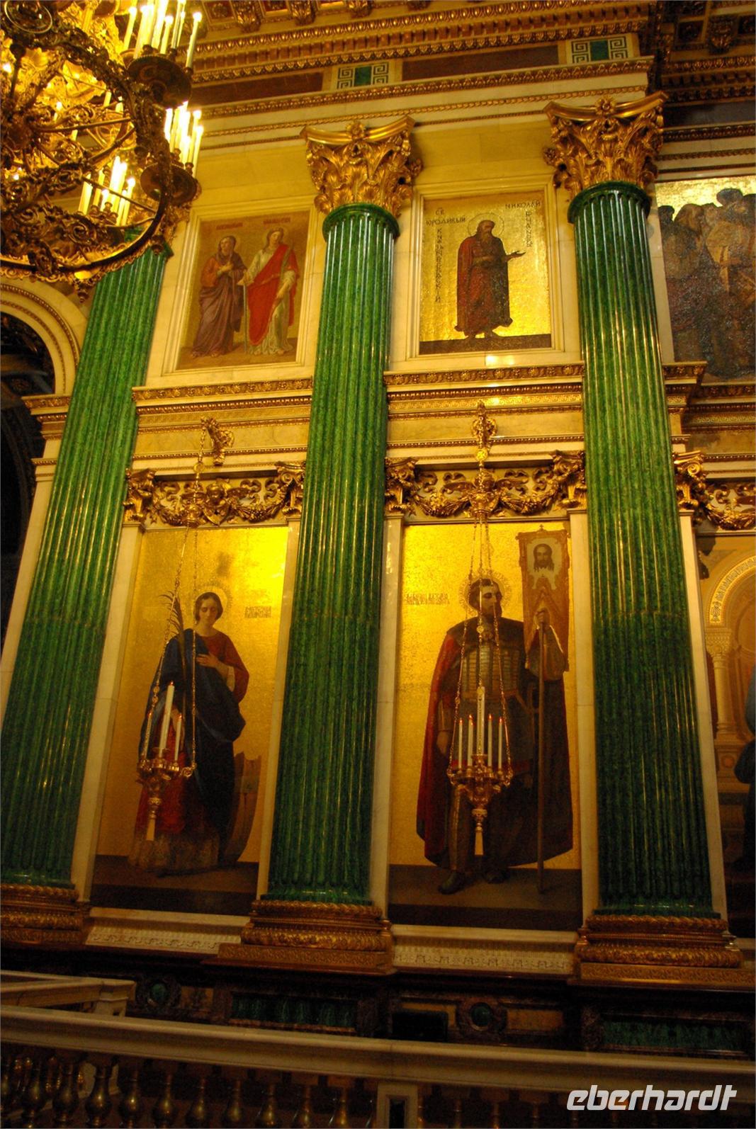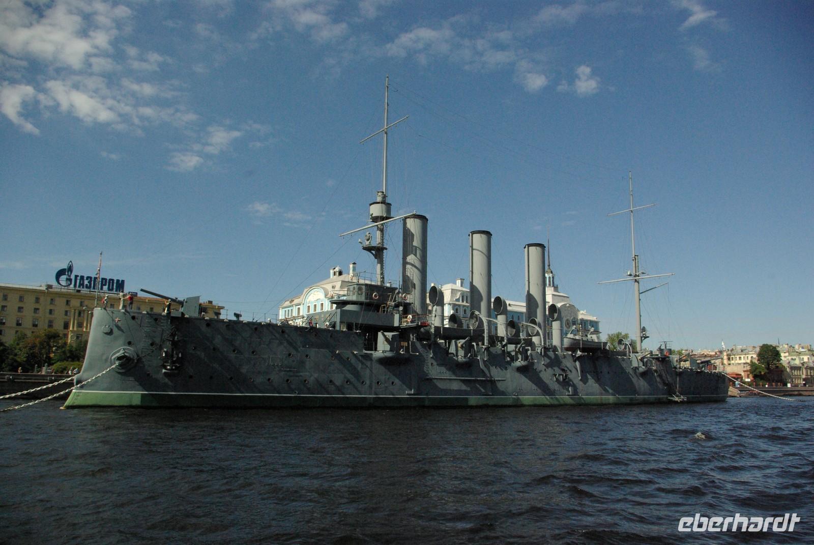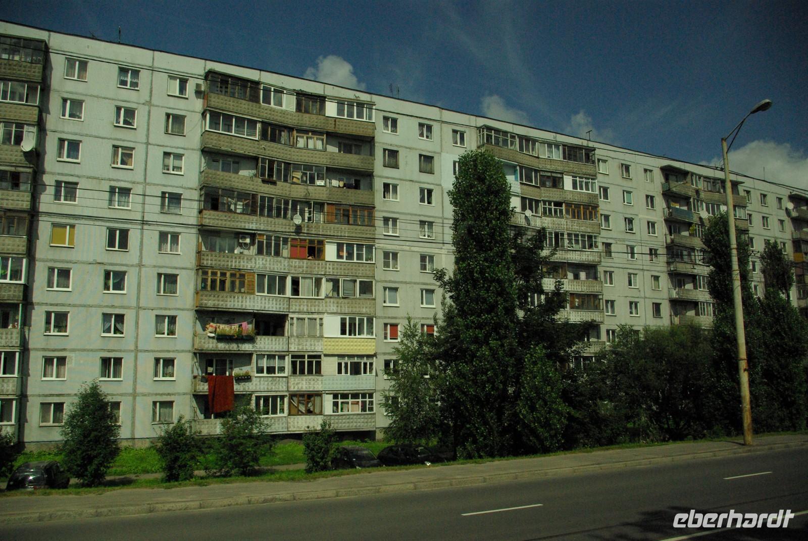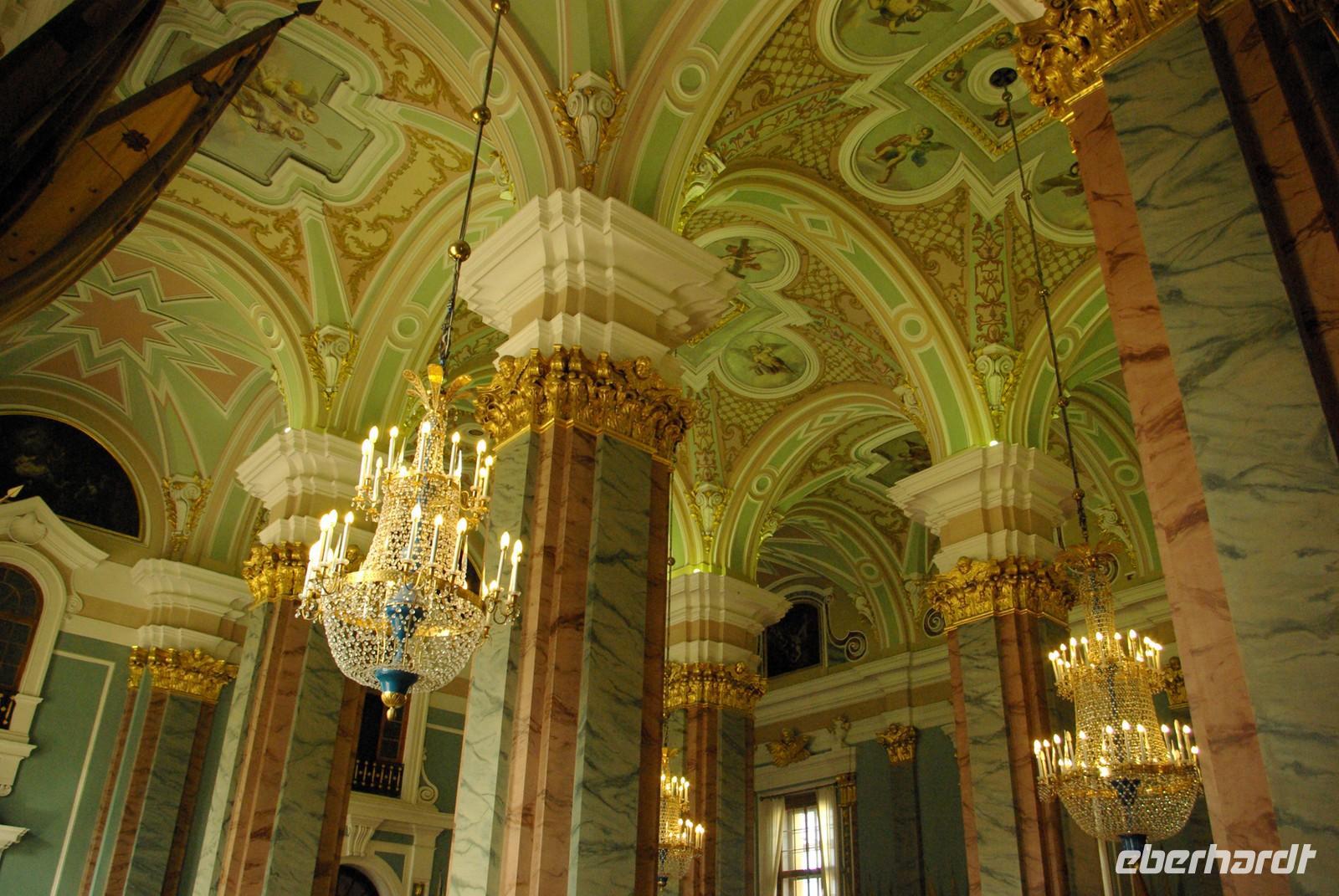 Nach dem Frühstück traf sich die Gruppe um 09.30 Uhr am Bus zur Stadtbesichtigung, die mit einem Ausstieg am barocken Smolnykloster, einer Lehranstalt für adlige Hofdamen und erste Machtzentrale Lenins, begann. Anschließend fuhren wir auf die Insel mit der Peter- und Paul- Festung und besichtigten die gleichnamige Kathedrale mit den Gräbern der wichtigsten einst in Petersburg residierenden Zaren aus der Romanow- Dynastie, einschließlich der Familie Nikolaus II, die von den Bolschewiki ermordet und deren Leichen erst in den Neunzigern umgebettet wurden. Den langen Newskiprospekt entlang, vorbei an der Kasaner Kathedrale, pausierten wir auf der Rostrabrücke unweit der Börse, um dann die russisch- orthodoxe Hauptkirche, die Isaakkathedrale zu besichtigen, die sich wie die Kasaner Kathedrale architektonisch an den Petersdom in Rom anlehnt. Die anschließende Mittagspause nutzten alle zu einer einstündigen Bootsrundfahrt auf der Newa und zwei Nebenflüssen, die beste Blicke auf den Marmorpalast des Fürsten Orlow und den Panzerkreuzer Aurora, sowie diverse Paläste und Kirchen bot. Am Nachmittag fuhren wir nach Zarskoe Selo, heute Puschkin, um den Katharinenpalast mit dem legendenumwobenen Bernsteinzimmer anzusehen. Hier war einiger Andrang, der letztendlich eine knappe Stunde Anstehzeit an mehreren Stationen erzeugte, doch gestählt durch die Tücken russischer Grenzwillkür fiel diese Zeit kaum ins Gewicht und das grandiose Ensemble belohnte die Geduld überreichlich. Bei der Führung durch schier endlose Gänge verloren sich die Massen auch wieder, nur im Bernsteinzimmer ballte sich das Publikum, allerdings war zügiger Durchlauf organisiert. Danach fuhren wir zum nahe gelegenen Restaurant „Podvorie", einem zwar nagelneu, doch in traditioneller Holzblockbauweise errichteten Komplex, der ein wenig an Baba Jagas Hexenhaus erinnerte. Hier erwartete uns an langer Tafel ein zünftig rustikal- russisches Mahl mit Borschtsch und diversen weiteren Gängen, denen guter Wodka Platz im Magen schaffte, der auch die allgemeine Kommunikation beförderte, die danach im Hotel ihre Fortsetzung fand.