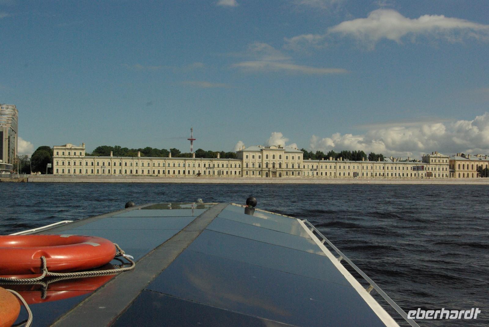 Nach einem hervorragenden Frühstücksbuffet traten wir wegen des anspruchsvollen Tagesprogramms mit Einreise nach Russland bereits um 07.30 Uhr die Weiterreise an. Den russischen Reiseführer Timofej, abgekürzt Tim, nahmen wir im nächsten größeren Ort auf. Gemeinsam fuhren wir durch den Nachmittagsstau nach Petersburg zum Hotel, wo wir gleich zum Abendessen gehen konnten. Danach nahmen einige Gäste mein Angebot zu einem Stadtbummel mit Metro und per pedes an und so genossen wir einen Abend an Newa und Winterpalais.Sonnabend, den 18. August