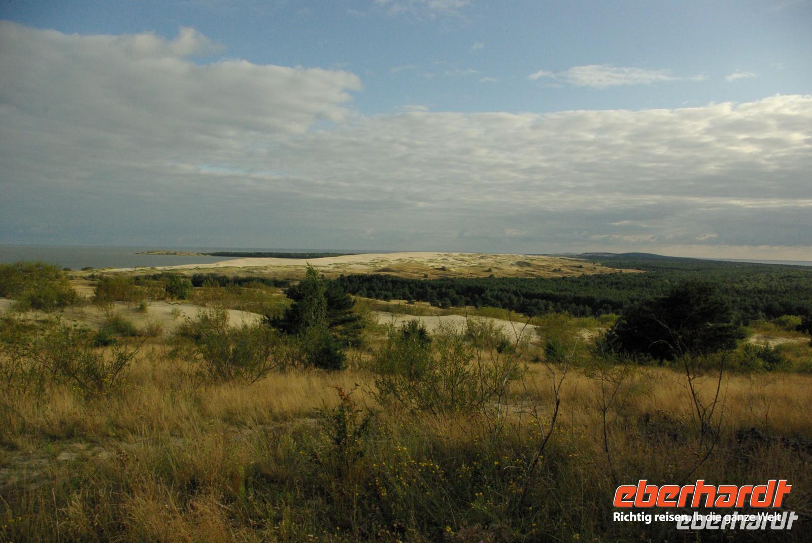 Auf der litauischen Seite wartete schon Regina, unsere Führerin durch die drei baltischen Republiken. Sie fuhr mit uns sofort zur hohen Düne bei Nidden auf der litauischen Seite der kurischen Nehrung. Im letzten Abendlicht hatten wir wunderbare Ausblicke auf die Wanderdünen, deren höchste nunmehr 54 Meter hoch ist. Dieser herrliche Eindruck war wirklich schöner Tagesabschluss. Nach einem leckeren Abendessen, Regina hatte schon organisiert, dass die Getränke mit Euros zu bezahlen sind, unternahmen viele noch einen Verdauungsspaziergang durch Nidden, das an diesem milden Samstagabend von zahlreichen Urlaubern belebt war.