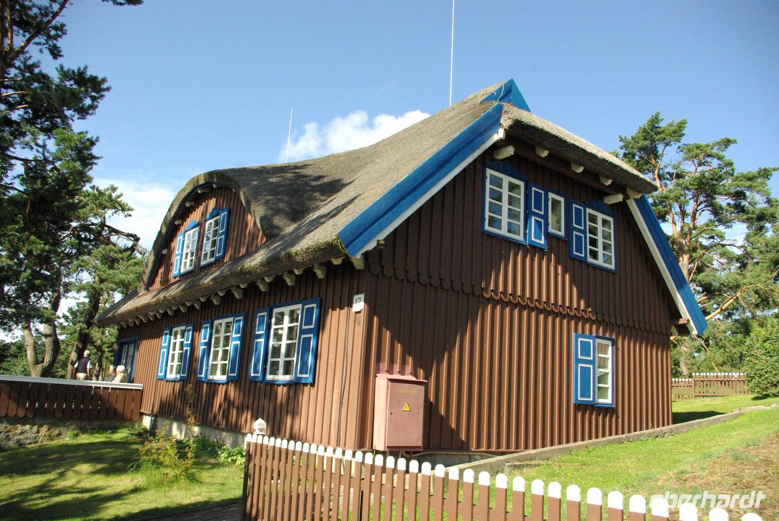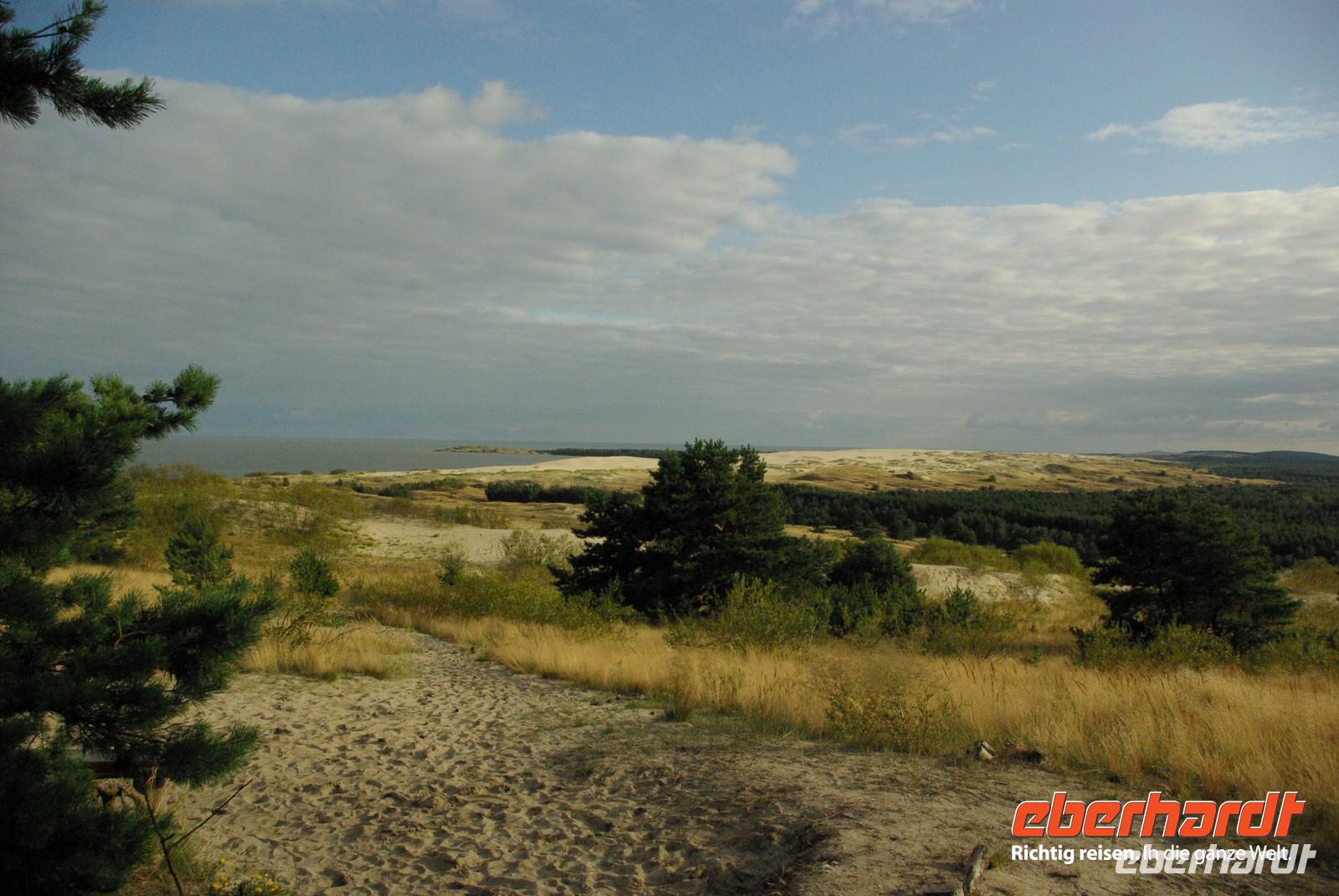Nach dem reichhaltigen Frühstück unternahmen wir einen ruhigen Spaziergang durch Nidden und vorbei an den bunten Fischerkaten kamen wir zum Bernsteinmuseum, in dem wir eine kleine Führung bekamen. Mit dem Bus fuhren wir dann zum Sommerhaus, das Thomas Mann sich vom Nobelpreisgeld 1929 über dem berühmten „Italienblick" hat bauen lassen. Nach der Besichtigung pausierten wir auf Wunsch der meisten Mitreisenden auch noch an der Ostseeseite der Nehrung. Sonnenschein und Schäfchenwolken zu grandioser Dünenvegetation- was will man mehr. Mit der Fähre ging es in den Hafen von Klaipeda, früher die Ordensritterburg Memel. Die Stadt hat unter Kriegen und Sowjetzeit enorm gelitten, nur noch wenige wirklich bedeutende historische Gebäude sind zu sehen. Dazu zählt das eher schlichte Herrenhaus, in dem Preußenkönig Friedrich Wilhelm III. mit seiner Luise 1807/08 residierte, wodurch die Stadt zur preußischen Hauptstadt avancierte. Obwohl allerhand Cafés und Restaurants geöffnet waren, wirkten die Straßen wie ausgestorben. Kein Wunder, war doch fast die ganze Einwohnerschaft in einem riesigen Einkaufscenter am Stadtrand versammelt, wo wir Geld- und hygienische Bedürfnisse befriedigen konnten.