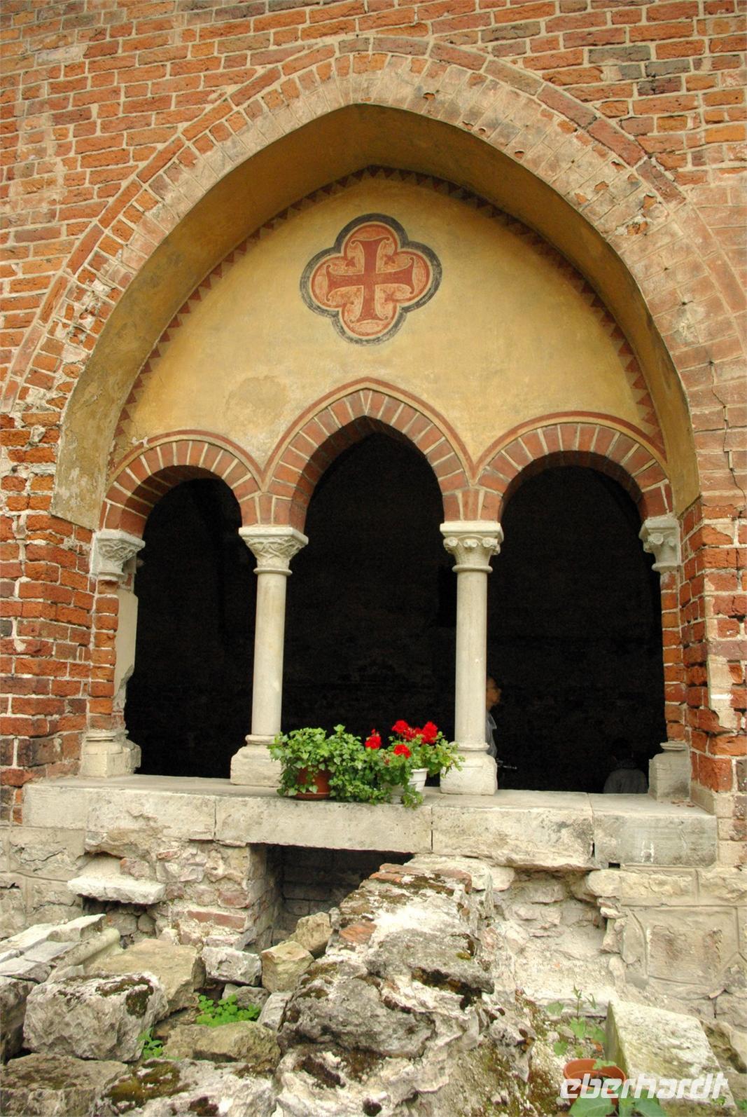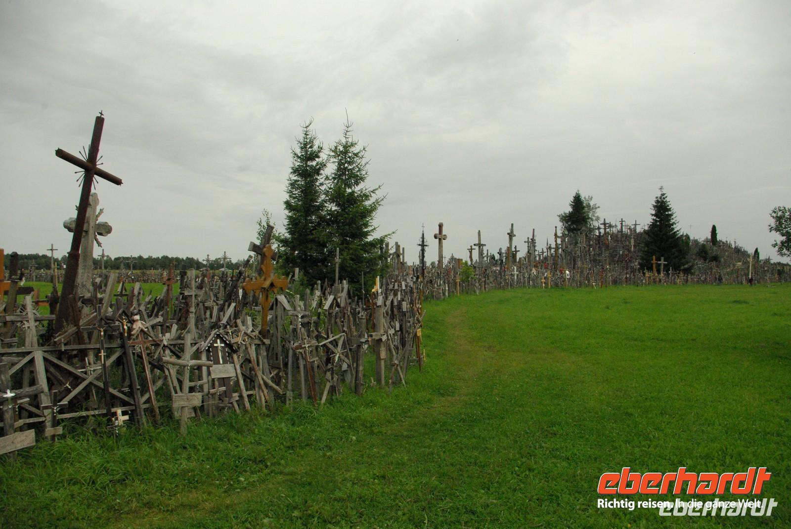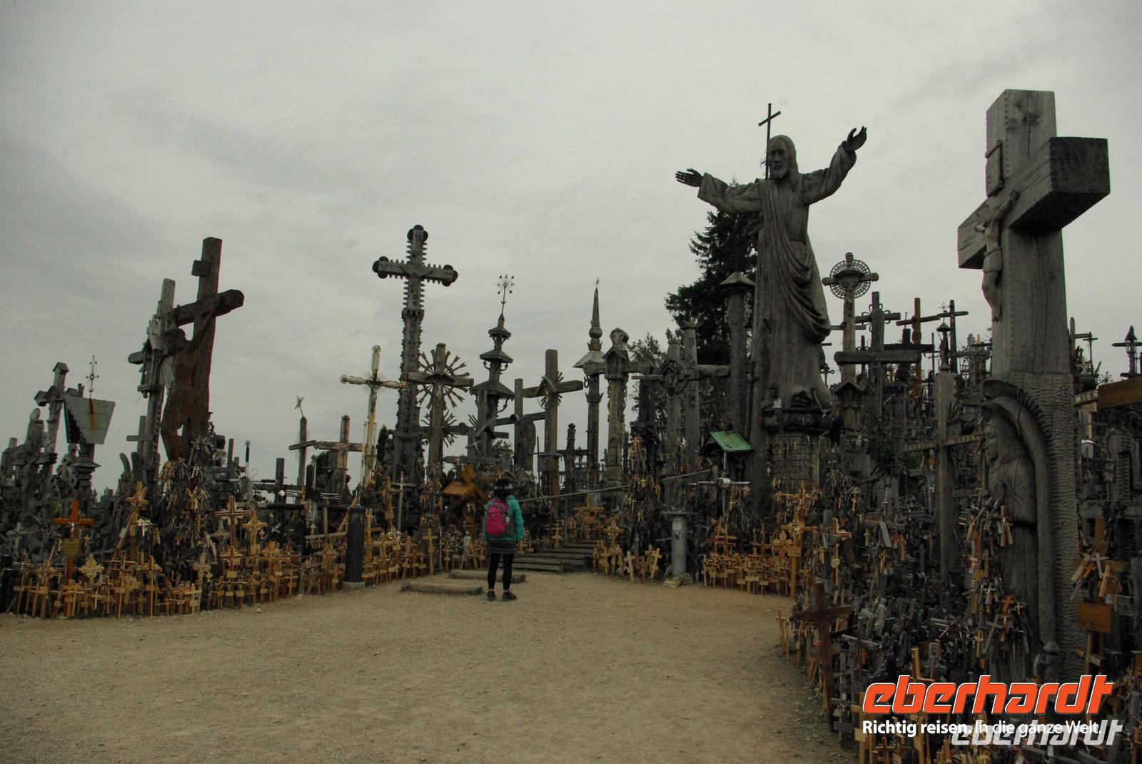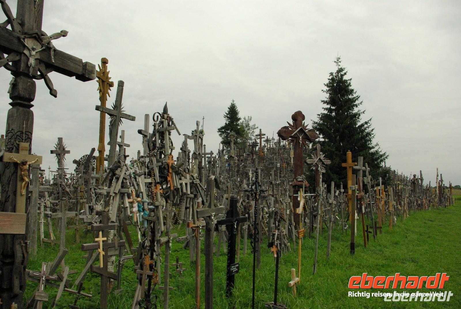Nach der Mittagspause fuhren wir knapp 30 Kilometer zur Wasserburg Trakai, dem Wahrzeichen des unabhängigen Litauen und einem Höhepunkt der Reise. Die nur über einen Steg erreichbare Burg wurde der Legende nach schon von Fürst Gediminas als Holzfestung errichtet, die mehrfach abbrannte. Ende des 14. Jahrhunderts errichtete Vytautas der Große die steinerne Burg mit diversen Anleihen beim Deutschen Orden in Stil und Fortifikation, so dass man sich in einer kleinen Ausgabe der Marienburg wähnt. Der durch leidvolle Erfahrungen misstrauische Vytautas rekrutierte sich von der Krim, denn so weit ging sein Herrschaftsbereich, etwa 400 Familien der Karäer, ein Turkvolk, das im 7. Jahrhundert eine jüdische Sekte gebildet hatte, die sich zwar an der Thora, nicht aber an den Folgeschriften orientierte. Ganz nach dem Vorbild Kaiser Friedrich II. von Hohenstauffen, dessen Leibgarde aus sizilianischen Bergmuselmanen bestand, stellten diese Karäer die Leibwache für Vytautas. Auf dem festländischen Ortsteil sieht man noch ihre giebelständigen Holzhäuser mit den drei Fenstern: eins für Vater im Himmel, eins für den auf Erden und eines für Vytautas. Auch die Kerene, wie ihre Synagoge genannt wird, steht noch und in mehreren Gaststätten kann man ihr Nationalgericht, die typisch gefüllten Teigtaschen kosten.