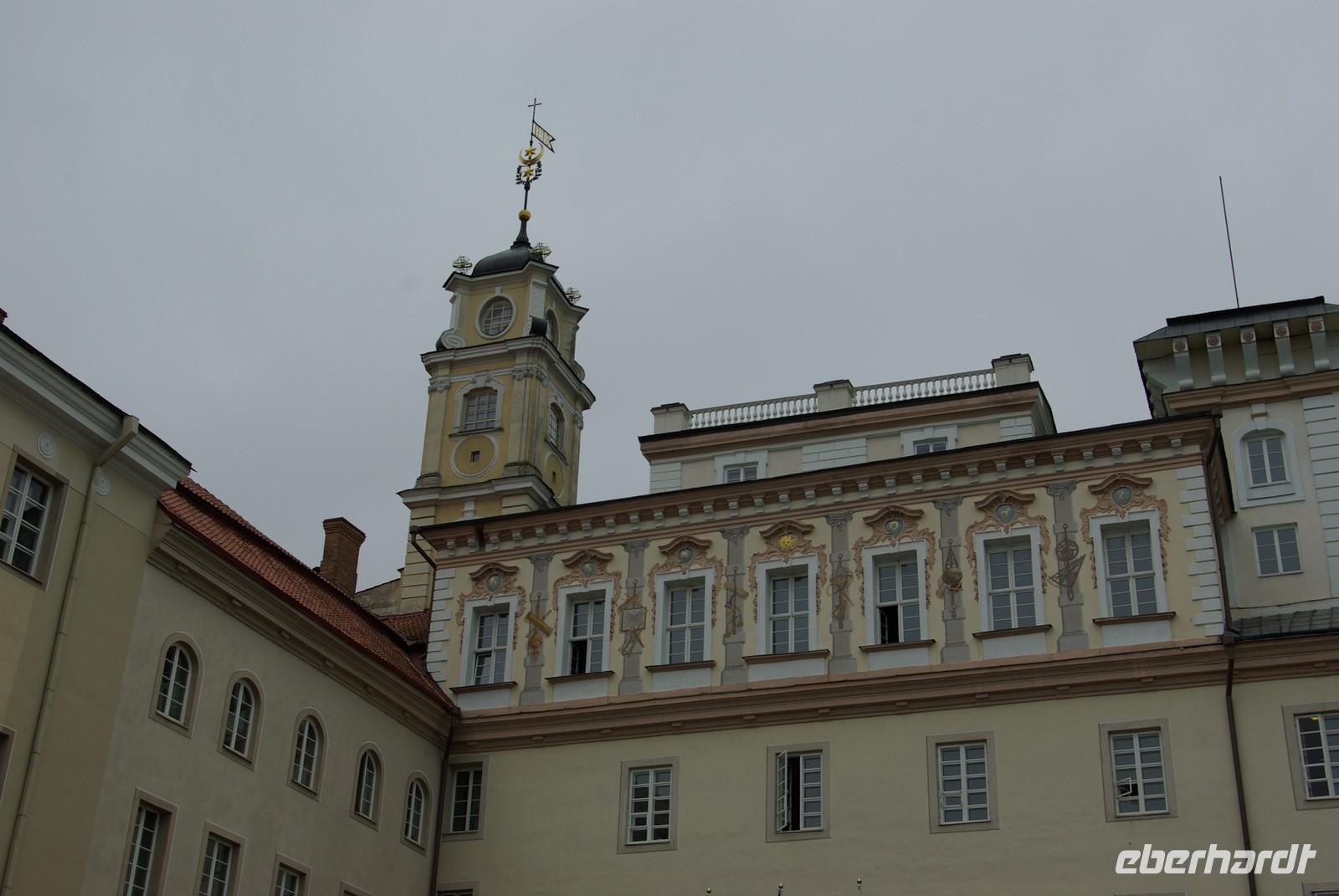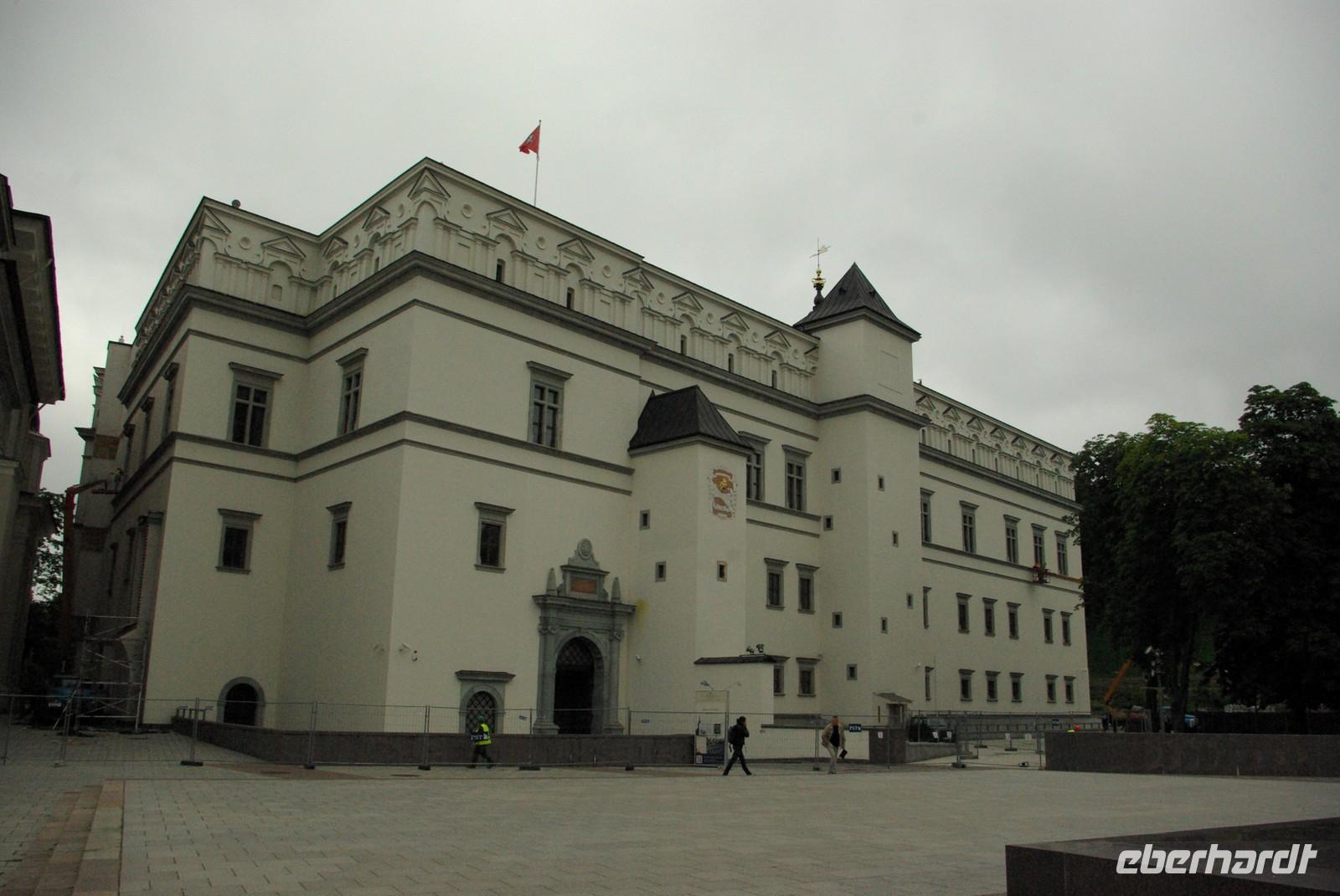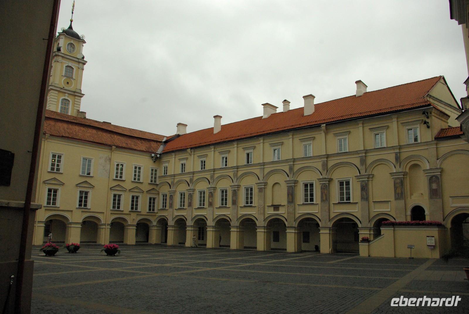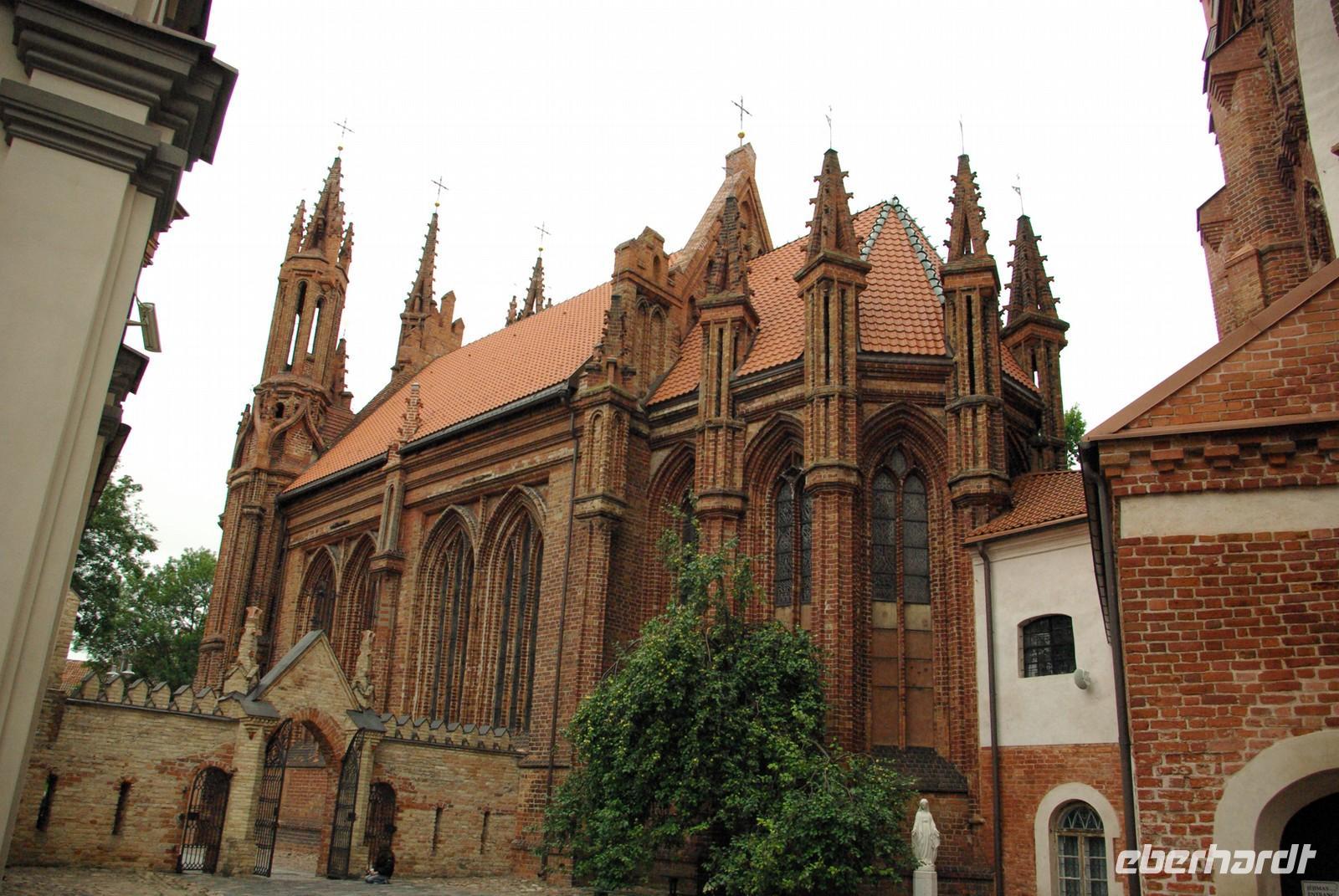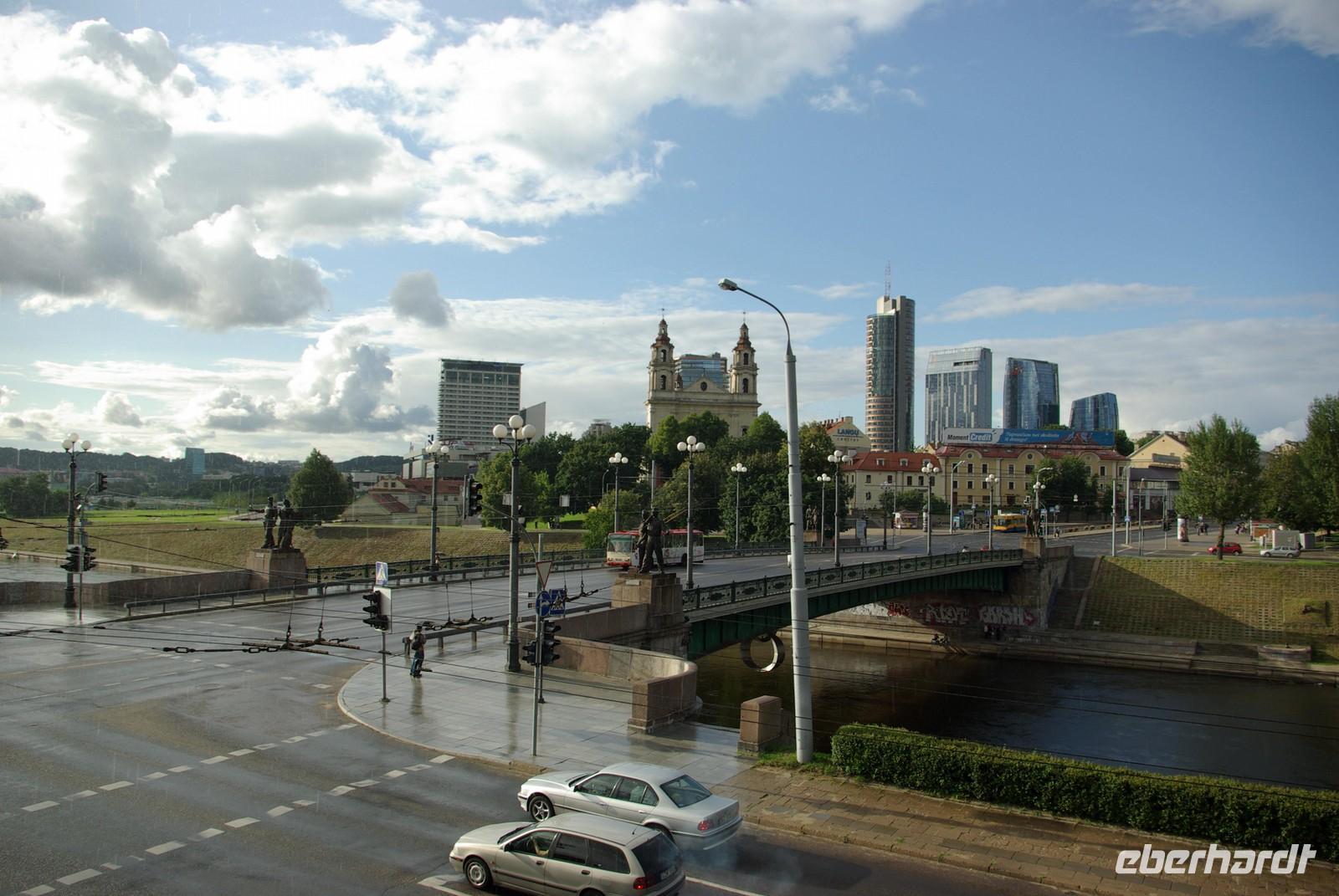 Mit einer Pause bewältigten wir bei mäßigem Sonntagsverkehr die 300 Kilometer bis Vilnius, wo wir gegen 18 Uhr beim Hotel eintrafen. Nach dem Abendessen bot Regina noch einen Gang in die Altstadt an. Vorbei an der gewaltigen Philharmonie schlenderten wir zur Kathedrale, die im letzten Abendlicht glühte. Von dort war es nicht weit am Schlossneubau vorbei in die Altstadt, wo jeder seinen Neigungen nachgehen konnte. Viele verschiedene Gaststätten aller Couleur und Preislagen luden dazu ein und auch Petrus tat sein Bestes.
