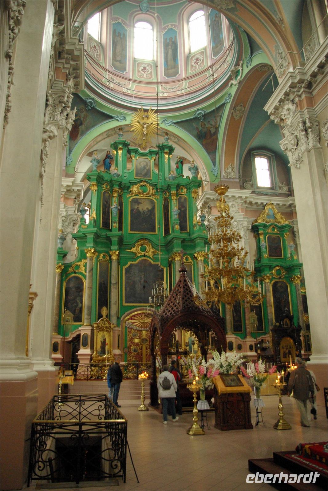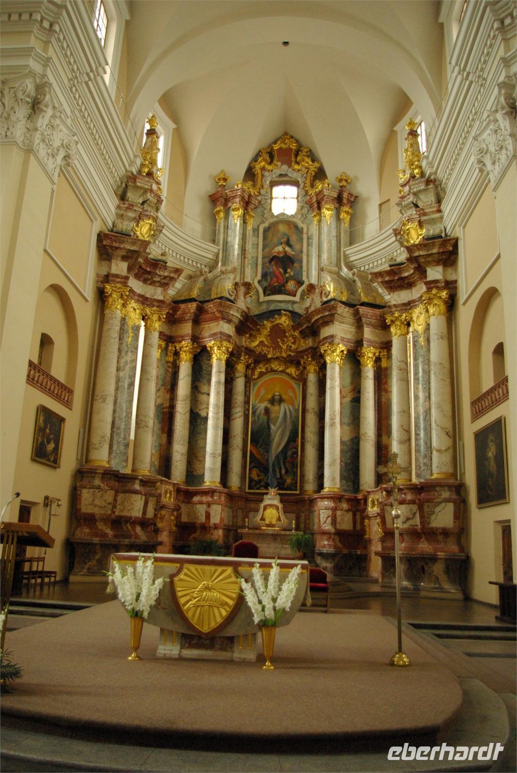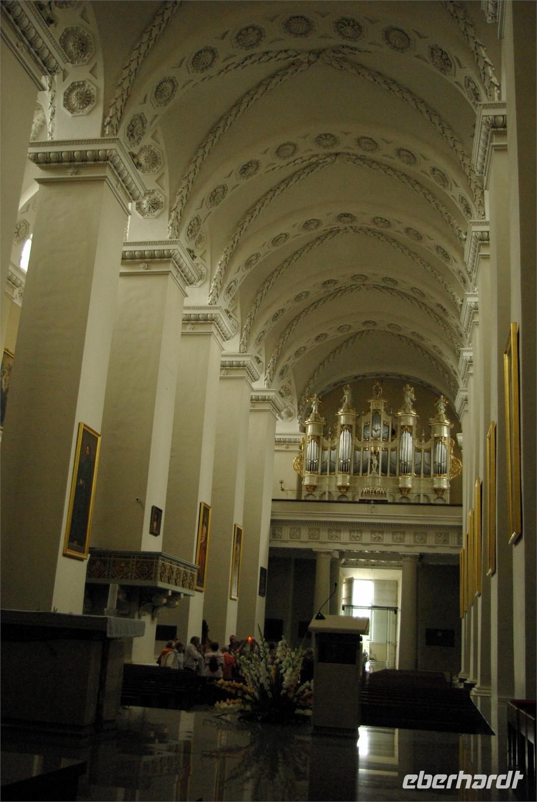 Nach einem guten Frühstück fuhren wir mit unserem Bus an die Peripherie der Stadt zum Burgberg und zur Peter- und- Paul- Kirche, die mit über 2000 Stuckfiguren im Inneren der Barocktempel von Vilnius schlechthin ist. Der Bus brachte uns zurück zur Stadtmauer und ein Spaziergang führte zu den wichtigsten Kirchen und Sehenswürdigkeiten. Genannt seien das gotische Ensemble aus Annen- und Bernhardinerkirche, der Komplex der im 16. Jahrhundert als Jesuitenkolleg gegründeten ältesten Universität Litauens, sowie die Kathedrale. Anschließend nutzen alle die zwei Stunden Freizeit zu eigenen Erkundungen und für kulinarische Entdeckungen, wie den empfohlenen „Zeppelinen", Kartoffelklöße mit verschiedenen Füllungen.