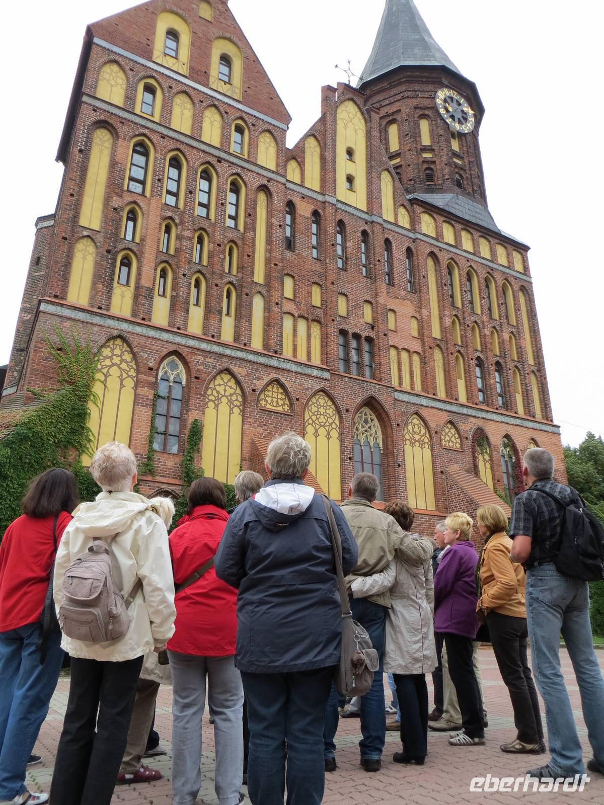 Überraschenderweise und völlig entgegen bisheriger Erfahrungen dauerten die Aus- und Einreisekontrollen nur eine Stunde. Marina, unsere örtliche Reiseleiterin erwartete uns und so ging es über linden- und eichenbesäumte Straßen in der Nähe des Frischen Haffes vorbei nach Kaliningrad, dem ehemaligen Königsberg und zu dessen Dom.