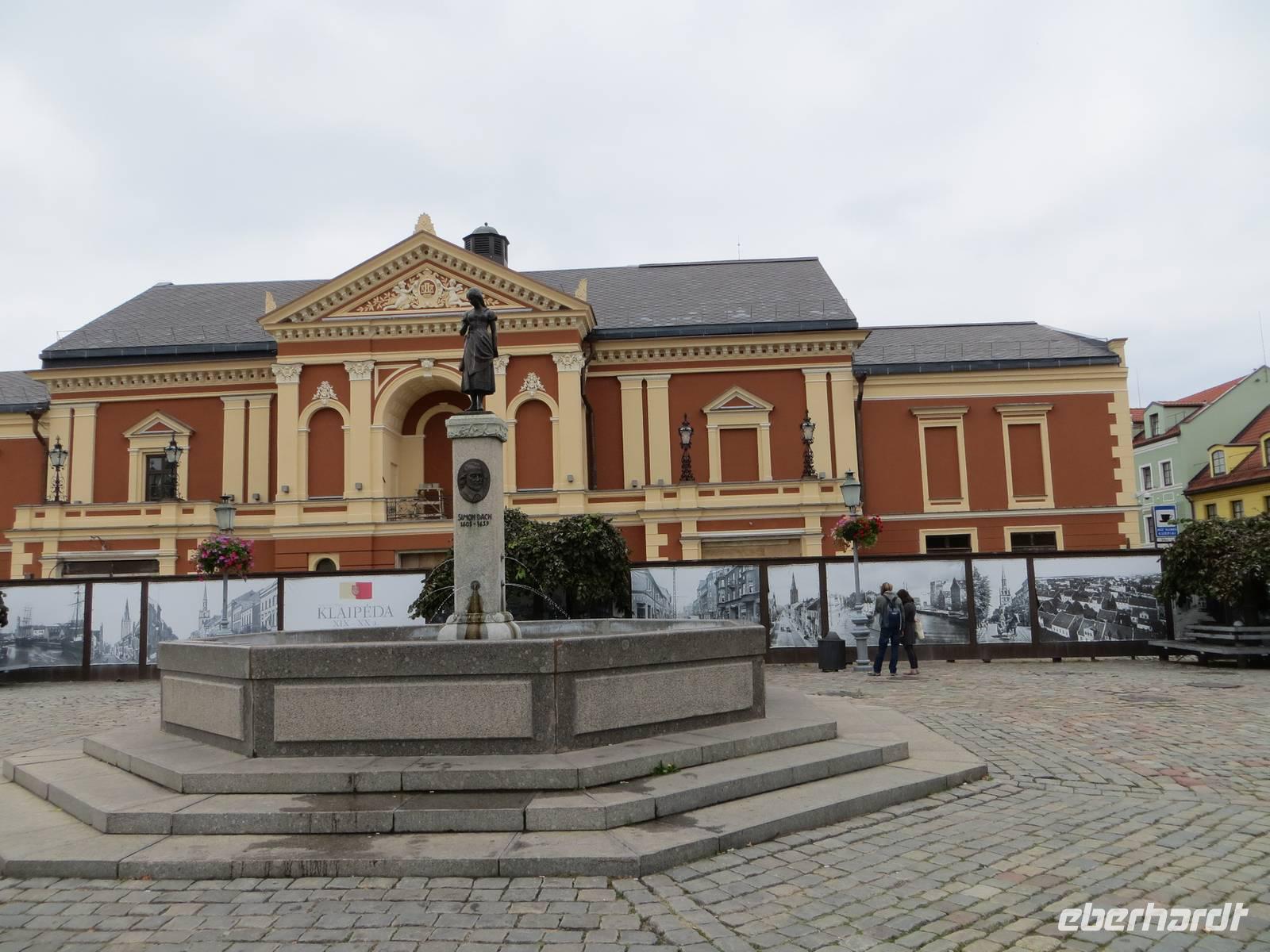 In Klaipeda (Memel) stoppten wir an jenem Gebäude, in dem der Preußenkönig mit seiner Gattin 1806/07 Zuflucht vor Napoleon gefunden hatte. Dann bummelten wir zum Brunnen mit Ännchen von Tharau. Das dahinter befindliche Theater befindet sich seit Jahren in der Rekonstruktion, lässt aber deutliche Fortschritte langsam erkennen. Auf das Singen des Liedes von Ännchen verzichteten wir; die Generalprobe war wegen Differenzen zwischen hochdeutscher Textvorlage und kurländischem Begleitgesang nicht so erfolgreich ausgefallen. Eine lange Busfahrt von vier Stunden brachte uns an Kaunas vorbei nach Vilnius, wo wir im Hotel Congress am Fluss Neris Quartier nahmen.