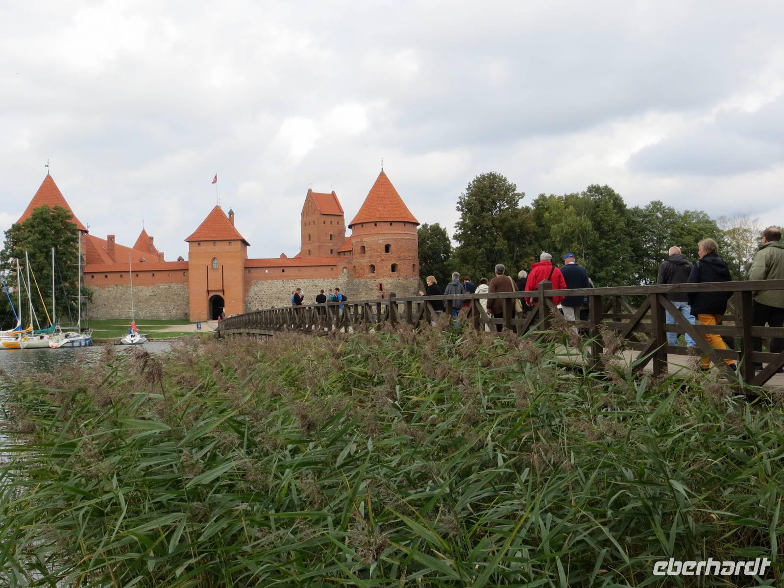 Trakai die einzige Wasserburg des Baltikums, einst Gründungsfeste des mächtigen litauischen Fürstentums, steht aus rotem Stein gemauert mitten im See. Der inzwischen graue Himmel hielt seine Schleusen geschlossen, so dass wir trocken über die Stege zur Burg bummeln konnten und uns in der Burg mit jahrhundertealter litauischer Geschichte beschäftigen konnten.