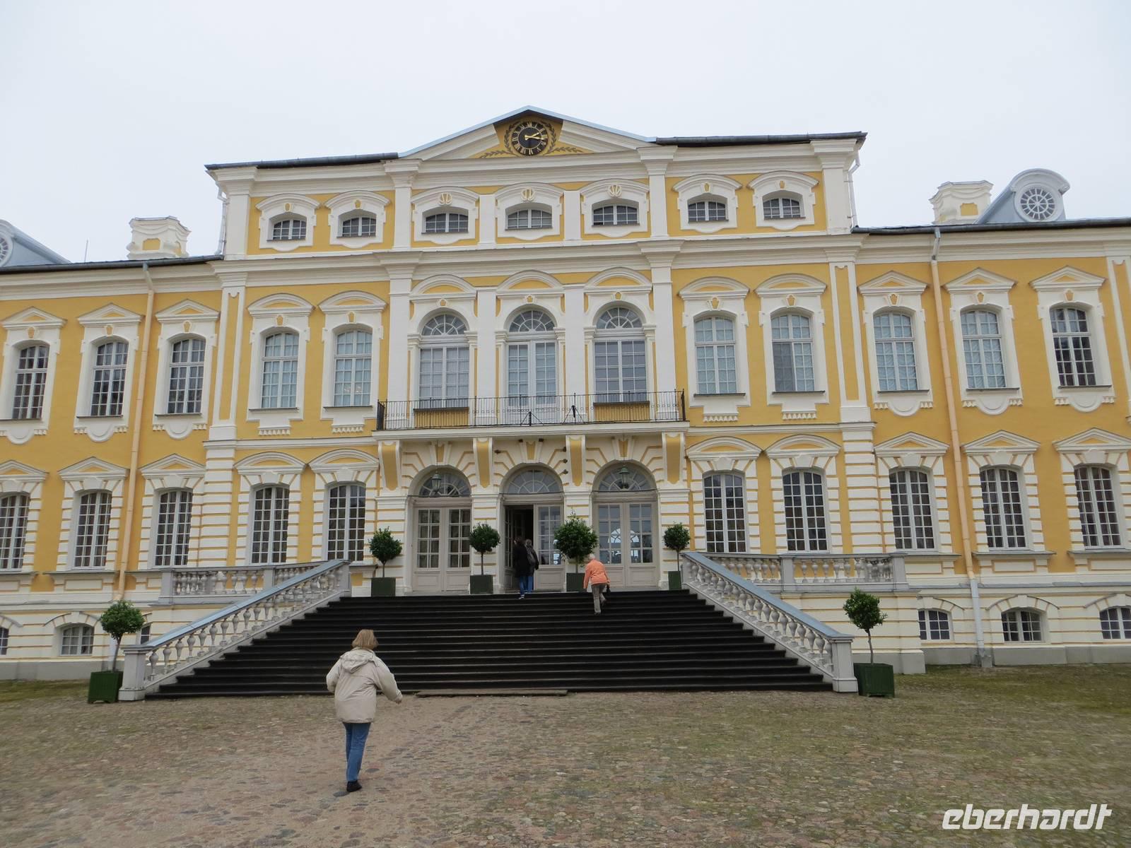 In Lettland zog es uns zunächst nach Schloss Rundale; barockes Schloss des Herzogs von Kurland im 18. Jahrhundert. Der herrlich rekonstruierten Säle des Schlosses werden es noch immer mehr, bevor wohl 2015 die Rekonstruktion weitestgehend abgeschlossen sein soll. Bei Regen verzichteten wir auf einen Rundgang durch den im französischen Stil errichteten Park mit beschnitten Gehölzen, Sommerblumen und mehr als 2500 verschiedenen Rosenarten.