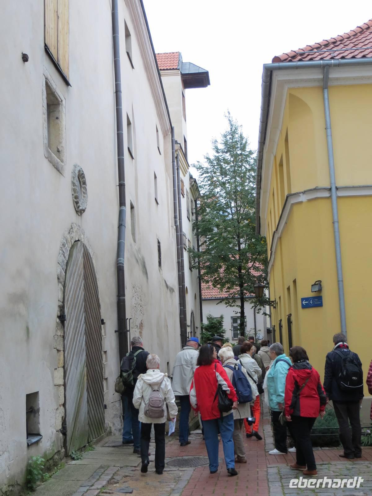 Zum Abschied dann noch ein Blick auf die bunten Häuser der Karäer, denen drei Fenster zur Straße gestattet waren (für den Fürsten, für Gott, für Gäste). Ungewöhnlich schnell waren wir dann wieder in Vilnius, so dass mancher noch ein wenig durch die nahen Gassen oder über die Grüne Brücke in die neue City spazieren konnte.