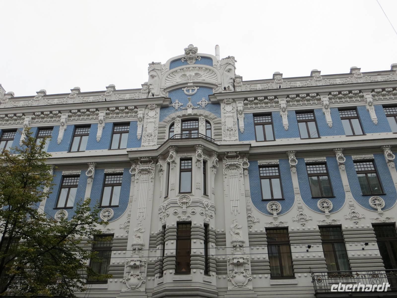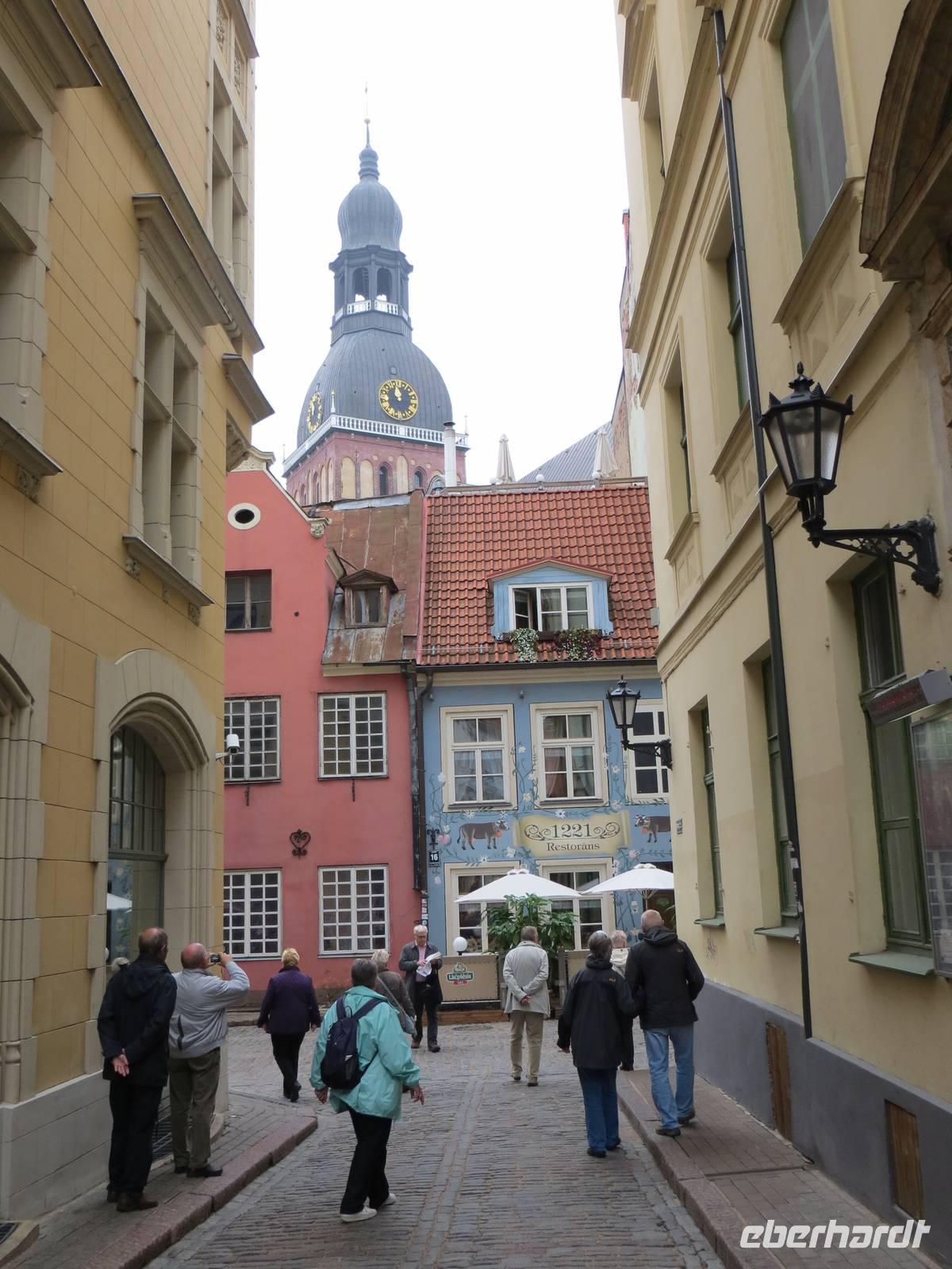 Der Stadtbummel führte uns vom Schwarzhäupterhaus zur Peterskirche und weiter vorbei an St. Petri zum Konventshof, die Wagnerstraße, zum Schwedentor, dem Parlamentsgebäude mit dem Barrikadendenkmal, zur Großen und Kleinen Gilde. Die Kleine Gilde, einst Zentrum der Handwerkerzünfte kann besichtigt werden. Ein so schönes „Haus der Handwerker" war wohl niemandem aus der Gruppe bekannt. Nochmals durch alte Gassen ging es vorbei am Haus, in dem 1712 Peter I. logierte und am Herder-Denkmal vorbei zum Dom. Um 12 Uhr genossen viele ein kurzes Orgelkonzert im Dom und anschließend die Gastlichkeit von Cafes, Restaurants und Kneipen der Hauptstadt Lettlands. Die Hälfte der der Gruppe bummelte nach der Pause gemeinsam zur Albertstraße mit den markanten Jugendstilgebäuden M. Eisensteins und anderer meist lettischer Architekten.