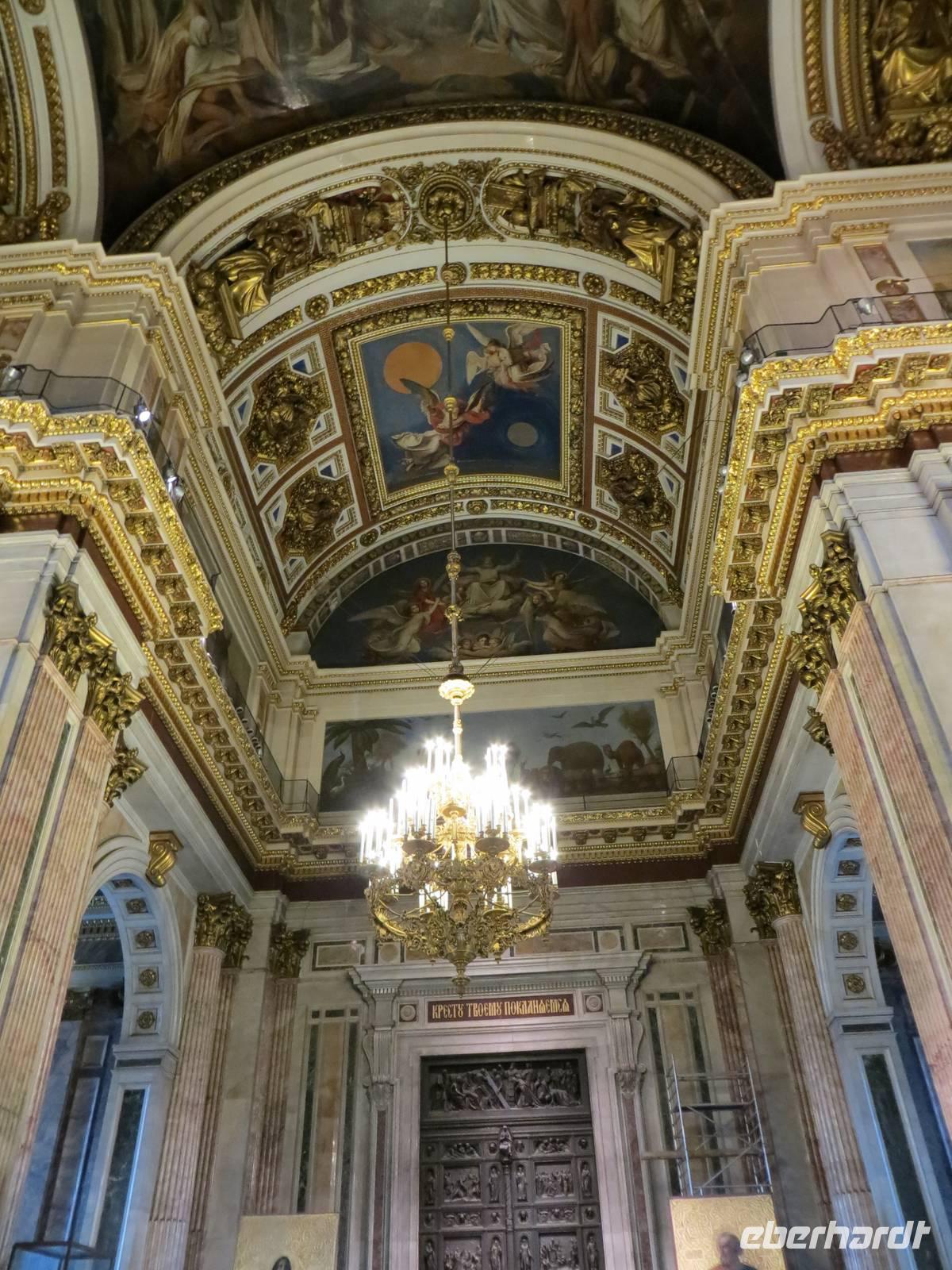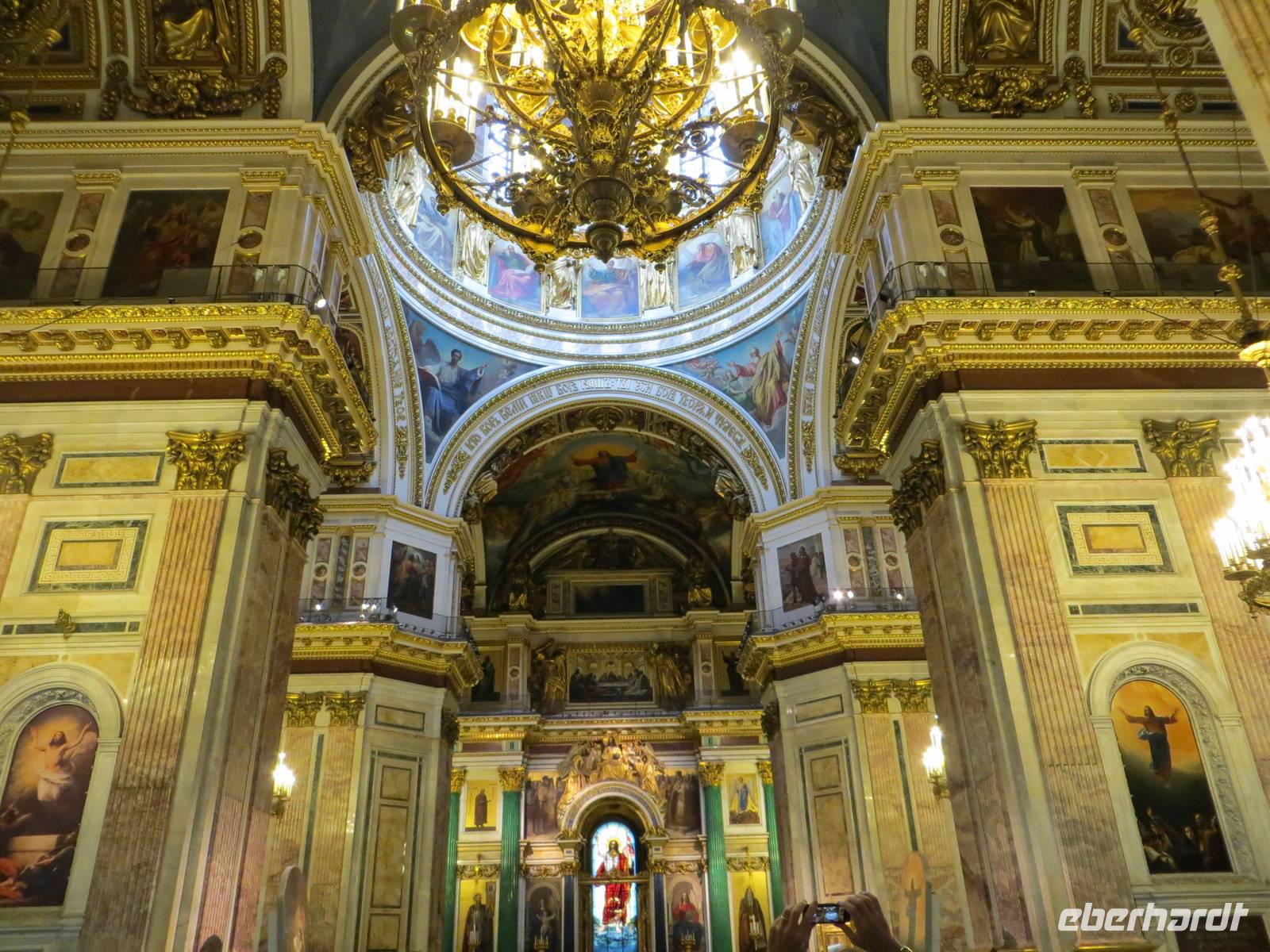 Natalia geleitete uns zum Smolny-Kloster, über den Newski-Prospekt und entlang der Moika zur Blutskirche, dann über den Theaterplatz mit dem bekannten Mariinski-Theater zur beeindruckenden Isaackathedrale. Fotostopp auf der Strelka, der Landzunge auf der Wassilewskiinsel und dann zur Peter und Pauls Festung.