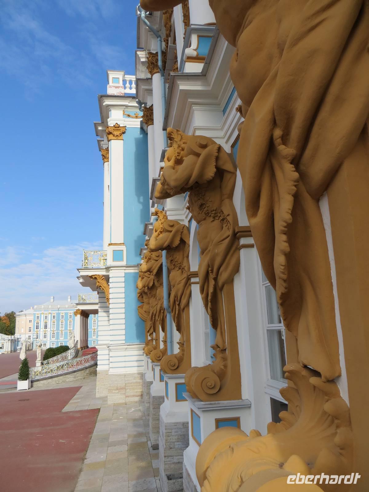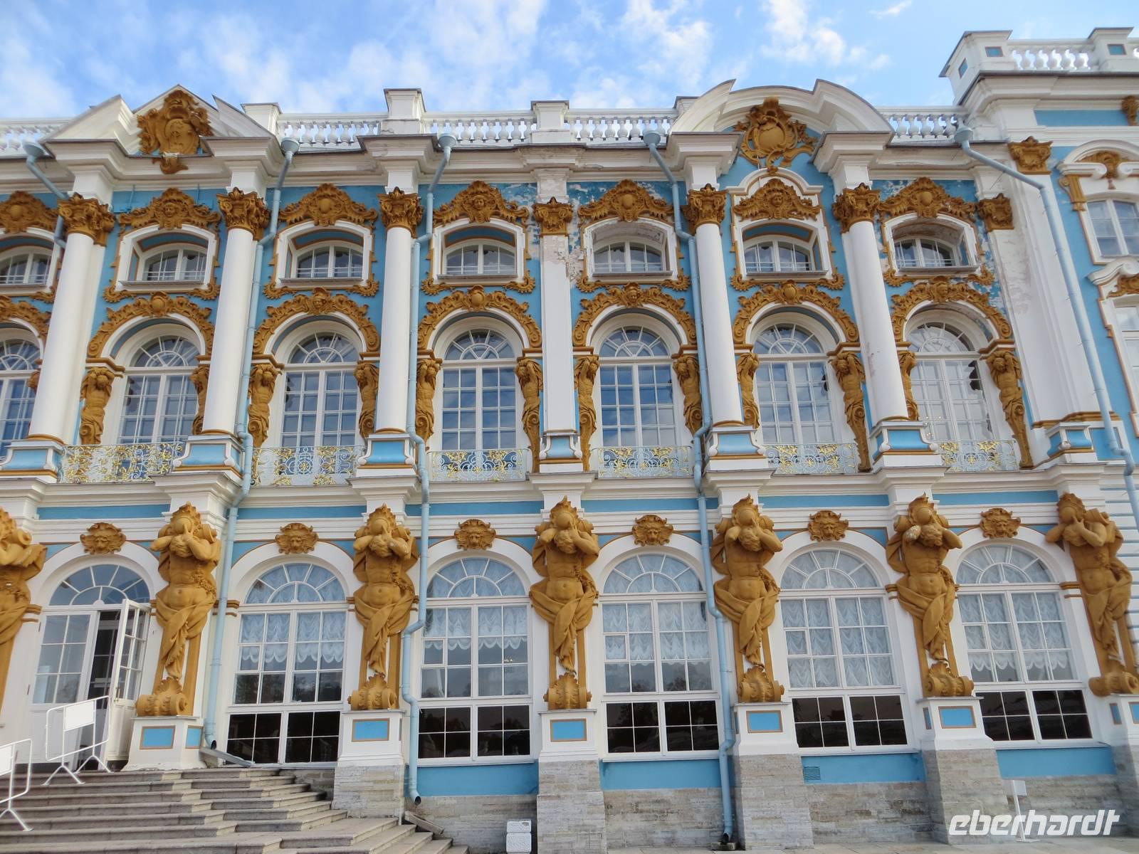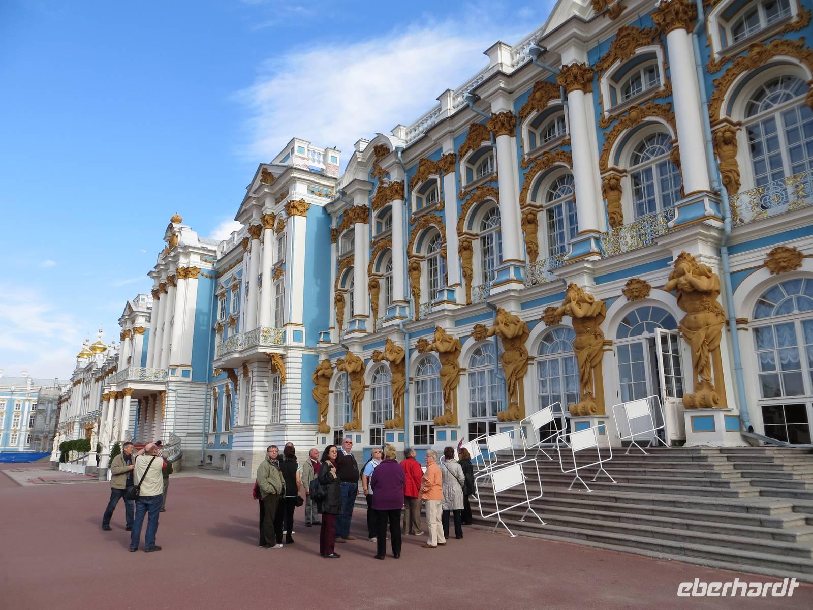 Vom Winterpalais bis zum Schloss Katharinas in Zarskoje Selo sind es nur 27 km. Wir versuchten es auf der traditionellen Strecke durch das Moskauer Viertel und schafften es in einer Stunde. Rechtzeitig erreichten wir unsere vorgegebene Einlasszeit zur Besichtigung des Palastes - einem weiteren Juwel unserer Reise.