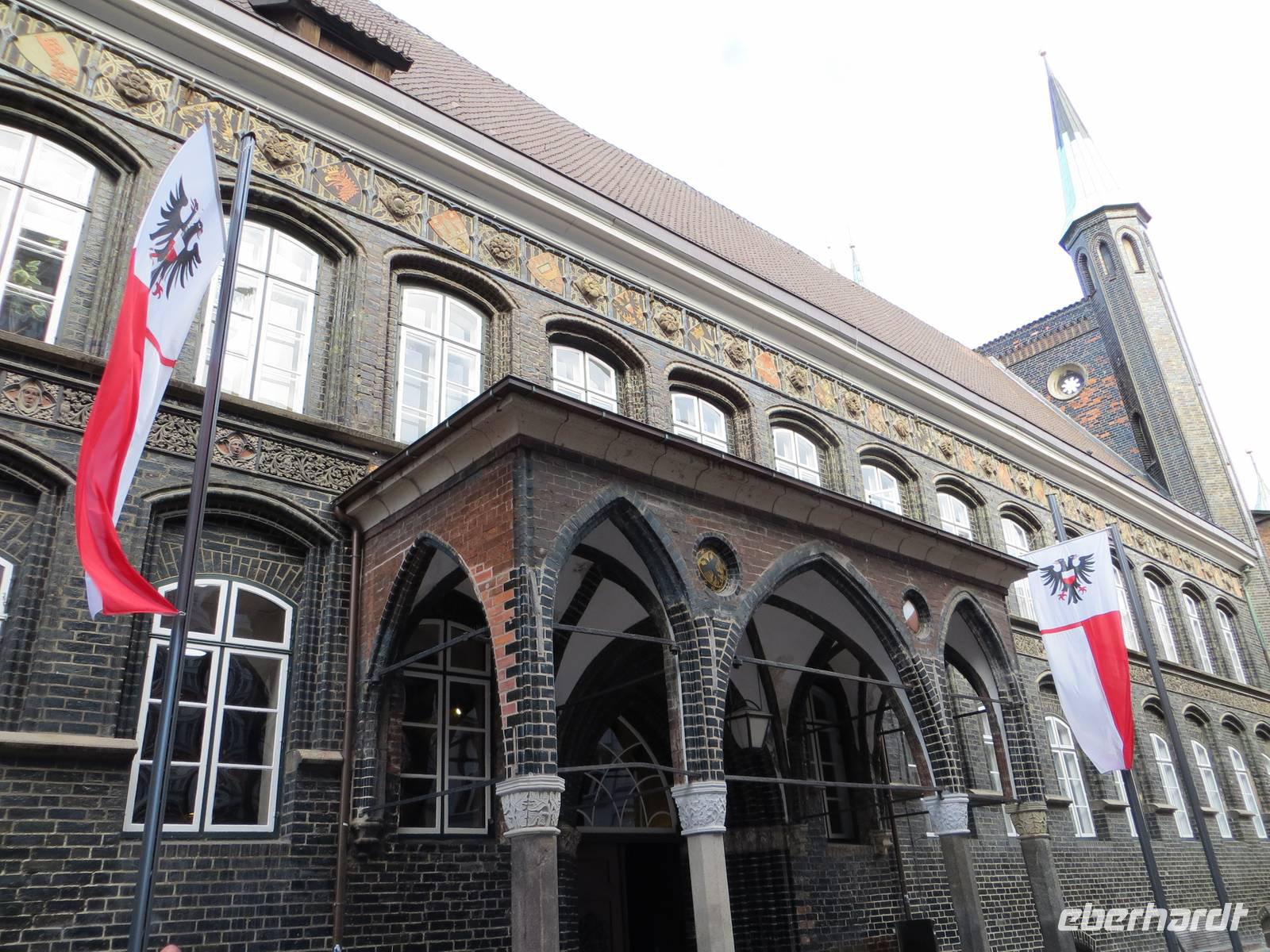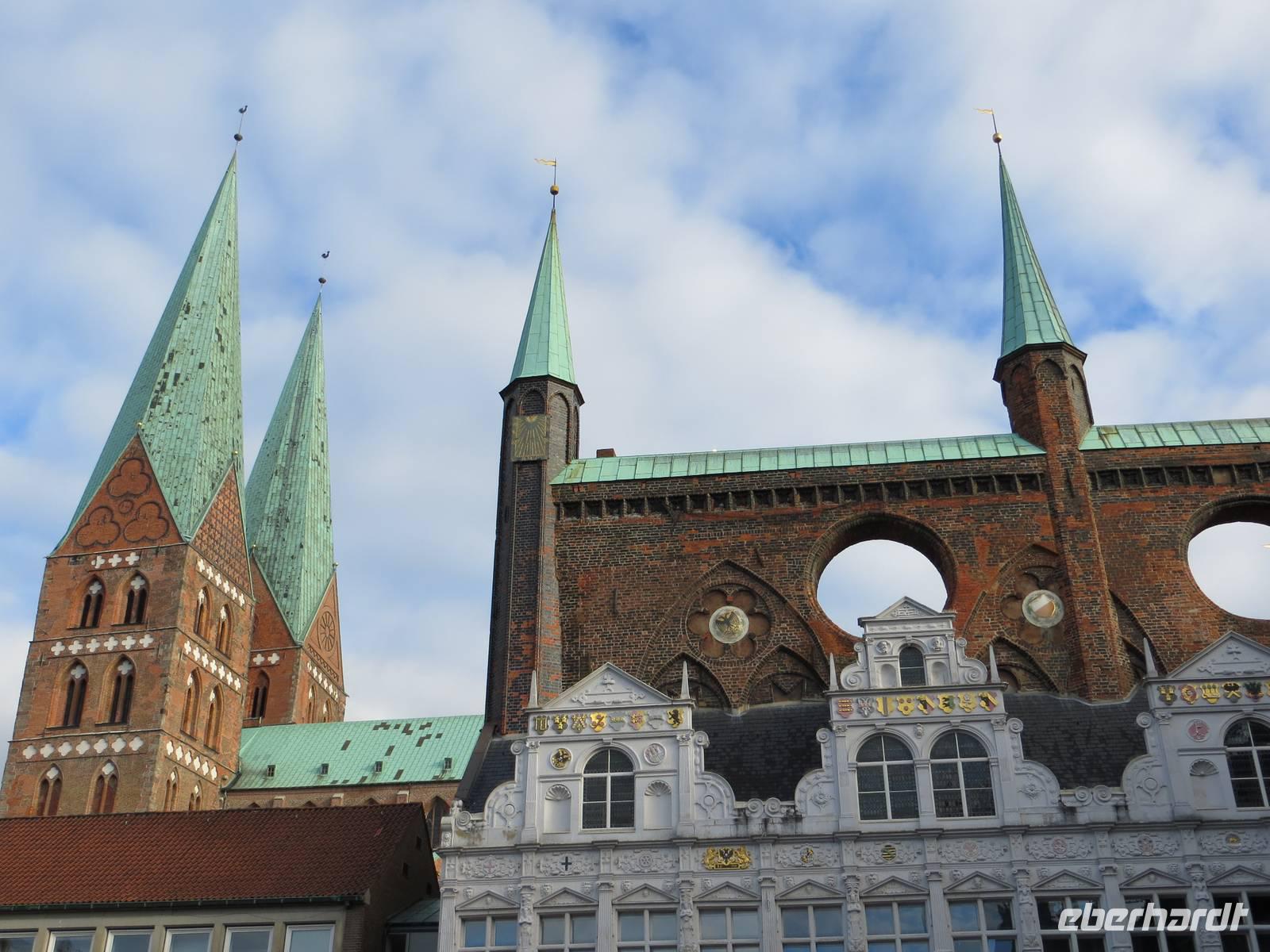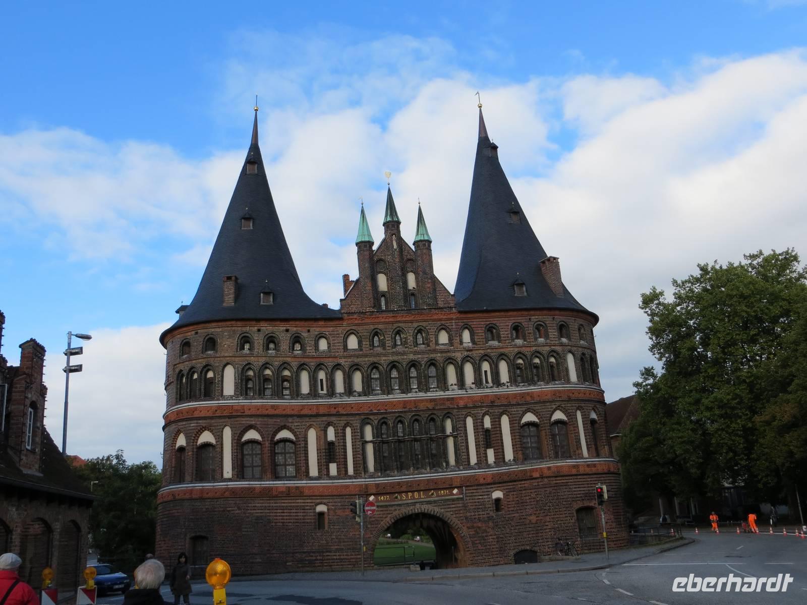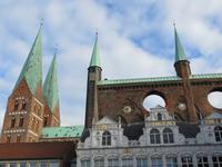 Welch ein Gewinn ist diese, gegenüber alten Reiseverläufen, Verlängerungsnacht in Lübeck! Ausgeruht und mit gutem Frühstück bummelten wir in der Ursprungsstadt der Hanse. Marienkirche - wie oft waren wir in den anderen Orten auf gotische norddeutsche Hallenkirchen zu sprechen gekommen - Rathaus und Holstentor; städtebauliche Elemente, die wir auf unserer Tour immer wieder fanden. Abschlussstanding dann am Buddenbrockhaus, in dem die Familie Mann mehrere Jahrzehnte im 19. Jahrhundert gewohnt hatte. So vollendete sich auch dieser Geschichtsbogen von Nidden nach Lübeck. Auf der Rückreise nach Sachsen machten wir noch einen Mittagsstopp am Denkmal für den Preußisch-Brandenburgischen Kurfürsten, der bei Fehrbellin die Schweden im 17. Jahrhundert geschlagen hatte.