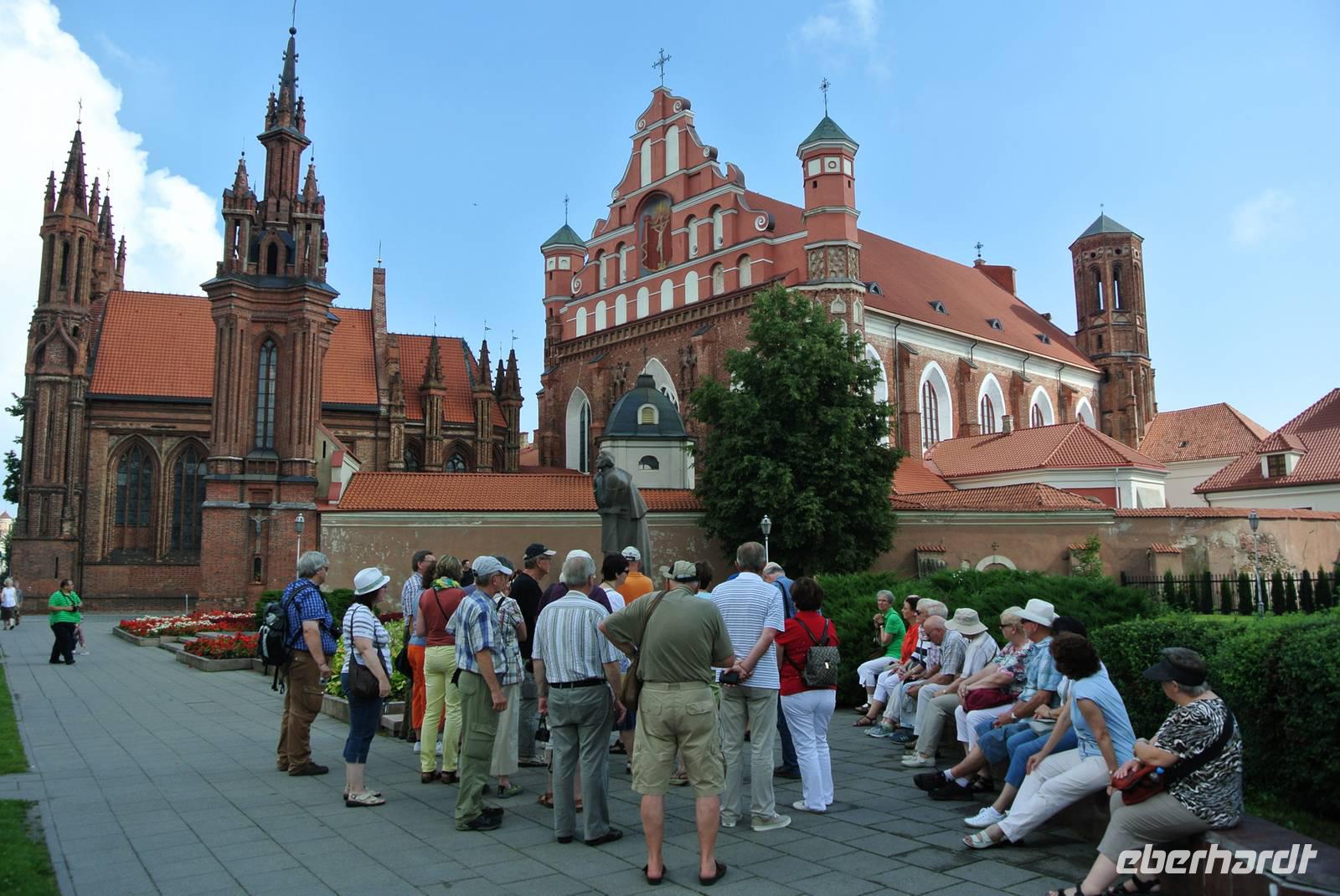 Nach einem sehr guten und reichhaltigen Frühstücksbuffet fuhren wir um 08:30 Uhr zur Stadtrundfahrt ab. Zunächst ging es auf eine Panorama-Plattform auf der anderen Uferseite mit einem herrlichen Blick auf Vilnius.