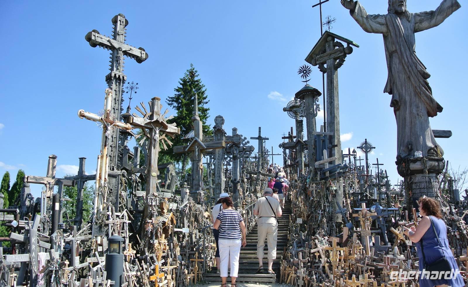 Auf dem Weg nach Lettland besichtigten wir von 11:50 - 12:30 Uhr den faszinierenden „Berg der Kreuze" in Siauliai mit seinen unzähligen großen und kleinen Kreuze, die auf einem Hügel als Symbol des Freiheitskampfes der Letten gegen die russische Herrschaft aufgestellt sind.