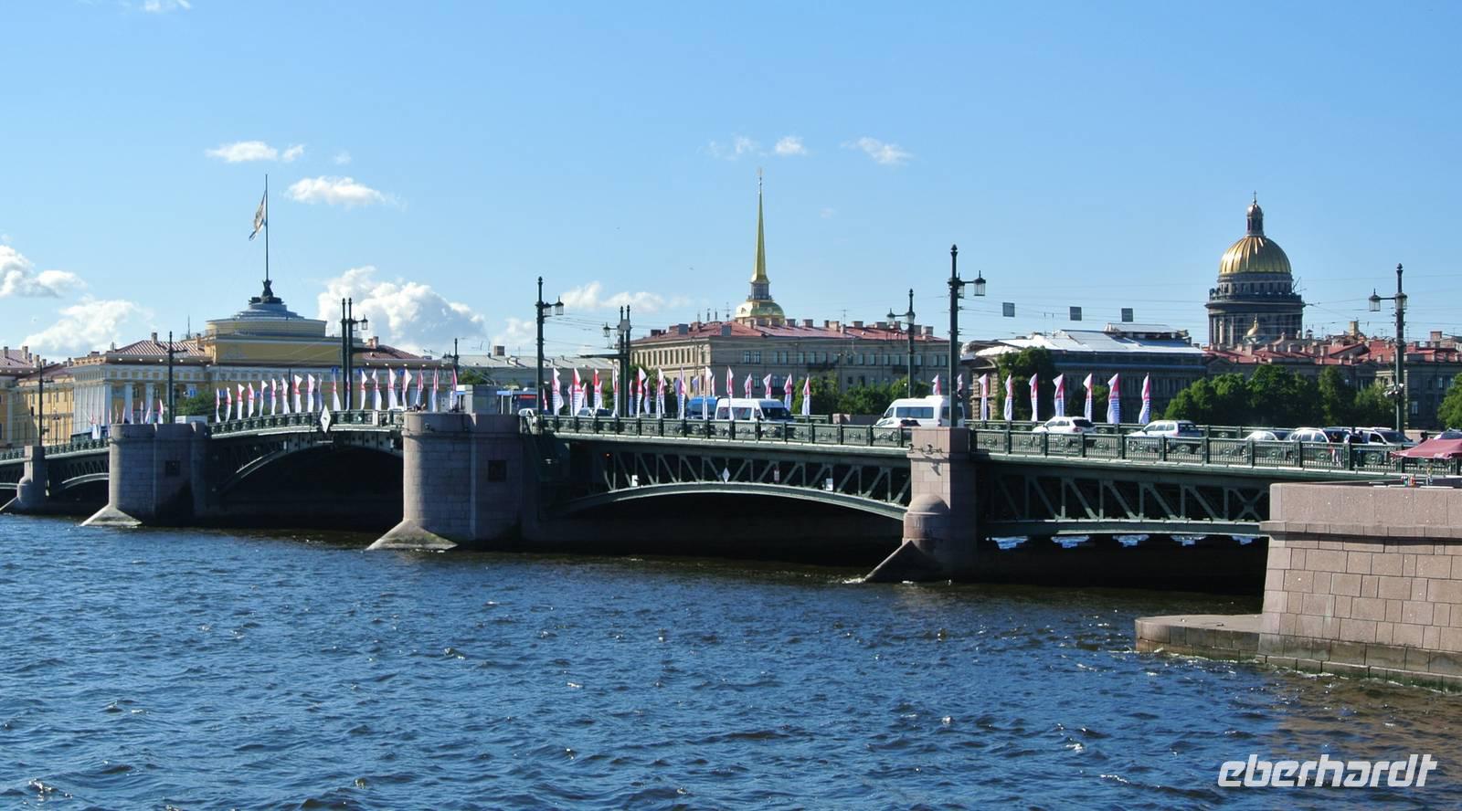 Von 10.15 -12:15 Uhr unternahmen wir Schifffahrt durch die Kanäle und auf der Neva. Die durch unsere Reiseleiter zusätzlich als individueller Programmpunkt organisiert wurde