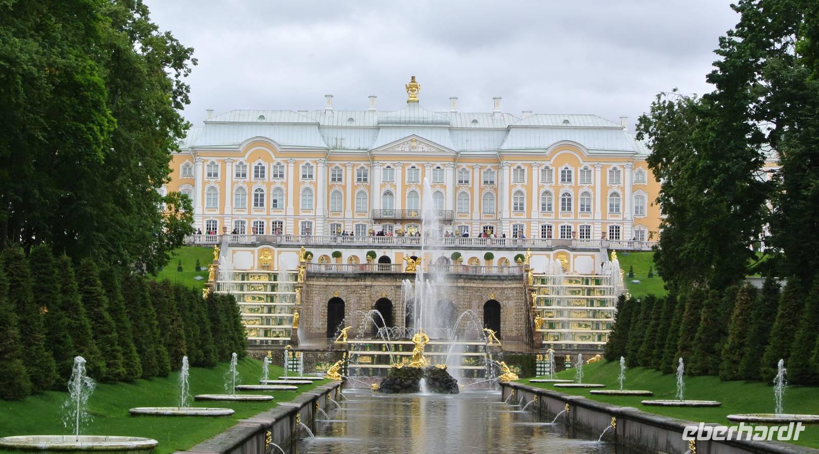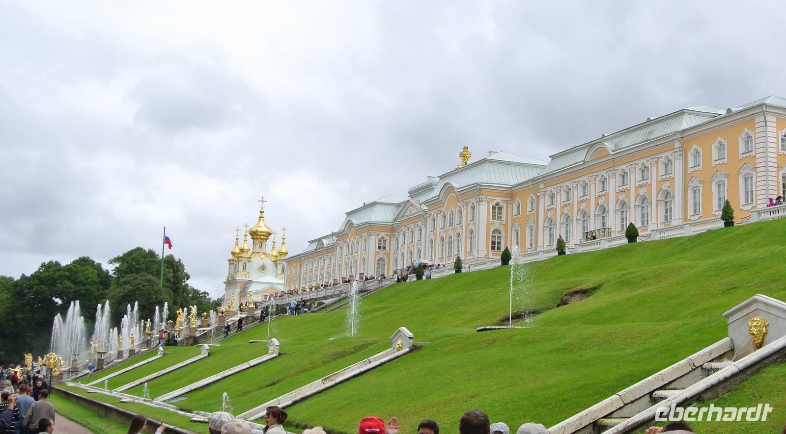 Um 13:35 Uhr war Abfahrt mit dem Bus vom Haupteingang der Hermitage nach Petershof.