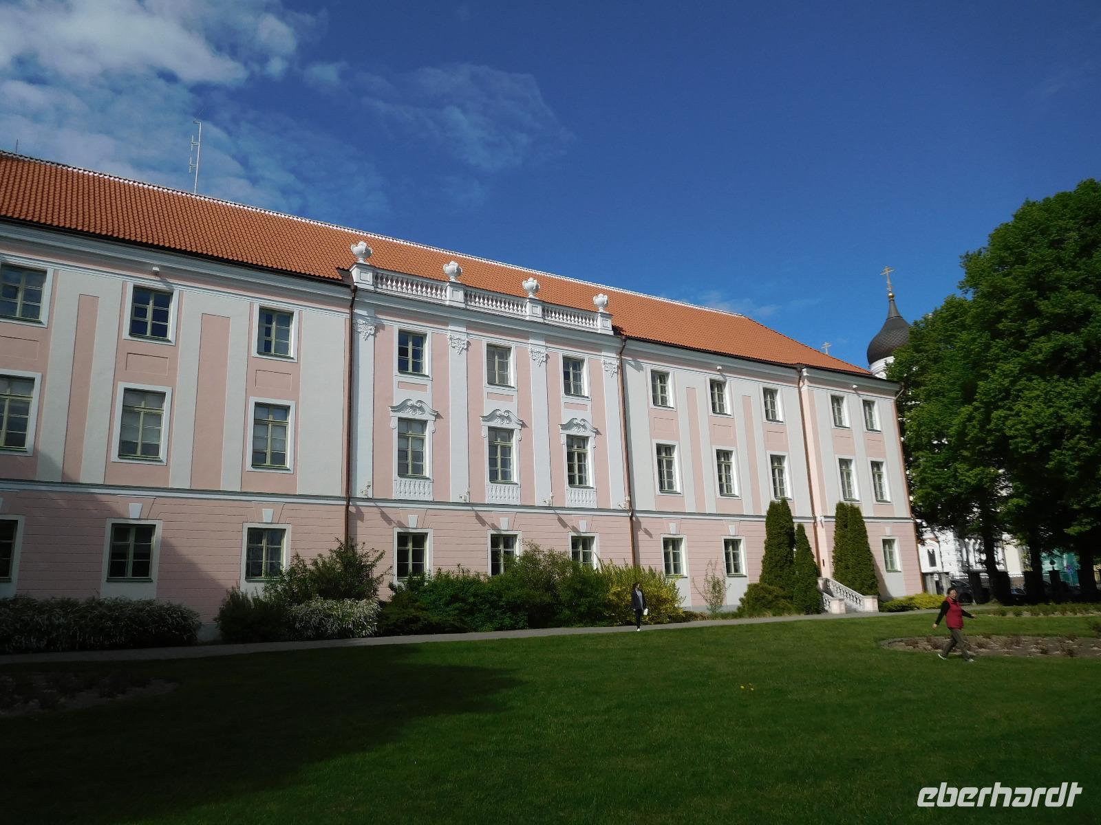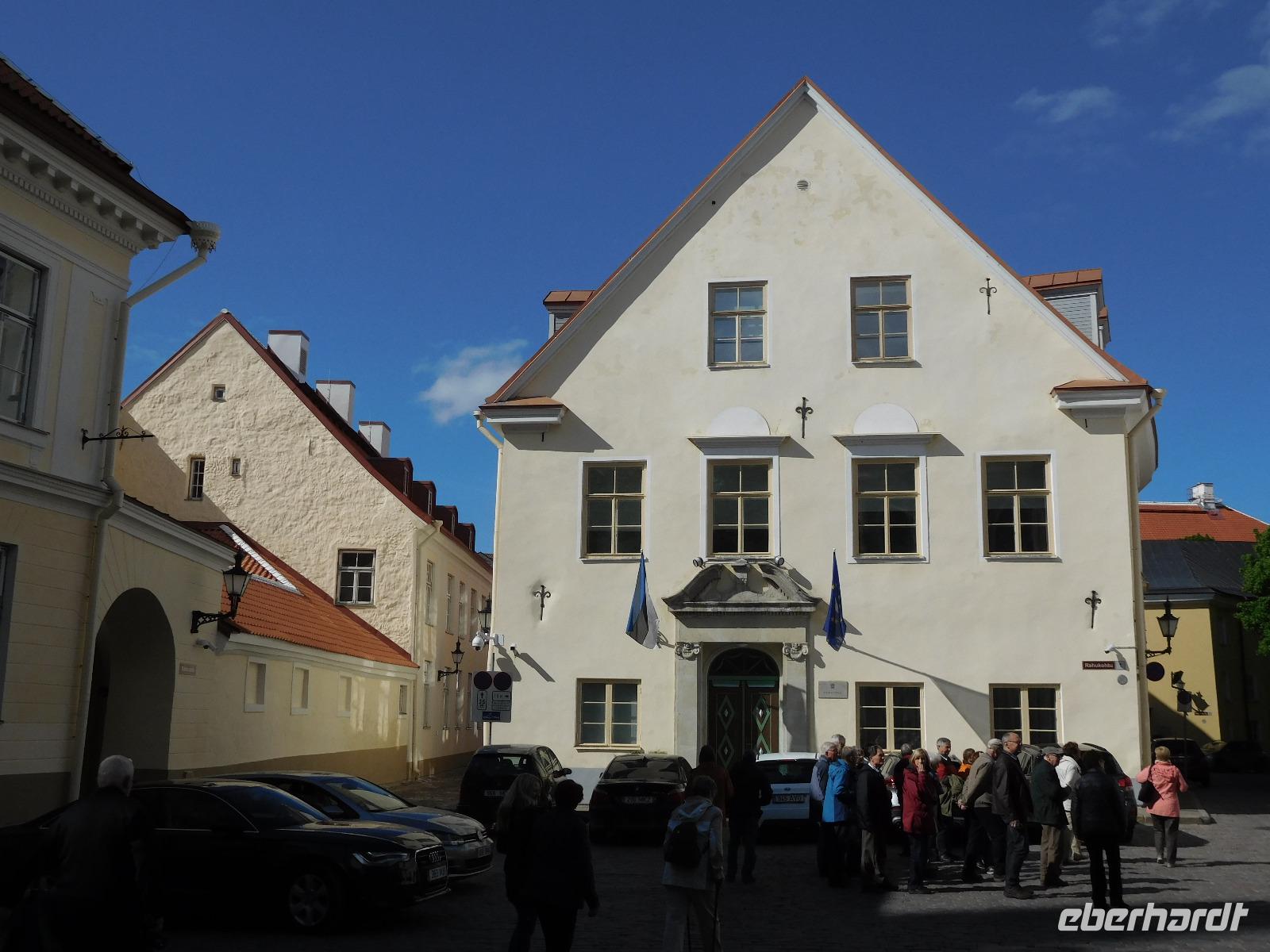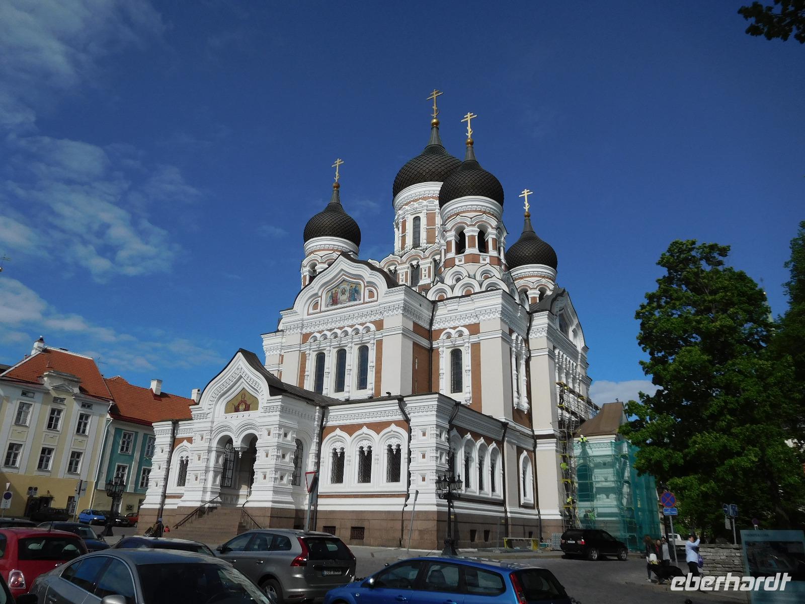 Wie bei der Einreise nach Lettland gab es keinerlei Grenzformalitäten zu erledigen, aber das Terminal mit guter Infrastruktur bot Gelegenheit zur Pause. Nach einer kleinen Stadtrundfahrt durch den traditionsreichen Badeort Pärnu, bei der wir viele traditionelle Holzhäuser, die im Barockstil gehaltene evangelische Elisabethkirche und die orthodoxe Katharinenkirche sahen, legten wir am Strand die Mittagspause ein. Gegen 15.30 Uhr waren wir in Tallin und fuhren gleich zur Sängerbühne, die 2500 Sängern und 70.000 Zuschauern Platz bietet. Die baltischen Sängertreffen, in Estland seit 1868 veranstaltet, sind ja quasi wichtigster Ausdruck der kulturellen Identität und des Nationalstolzes dieser Völker, die sich sozusagen in die Unabhängigkeit hinein sangen. Dementsprechend wichtig also der Ort, der sich gerade auf das in diesem Sommer Ende Juli stattfindende Sängerfest vorbereitete. Anschließend konnten wir im Hotel einchecken und uns frisch machen, bevor uns Frank mit dem Bus auf den Domberg über der Altstadt fuhr.