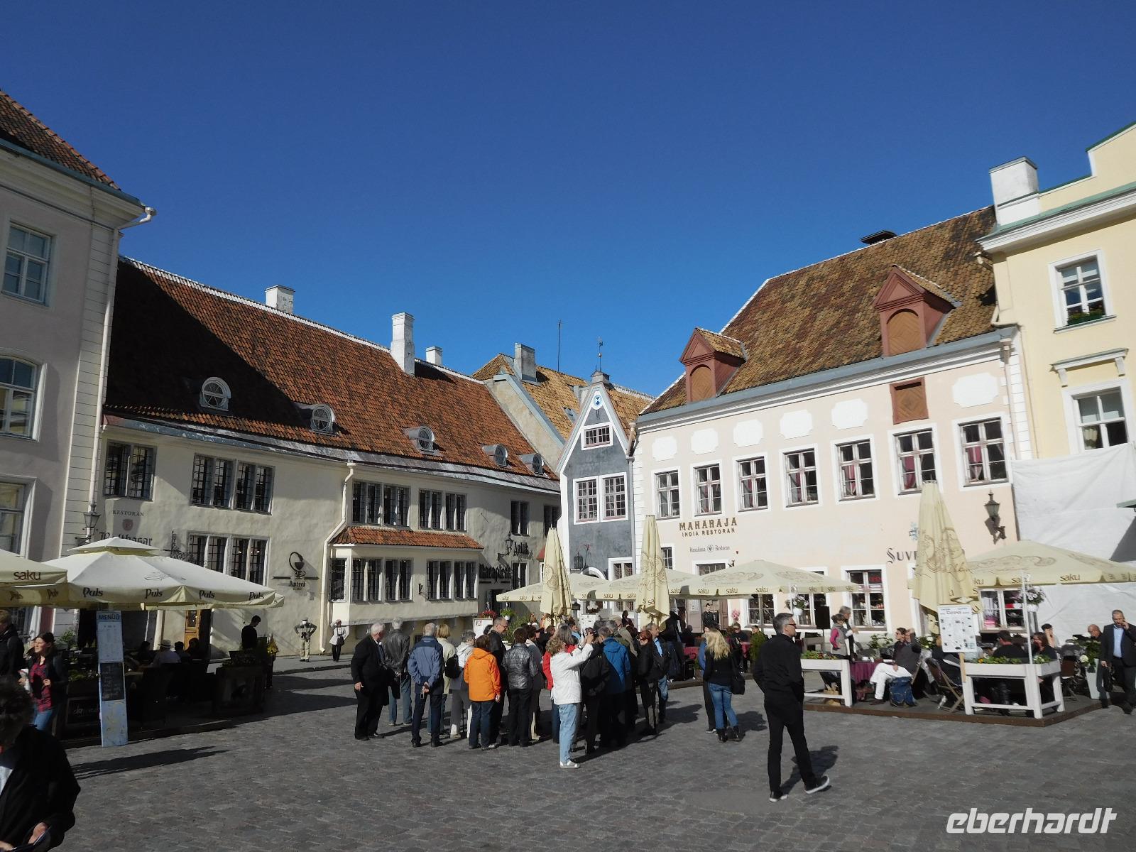 Bei schönstem Wetter genossen wir dann die Stadtführung mit Regina, beginnend in der Oberstadt mit diversen Villen, der russisch- orthodoxen Alexander- Newski- Kirche und dem alten Dom mit dem Grab des Weltumseglers Krusenstern und unzähligen Wappentafeln alter baltischer Adelsfamilien, deren Wirken auch in unsere Region ausstrahlte, genannt seien nur die Wrangel und Manteuffel. Die Unterstadt erstreckt sich zwischen Nikolai- und Olaikirche, letztere war mit ihrem 31 Meter hohem, Mitte des 15.Jahrhunderts fertig gestellten Langhaus die höchste Kirche des Baltikums, der Turm soll mit über 140 Metern Höhe sogar Weltspitze gewesen sein.