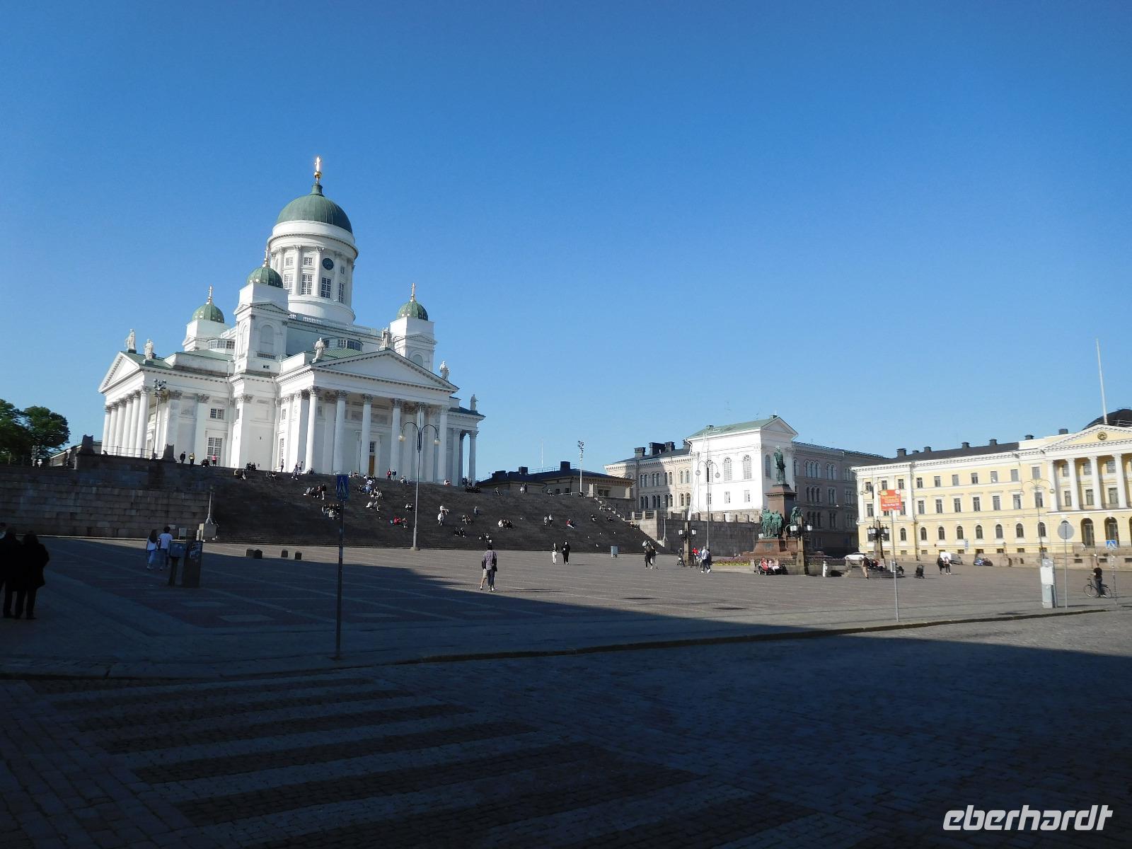 Pünktlich um neun begann die Stadtrundfahrt mit dem örtlichen Führer André. Der charmante und kompetente Herr mit österreichischen Wurzeln, die einen herrlich wienerischen Akzent implizierten, zeigte uns die wichtigsten Kirchen der Stadt, sprich den lutherischen Dom, sowie die archaisch- moderne ebenfalls evangelische Felsenkirche. Ein Ausstieg erfolgte am Sibeliusdenkmal und am Olympiastadion. Die Tour endete wahlweise im Zentrum der Mannerheimstrasse oder am Senatsplatz, beziehungsweise beim nahe gelegenen Busparkplatz im alten Hafen. Von hier war es nicht weit zum Rathaus mit sauberen und kostenlosen öffentlichen Toiletten, sowie zum Markt und zur Markthalle, wo es diverse Möglichkeiten zur lokaltypischen Verköstigung, vor allem mit frischem Fisch und Meeresfrüchten gibt, die allgemein genutzt wurden.