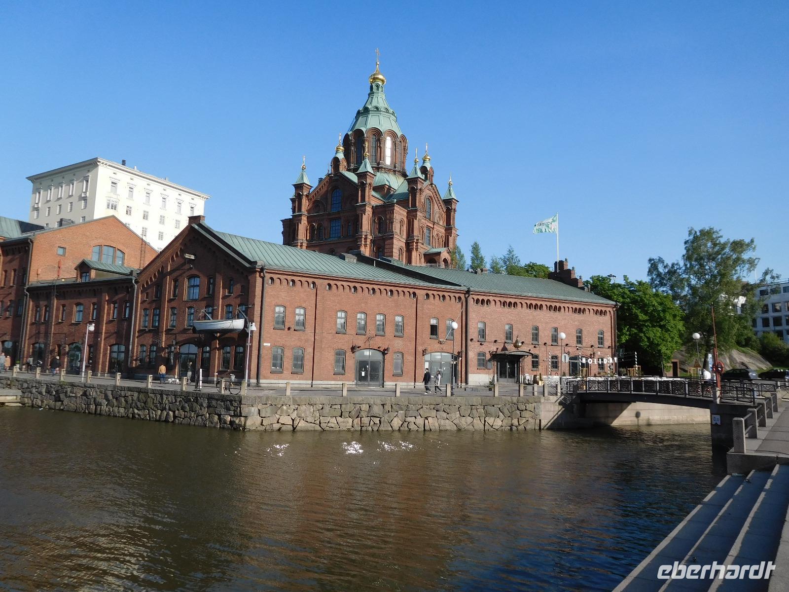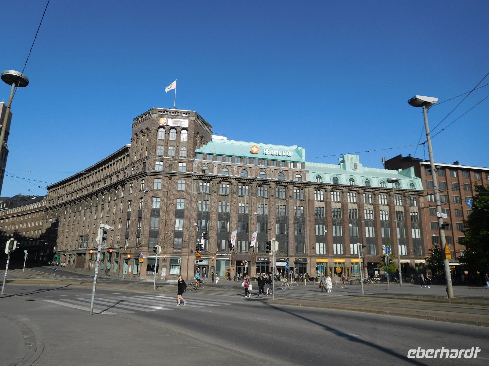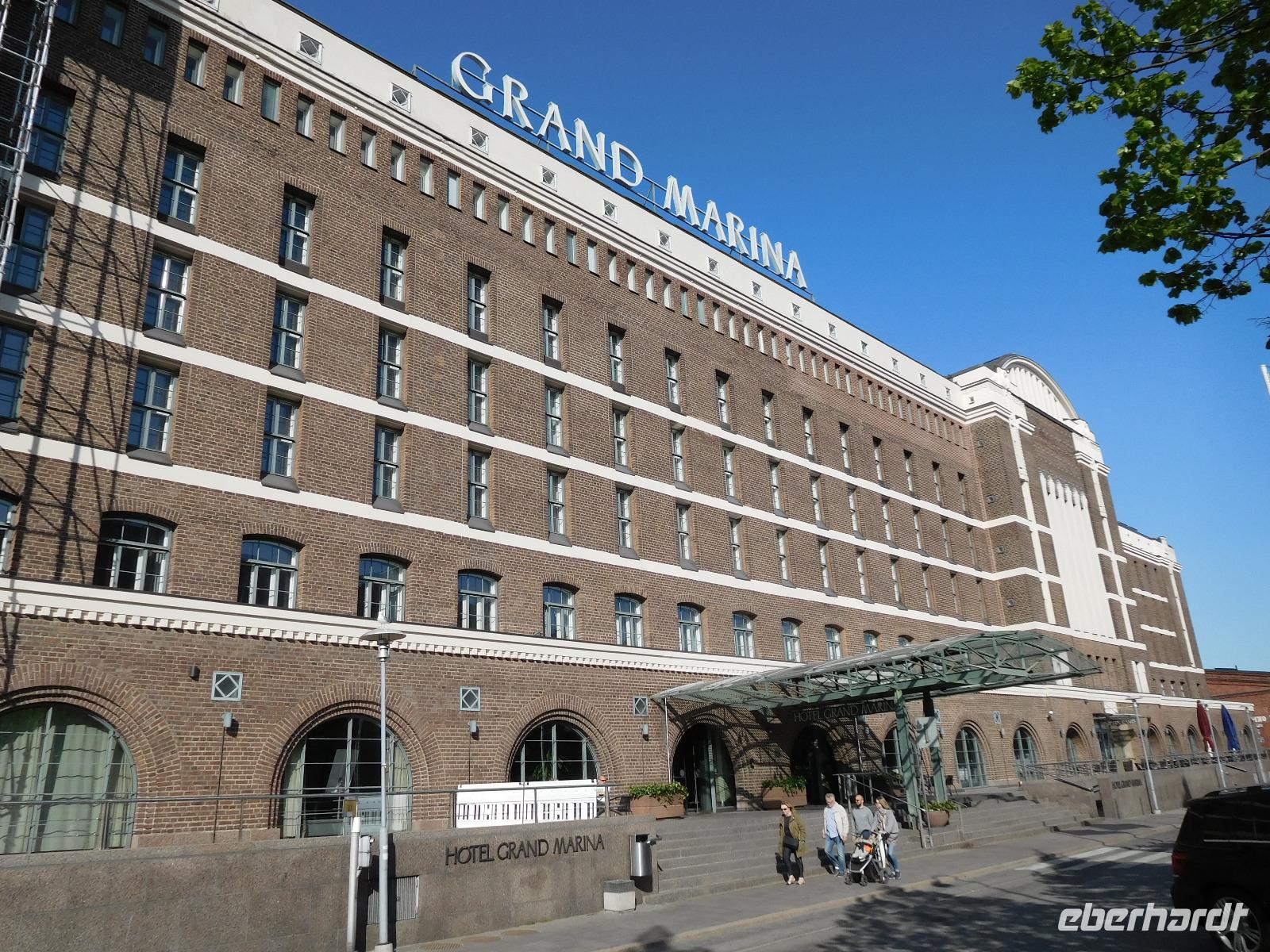 Um halbneun fuhren wir entlang des Finnischen Meerbusens Richtung Helsinki, und die Verabschiedung von unserem russischen Stadtführer Timo geriet sehr herzlich. An der Grenze erwartete uns ein korrekt und zügig arbeitender Beamtenapparat. Das gleich hinter den bezwungenen Grenzen in Finnland eingenommene Mittagessen vom Bus schmeckte gleich doppelt gut. Gegen 17 Uhr erreichten wir das sehr zentral gelegene Hotel Grand Marina im Stadthafen von Helsinki, wo wir sofort einchecken konnten. Zwischen Hafenamt und alten Speichern hatte man 1912 begonnen, das damals größte Kaufhaus der Stadt im Stil der finnischen Nationalromantik aus dunkelrotem Backstein mit wuchtigen Kapitellpfeilern zu bauen. Der Weltkrieg verschob die Vollendung auf 1927 und bis in die sechziger Jahre florierte das Warenhaus, bis modernere, allen voran Stockmanns, es vom Markt drängten. Der Bau verkam zum desolaten Lager, bis er 2007 liebevoll und denkmalsgerecht zum Hotel umgebaut wurde. Das war die beste Idee und wir alle haben uns hier sehr wohl gefühlt.