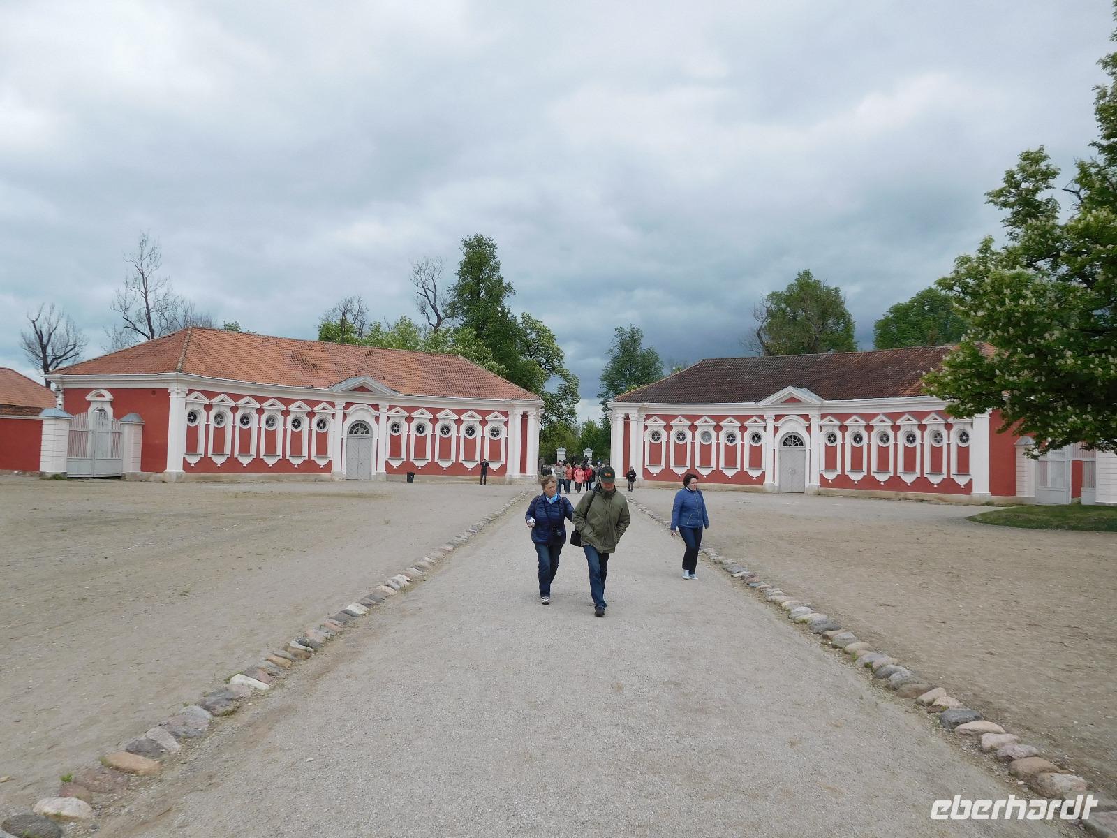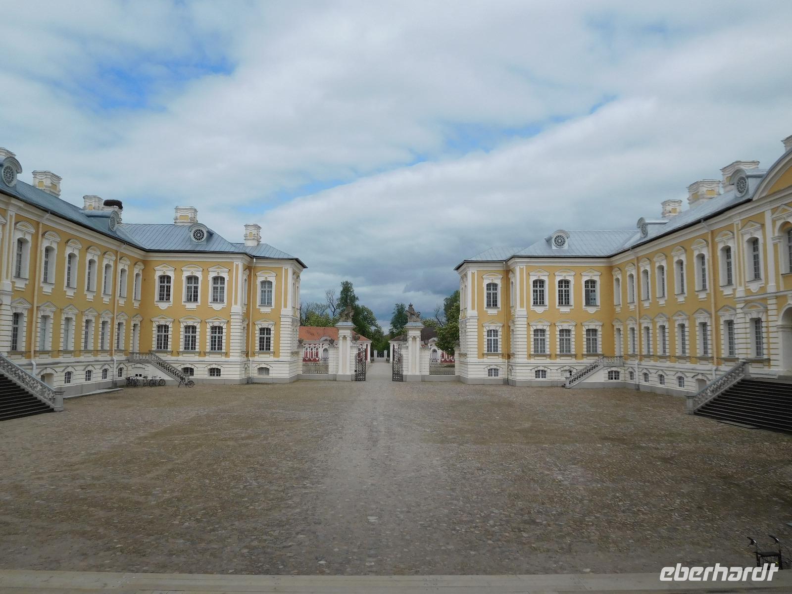 Nach einem reichhaltigen Frühstück fuhren wir mit weitem Blick auf tief liegende Wolken nach Siauliai zum Hügel der Kreuze. Nach einem weiteren Wegstück besichtigten wir Rundale, den wohl bedeutendsten adligen Landsitz in den drei baltischen Republiken. Graf Biron, Geliebter und Günstling zweier Zarinnen, hatte ihn für seine Gattin Dorothea von Kurland gebaut, die als schönste und geistreichste Frau ihrer Zeit galt. Jeder Raum ein Unikat, bildet das Schloss ein selten erhaltenes spätbarockes Ensemble. Unter der Regierung von Zarin Elisabeth war Biron in Ungnade gefallen und musste in Festungshaft. Der Besitz ging an Prinz Carl, den Sohn des polnischen Königs aus dem Haus Wettin, August III., also an einen Enkel des starken August. Der verlor wieder alles unter Katharina der Großen, die ihrem Geliebten Suchanow das Anwesen überschrieb. Letztendlich ging wieder alles an die Bironschen Erben zurück, die dann alles verloren, als Lettland eine Sowjetrepublik wurde. Noch heute führt ein in München lebender Familienzweig den Titel eines Herzogs von Kurland. Am Abend trafen wir im Rigaer Hotel Bellevue ein, wo alle ihre Zimmer bezogen und zum Abendessen gingen, das als Buffet gereicht wurde.