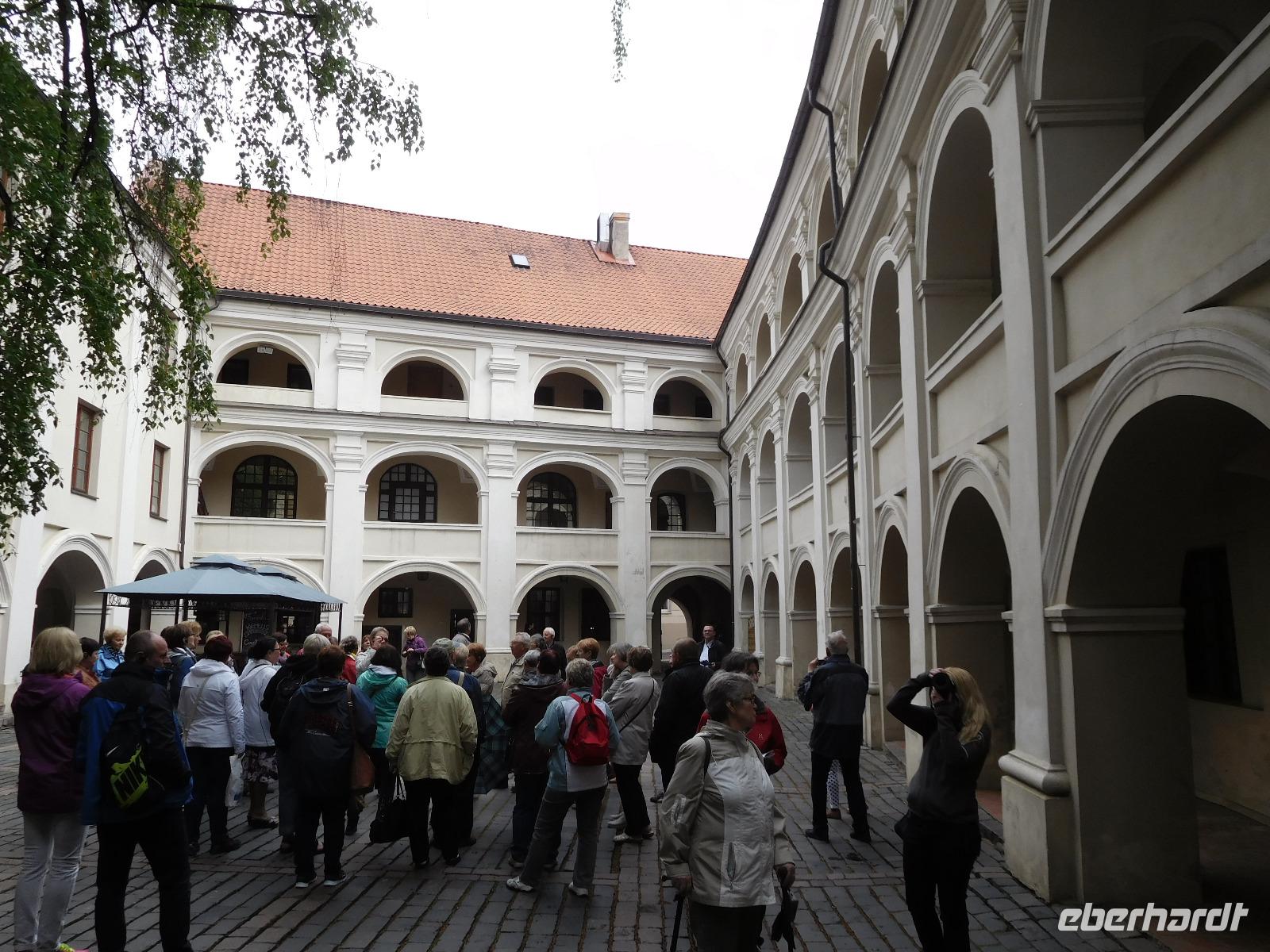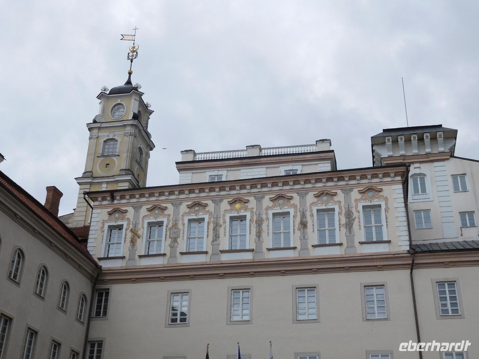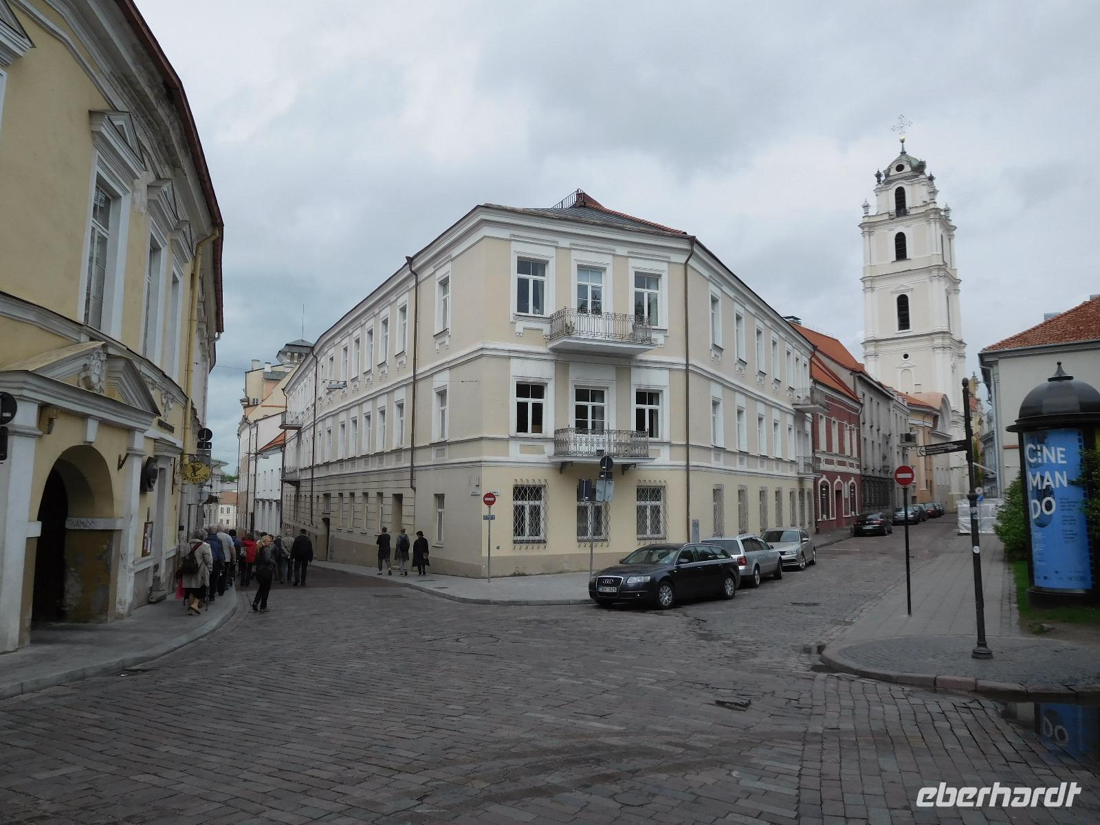 Zurück in Vilnius hielten wir an der Peripherie der Stadt bei der Peter- und- Paul- Kirche, die mit über 2000 Stuckfiguren im Inneren der Barocktempel von Vilnius schlechthin ist. Der Bus brachte uns anschließend zum Tor der Morgenröte im schönsten Restabschnitt der Stadtmauer und ein Spaziergang führte zu den wichtigsten Kirchen und Sehenswürdigkeiten. Genannt seien das der Komplex der im 16. Jahrhundert als Jesuitenkolleg gegründeten ältesten Universität Litauens, sowie die Kathedrale am wieder aufgebauten Schloss der litauischen Großfürtsten, von dem aus das Geschlecht der Jagiellonen als Köige der litauisch- polnischen Union eines der größten Länder Europas beherrschten. Während der anschließenden Freizeit erkundete jeder nach seiner Neigung die Stadt. Abends traf sich die Gruppe um 18.30 Uhr, um zum Abendessen zu gehen, das nur wenige Gehminuten im Restaurant „Prie Ketedros" gleich am Gediminas-Prospekt gereicht wurde. Die von engagierten Gastronomen in alten Gewölbekellern eingerichtete Braugaststätte verbreitet urig mittelalterliches Flair.