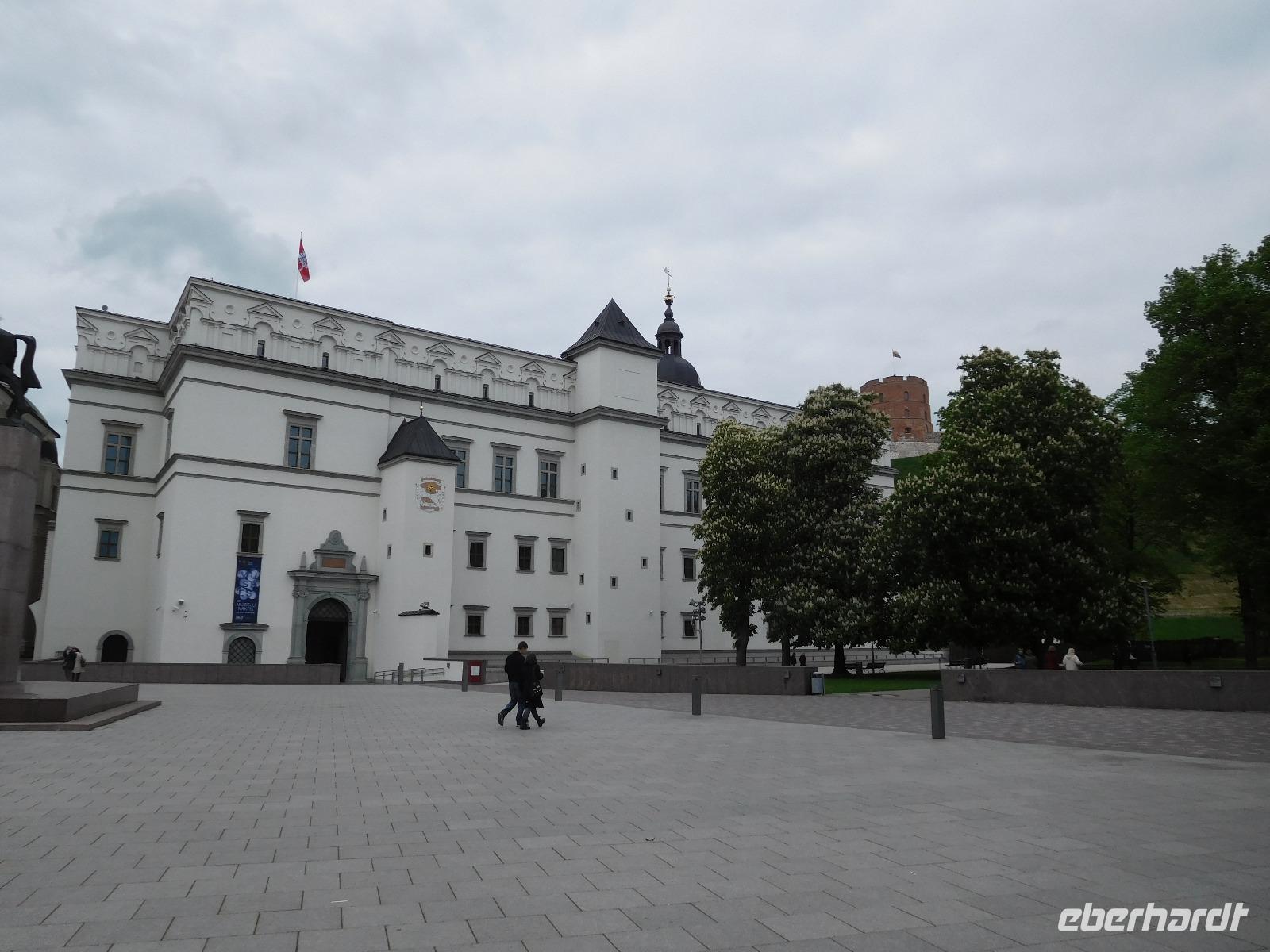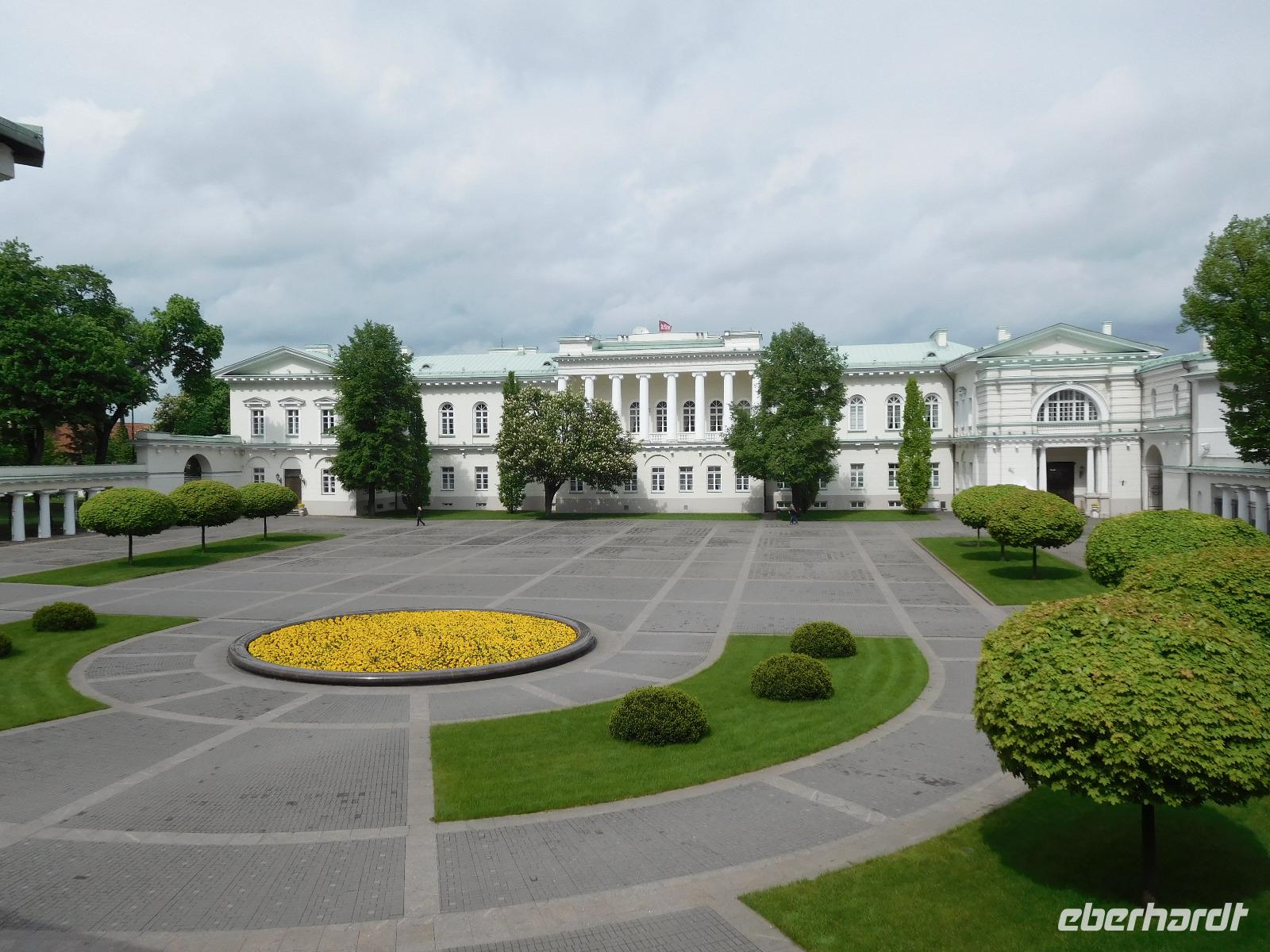 Nach dem reichhaltigen Frühstück unternahmen wir einen ruhigen Spaziergang durch Nidden und vorbei an den bunten Fischerkaten, dem Bernsteinmuseum und dem Friedhof mit der evangelischen Dorfkirche von 1888 kamen wir zum Sommerhaus, das Thomas Mann sich vom Nobelpreisgeld 1929 über dem berühmten „Italienblick" hat bauen lassen. Dann folgte eine Busfahrt über den litauischen Teil der kurischen Nehrung, die zahlreiche Ausblicke in die Natur dieses besonderen Stückchens Baltikum ermöglichte. Mit der Fähre ging es in den Hafen von Klaipeda, früher die Ordensritterburg Memel. Die Stadt hat unter Kriegen und Sowjetzeit gelitten, doch sind immer mehr bedeutende historische Gebäude zu sehen. Dazu zählt das eher schlichte Herrenhaus, in dem Preußenkönig Friedrich Wilhelm III. mit seiner Luise 1807/08 residierte, wodurch die Stadt zur preußischen Hauptstadt avanciert. Da allerhand Cafés und Restaurants geöffnet waren, wirkten in der samstäglichen Mittagszeit die Straßen sehr lebendig. Zudem wurden auf dem ehemaligen Seglschulschiff, heute ein fest vertäutes Restaurant und Wahrzeichen von Klaipeda, in einer folkloristischen Aktion alle Segel gehisst. Nach einer weiteren Pause bewältigten wir bei mäßigem Samstagsverkehr die insgesamt 300 Kilometer bis Vilnius, wo einige Gäste noch nach dem Abendessen die nahe gelegene Altstadt erkundeten. Nachdem wir gegen 19 Uhr Uhr beim Hotel eintrafen und noch gut zu Abend essen konnten, erkundeten die meisten Gäste noch die nahe liegende Stadt.