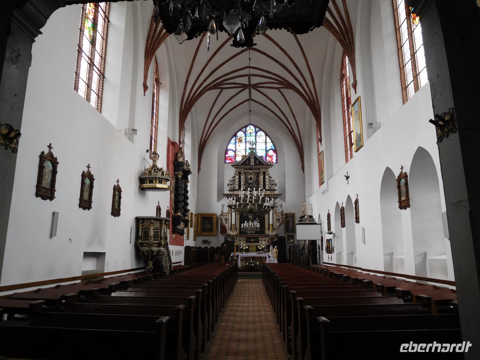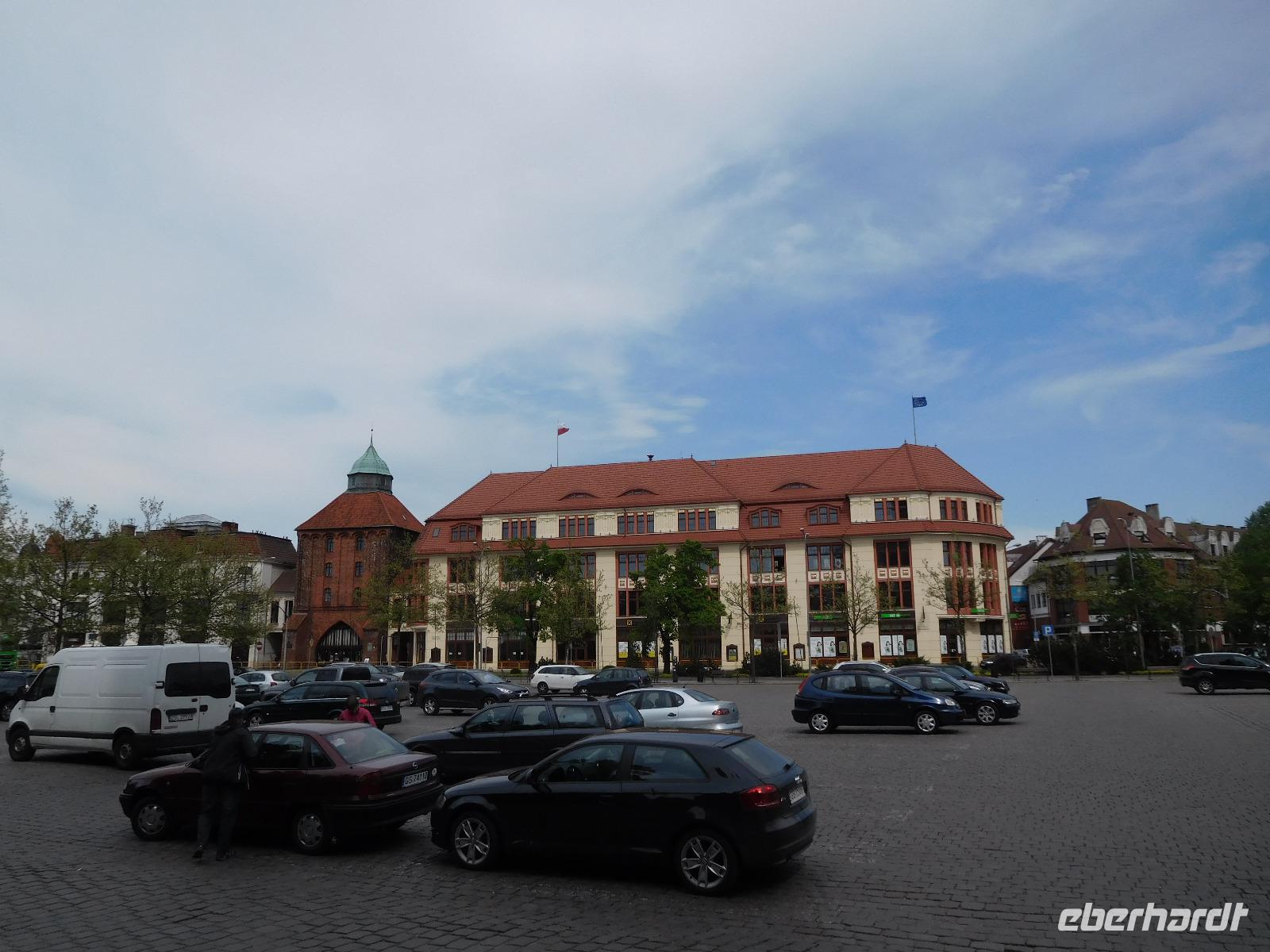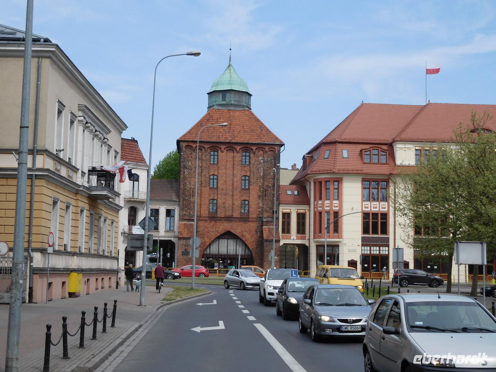 Nach zügiger Fahrt von Chemnitz über Dresden und den Berliner Ring erreichten wir pünktlich die Grenze zu Polen. Auf dem belebten Marktplatz von Stolp legten wir eine Toilettenpause ein. Bei der nahe gelegenen Stadtinformation holte der Reiseleiter für alle Gäste Stadtpläne und so konnte jeder nach den vorherigen Ausführungen des Reiseleiters die Stadt und ihre Sehenswürdigkeiten erkunden. Dazu zählen drei gotische Kirchen und Teile der Stadtbefestigung mit Toren und dem Hexenturm, sowie eine alte Wassermühle samt Speicher.