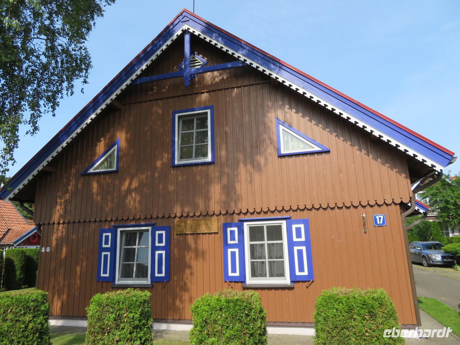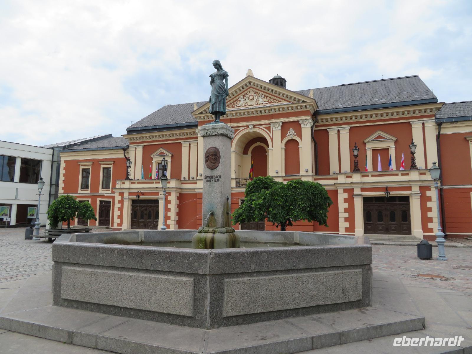 Morgendliche Sonntagsstimmung über dem Kurischen Haff und Frühstück im, an einen Großspeisesaal eines Pionierferienlagers erinnernden, Restaurant des Hotels, das den einst renommierten Teil des Gästehauses von Hermann Bodde einschließt. Mit dem Bus erreichten wir in wenigen Minuten die Hohe Düne: Ausblick auf Ostsee und Haff, auf russiche und litauische Seite der Nehrung. Vom Busparkplatz in Nidden bummelten wir durch den Ort mit Kurenhäusern und einem letzten Relikt eines Kurenkahns. Immer wieder lehr- und facettenreich, die Erklärungen zu den Kurenwimpeln. Auf dem Weg zum Thomas-Mann-Haus statteten wir dem Bernstein-Museum einen Besuch ab und erreichten nach zwei Kilometern Sonntagsspaziergang das einstige Sommerhaus des Nobelpreisträgers. Hier ist immer wieder Zeit, nicht nur die tolle Lage zu begutachten, sondern auch an die Geschichte zu erinnern, aber auch einige Facetten des Patrons zu beschreiben. Am zeitigen Nachmittag erreichten wir das litauische Festland; im sonntags geöffneten Einkaufscentrum erfolgte die Abwahl der Bockwurst-Wiener-Connection für diesen Tag. Anschließend Stopp am Ännchen-von-Tharau-Brunnen und vielstimmiges Singen aller Strophen des Liedes - alle Achtung!
