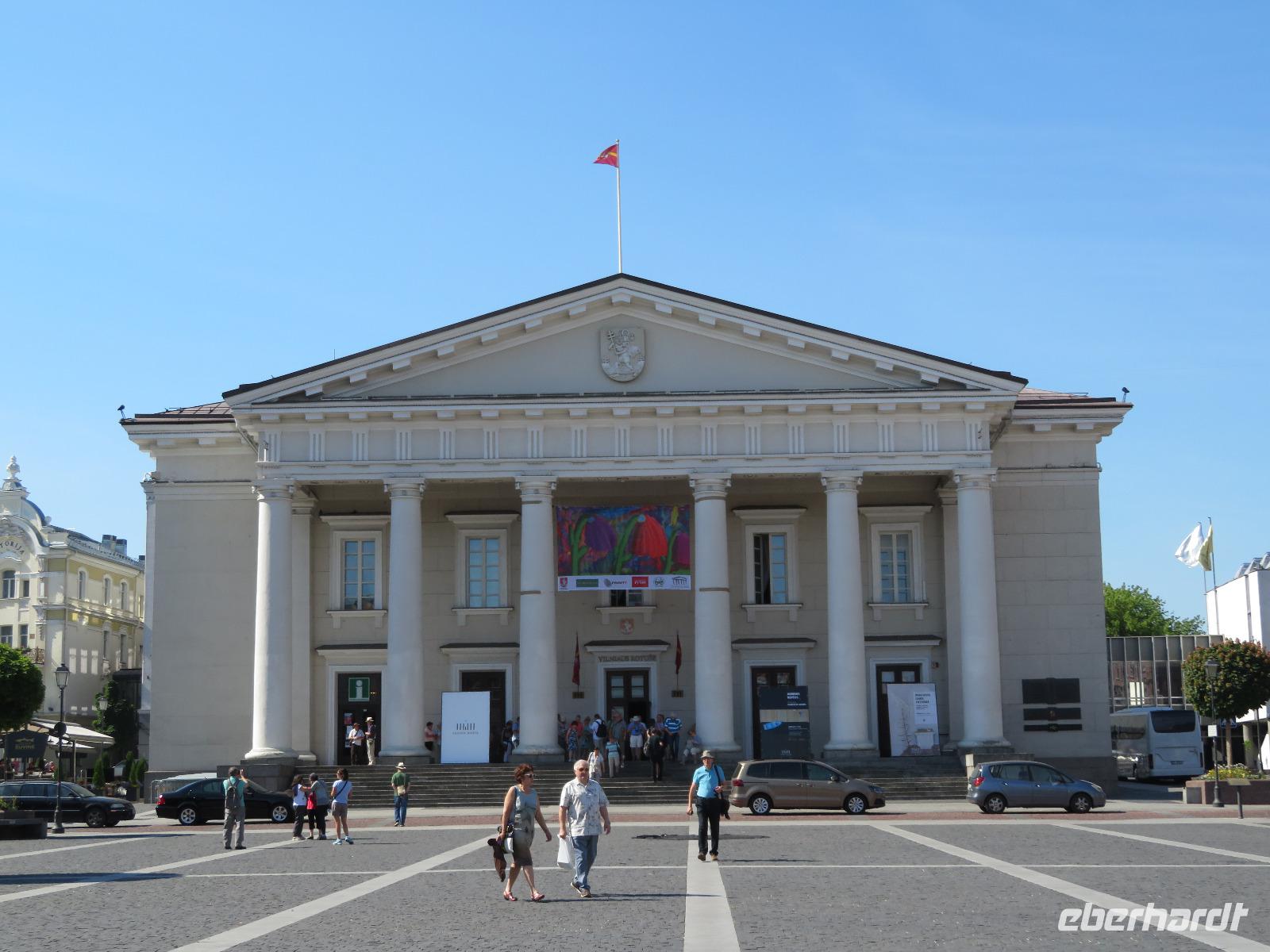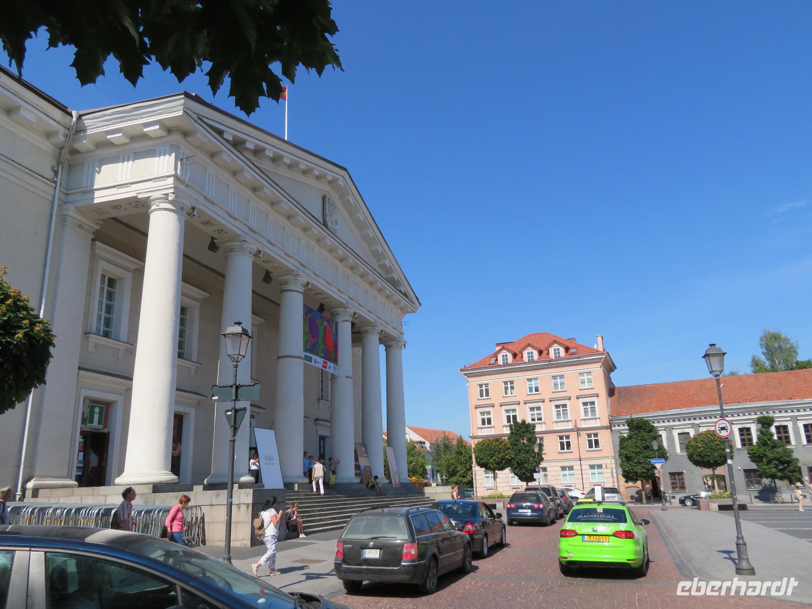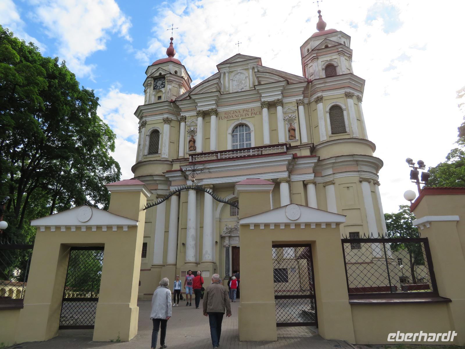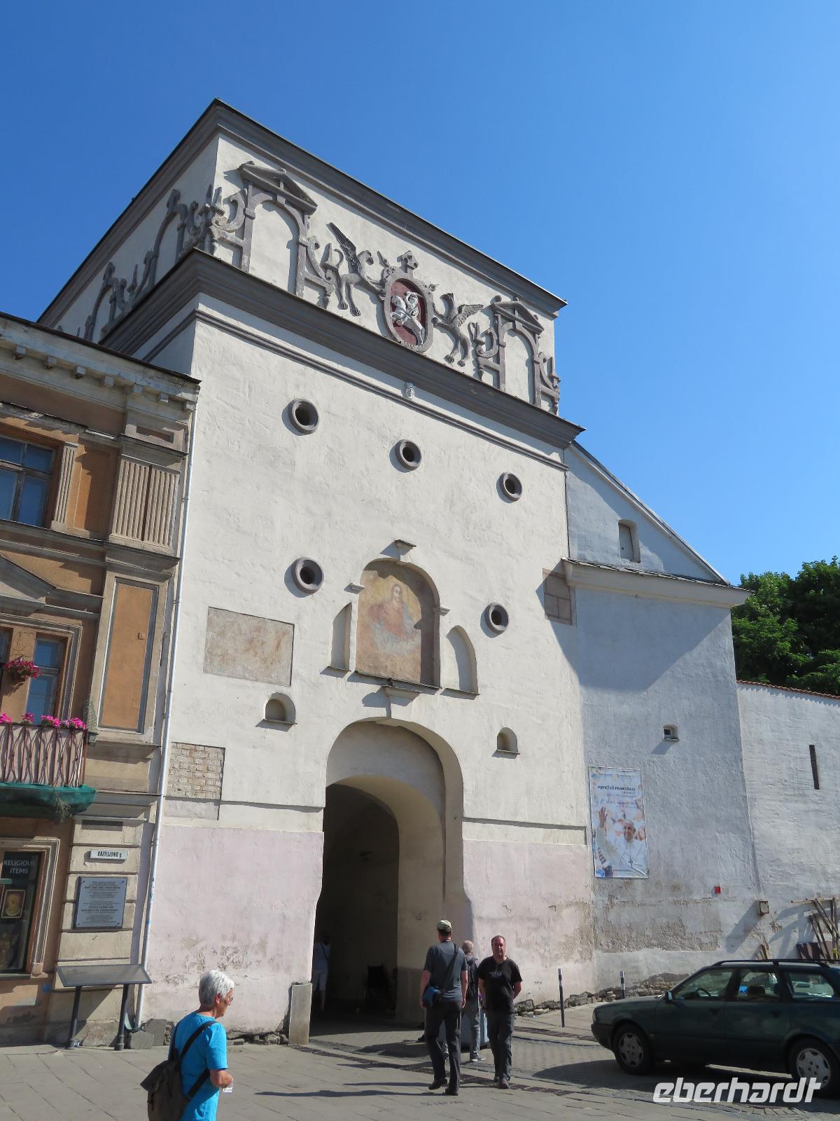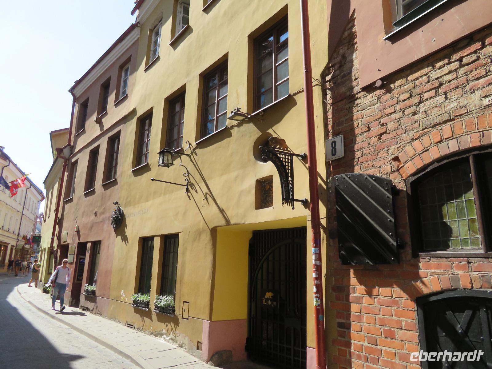 Mit dem Bus an Neris entlang, die Wilna überquerend, den Burgberg umfahrend gelangten wir zur Aussicht auf Vilnius. War Vilnius einst für seine mehr als dreißig Kirchtürme bekannt und fast ein litauisches Jerusalem, so überwiegen heute fast die Glastürme der Neustadt, die sich in deutlichem Kontrast zum Grün um die Altstadt befinden. Der Fußweg führte vom Tor der Morgenröte, sparsam an weiteren orthodoxen und insbesondere katholischen Kirchen vorbei, zum klassizistischen Rathaus, dann in die Gassen der Altstadt zum ehemaligen Jüdischen Getto, zu Gebäuden der Universität und zum Gebäude der Noch-Präsidentin Litauens. Finale des Spazierganges dann am Kathedralenplatz - einst Gediminis-Platz (war ein Fürst und musste als Namensgeber trotzdem weichen). Erfreulich, dass die Unterburg im Rennaissancestil wieder aufgebaut wurde und nunmehr zugänglich ist.