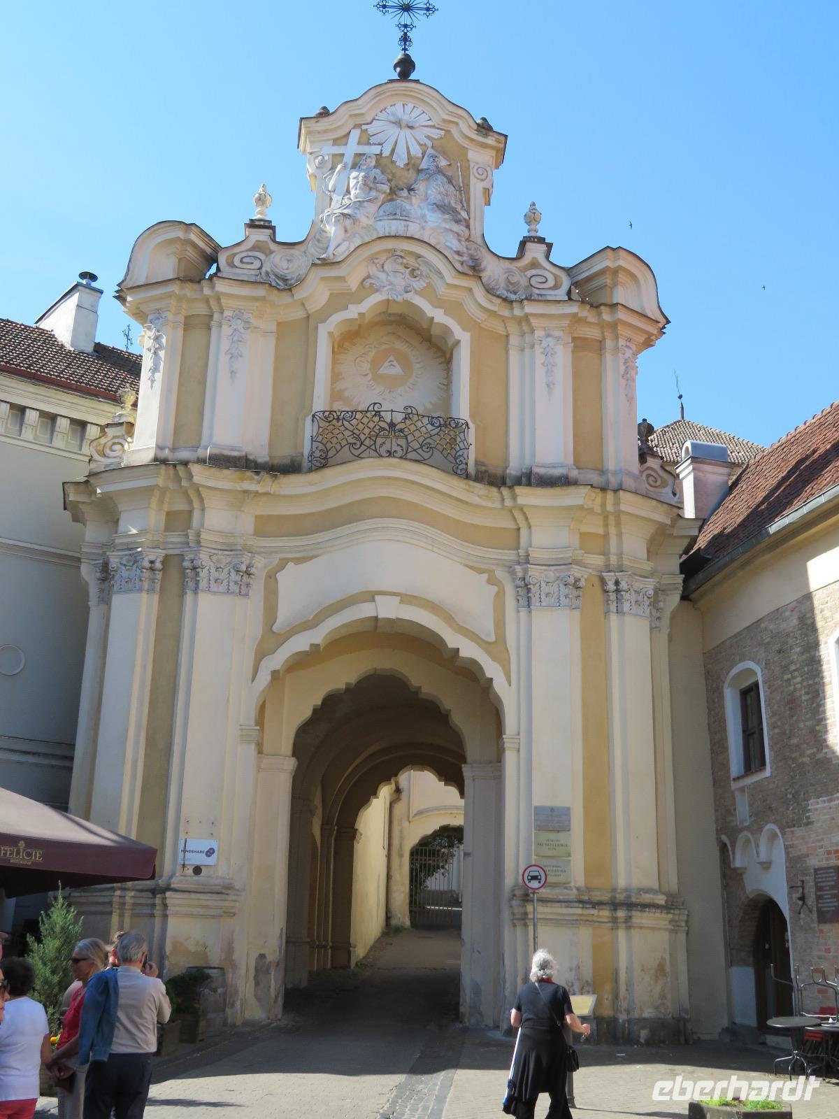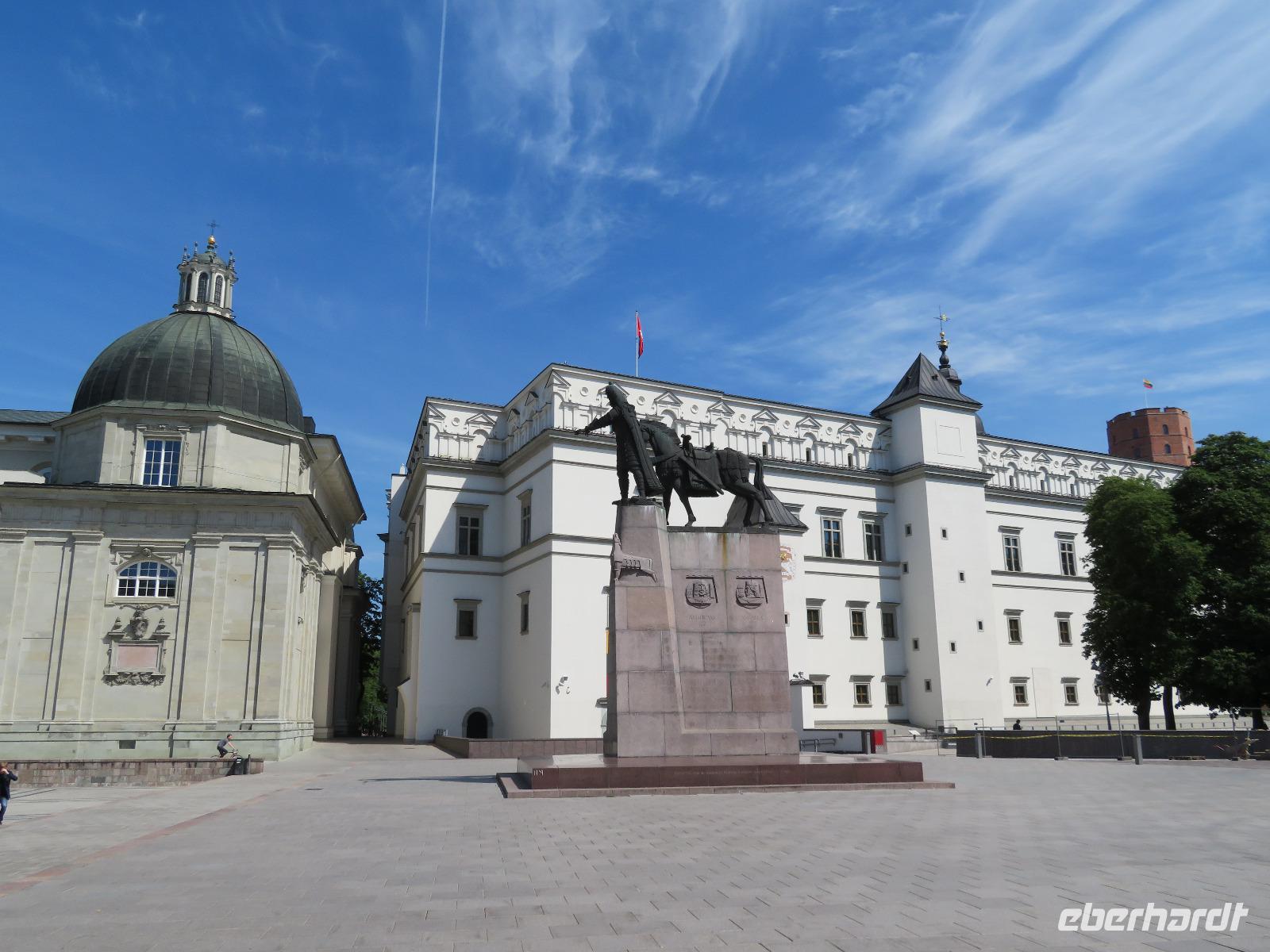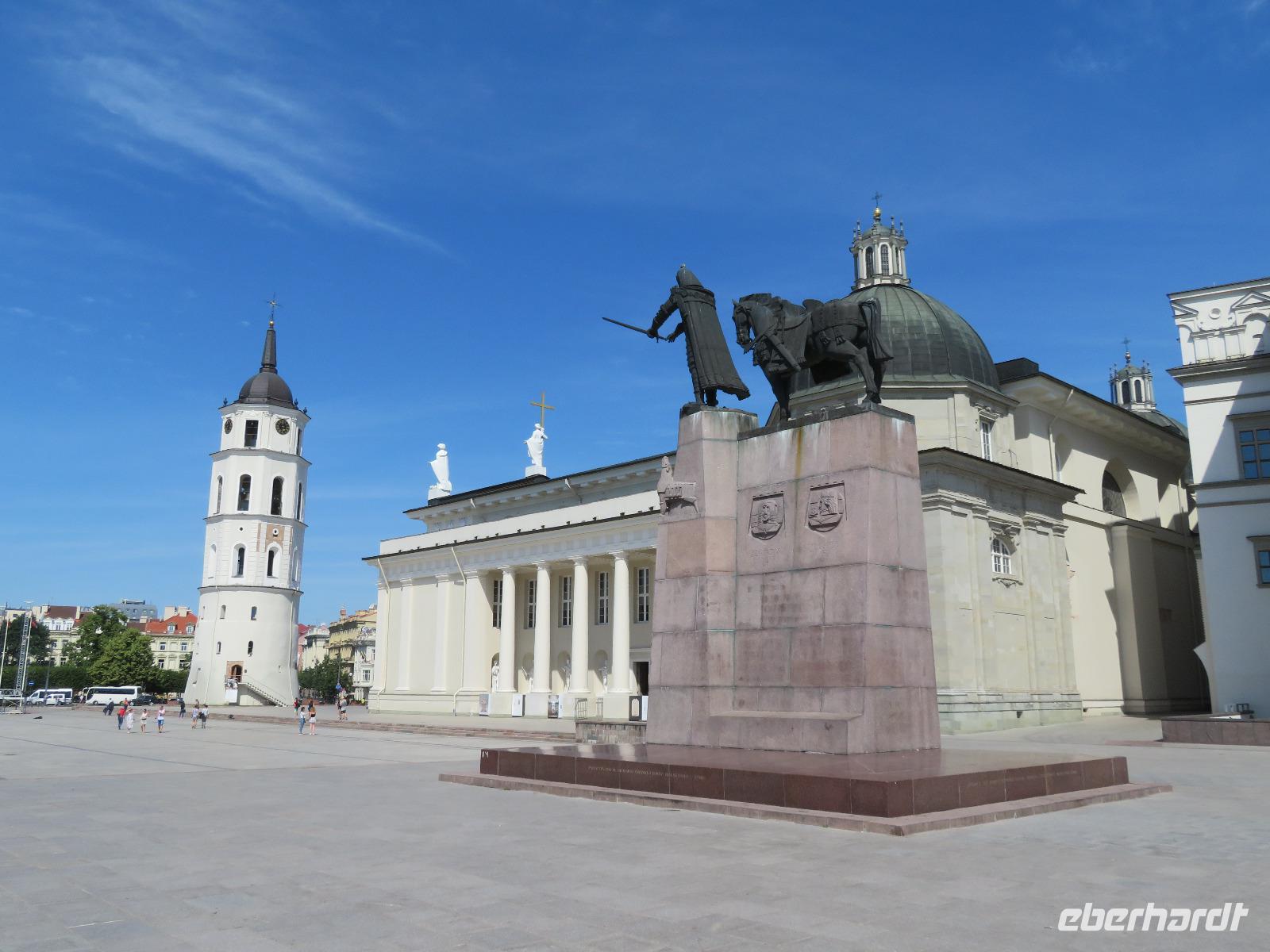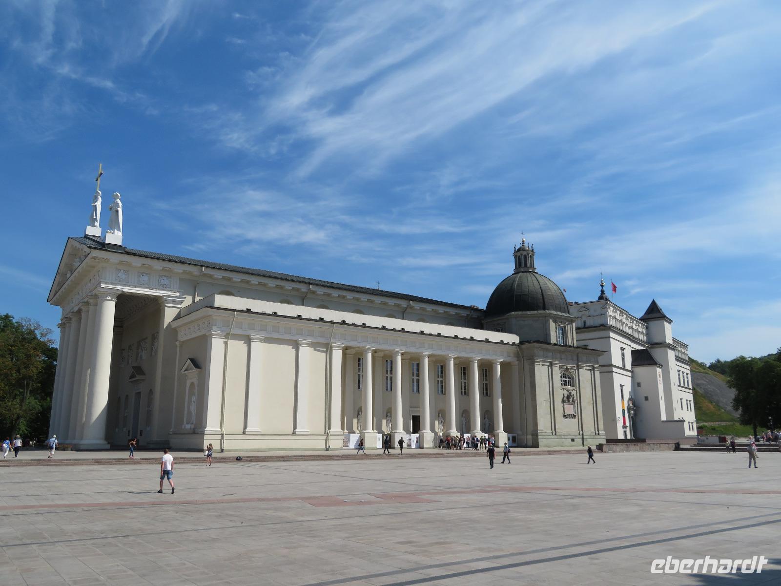 Mit dem Bus an Neris entlang, die Wilna überquerend, den Burgberg umfahrend gelangten wir zur Aussicht auf Vilnius. War Vilnius einst für seine mehr als dreißig Kirchtürme bekannt und fast ein litauisches Jerusalem, so überwiegen heute fast die Glastürme der Neustadt, die sich in deutlichem Kontrast zum Grün um die Altstadt befinden. Der Fußweg führte vom Tor der Morgenröte, sparsam an weiteren orthodoxen und insbesondere katholischen Kirchen vorbei, zum klassizistischen Rathaus, dann in die Gassen der Altstadt zum ehemaligen Jüdischen Getto, zu Gebäuden der Universität und zum Gebäude der Noch-Präsidentin Litauens. Finale des Spazierganges dann am Kathedralenplatz - einst Gediminis-Platz (war ein Fürst und musste als Namensgeber trotzdem weichen). Erfreulich, dass die Unterburg im Rennaissancestil wieder aufgebaut wurde und nunmehr zugänglich ist.