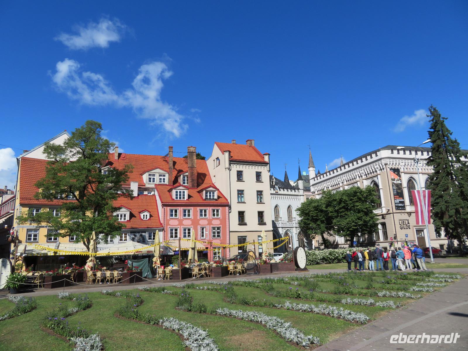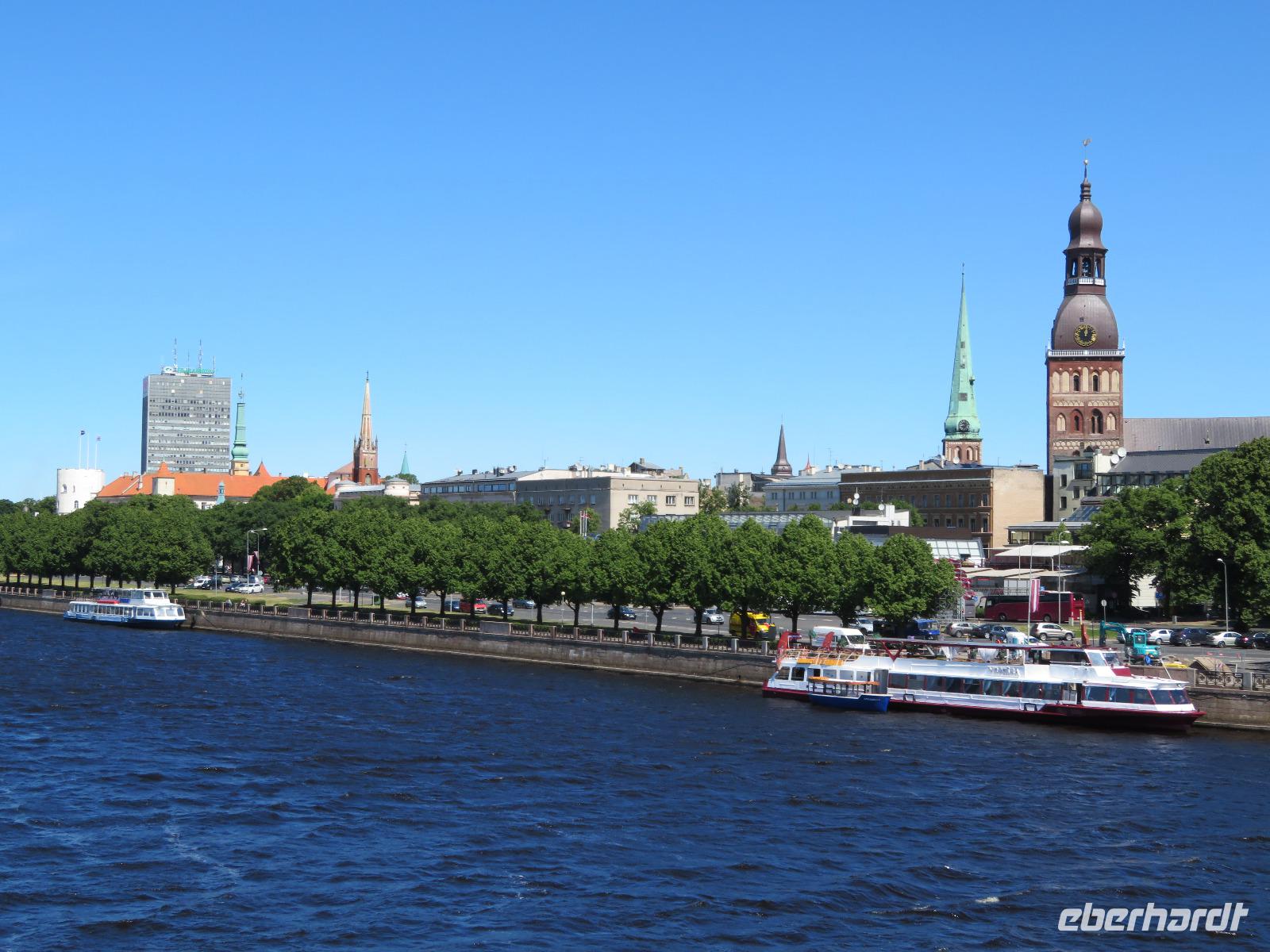 Stadtbummel bei Sonne aber Frische: vom Denkmal der lettischen Schützen zum Schwarzhäupterhaus, der Petrikirche, durch das Convent, zun den Gilden und dem Katzenhaus, zum Pulverturm, dem Schwedentor, Schloss, Parlament, St. Josef, Dreibrüderhaus und Finale am Dom. Dazwischen immer mal wieder ein Jugendstilgebäude in den drei, zeitlich bedingten, Formstilen des lettischen Jugendstils. Eine großer Teil der Reisegruppe gönnte sich anschließend ein kleines Orgelkonzert im Dom; viele glitten bei leichtem Wellengang mit einem Schiff über die Daugava und einige bummelten hinüber zu den Markthallen, die einst Zeppelinhallen waren