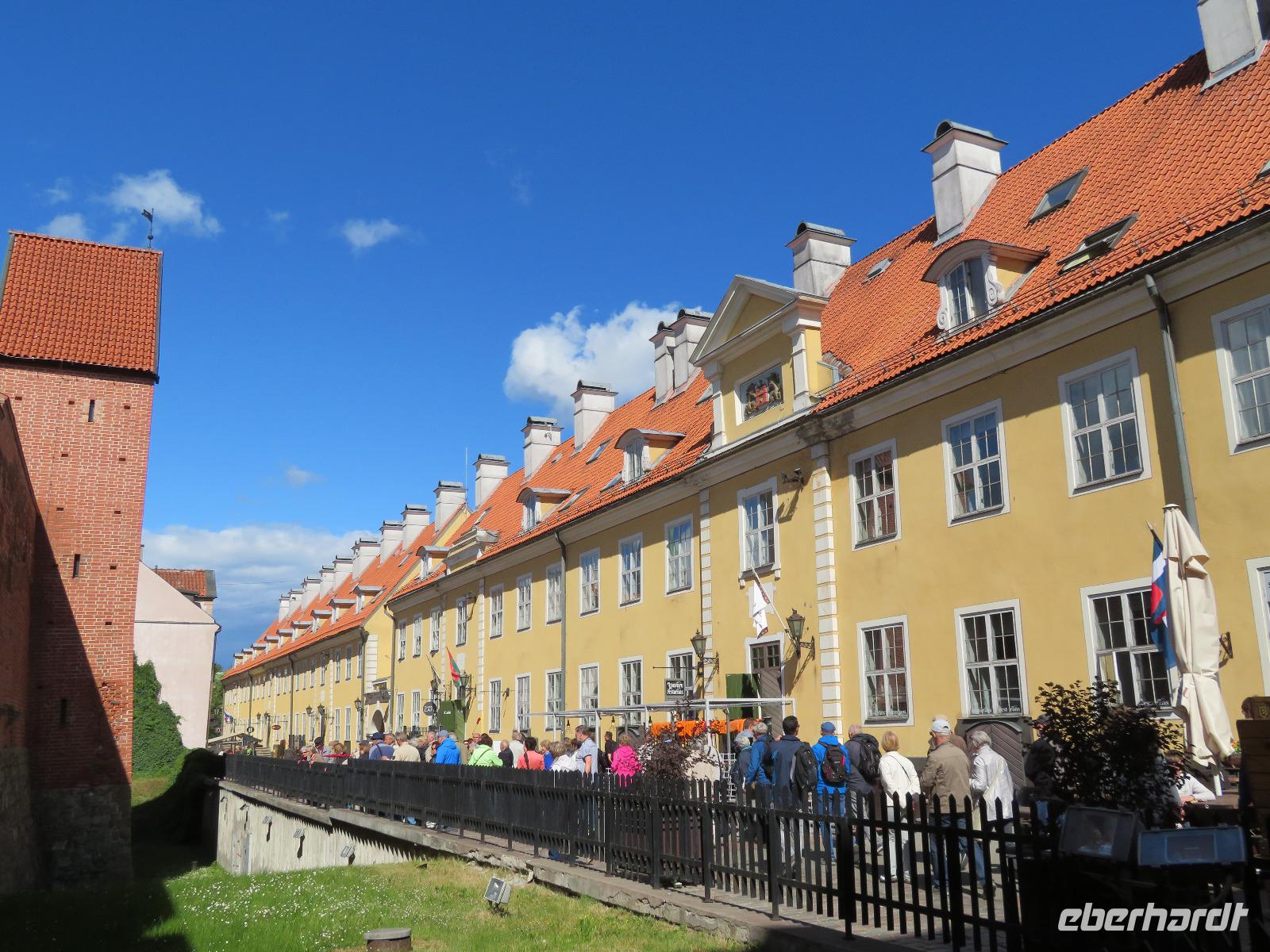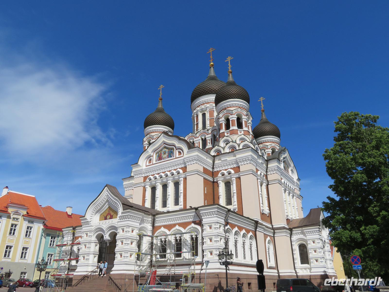 Im noch morgendlichen Berufsverkehr Rigas drehten wir eine Runde um die Altstadt, um die Stadt über die Freiheitsstraße nach Norden zu verlassen. Wer sich in die bauliche Substanz der etwas grauen Häuser der Freiheitsstraße hineindenkt, entdeckt besten Jugendstil. Durch wald- und seenreiche Landschaft Lettlands und Estlands erreichten wir Pärnu, das bedeutendste estnische Seebad. Mittagspause dort mit direktem sandigen Strandzugang. Zur besten Nachmittagszeit erreichten wir Tallinn und absolvierten noch vor dem check-in einen ersten Bummel über die berstadt, Tompea. Am Schloss und dem „Langen Hermann", der Newski-Kathedrale vorbei erreichten wir den Dom und bummelten vorbei an ehemaligen Ritterpalästen zu den bekannten Aussichten auf die Unterstadt und den Hafen. Zu später Nachmittagsstunde trafen wir uns, um die Unterstadt zu erkunden: Viru-Tor, Stadtmauer, Katharinengasse, Gilde, Schwarzhäupterhaus, Apotheke, Rathaus und das Freiheitsdenkmal waren so unsere wesentlichsten Punkte des Bummels, bevor wir zum Abendessen in ein Altstadtrestaurant einzogen. Anschließend hatte jeder Zeit noch individuell durch die Gassen Tallinns zu schlendern, auch wenn der Wind mitunter etwas böig blies.