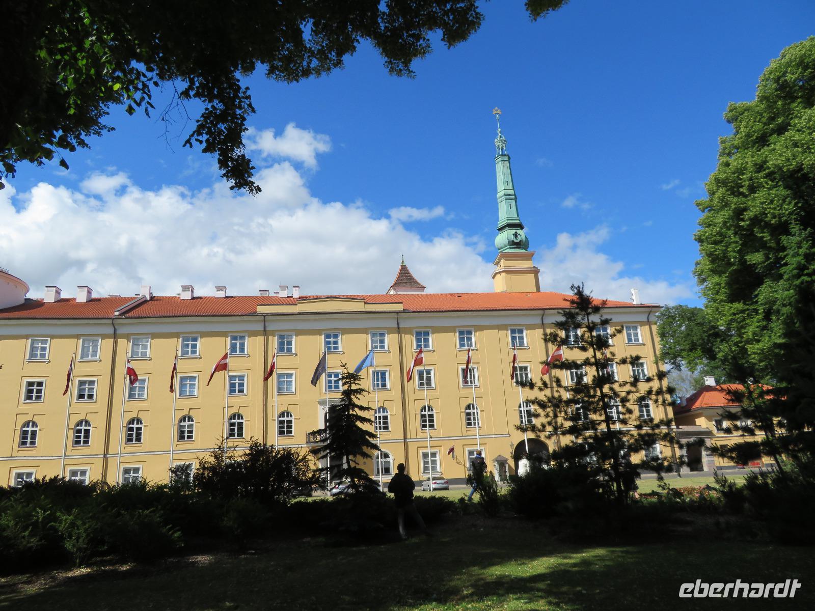 Zeitiges Aufstehen und Abreisen kann den Besuch der Peter-und-Pauls-Kirche von Vilnius ohne Gegenstrom ermöglichen. Wir schafften es und konnten so zwischen Heiliger Messe und Touristenöffnung die Kirche mit ihren zweitausend Stuckfiguren besichtigen. In über dreistündiger Fahrt ging es dann zum Berg der Kreuze bei Siaulei. Mehr als fünfzehntausend große und weitere wohl einhunderttausend kleine Kreuze stehen auf dem Hügelchen und der Fläche herum und künden Pilgern und Touristen vom jahrhundertelangen Unabhängigkeitswillen der Litauer. Für uns wohl trotzdem auch eine Sache des Geschmacks. Am Nachmittag erreichen wir das Schloss Rundale, barocker Schlosskomplex des Baumeisters Rastrelli. Seit 2014 ist das Schloss nun fertig rekonstruiert - bald muss jedoch das Dach erneuert werden. Wer in den vergangenen Jahren hier mehrfach weilte, findet immer wieder Veränderungen und Bereicherungen am Rundaler Schloss im Zeitgeist von Versailles, Schönbrunn, Capua - und dies inmitten der Felder Lettlands. Rechtzeitig zum Abendessen erreichten wir Riga und unser traditionelles Bellevue Park Hotel am südlichen Ufer der Daugava.