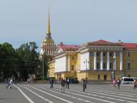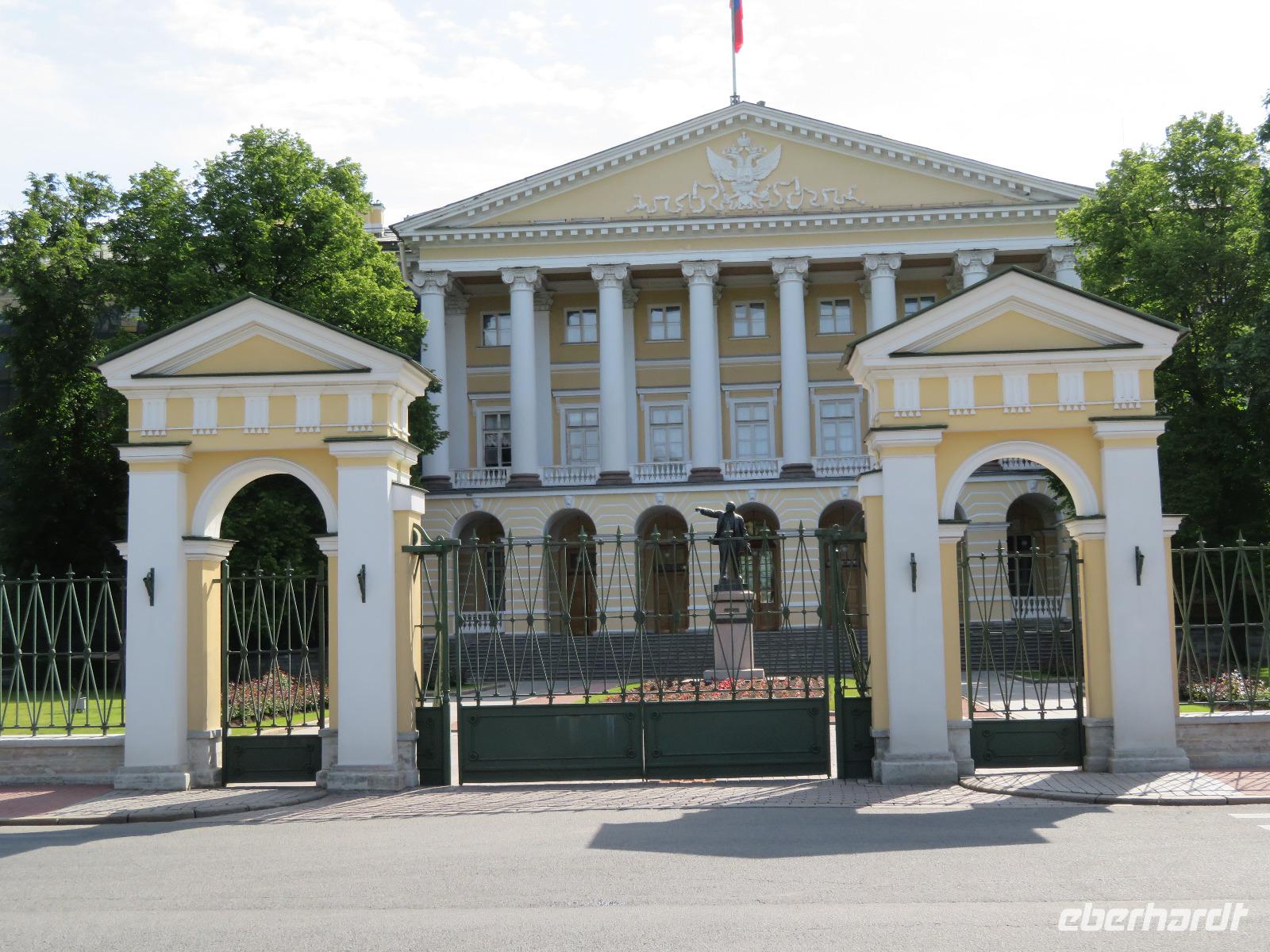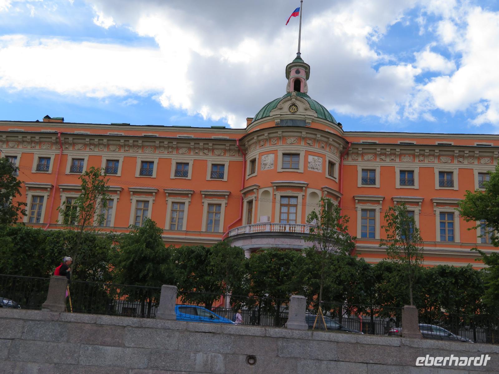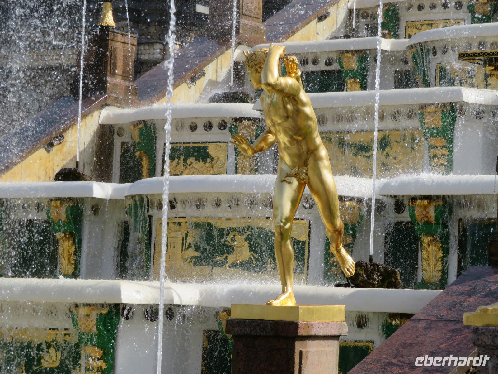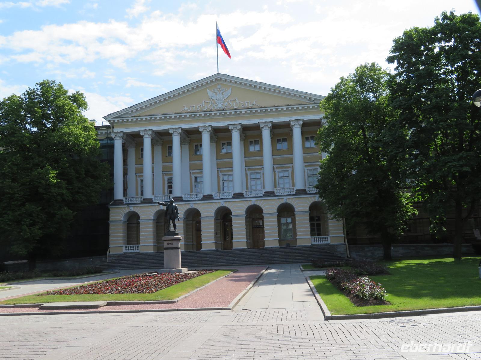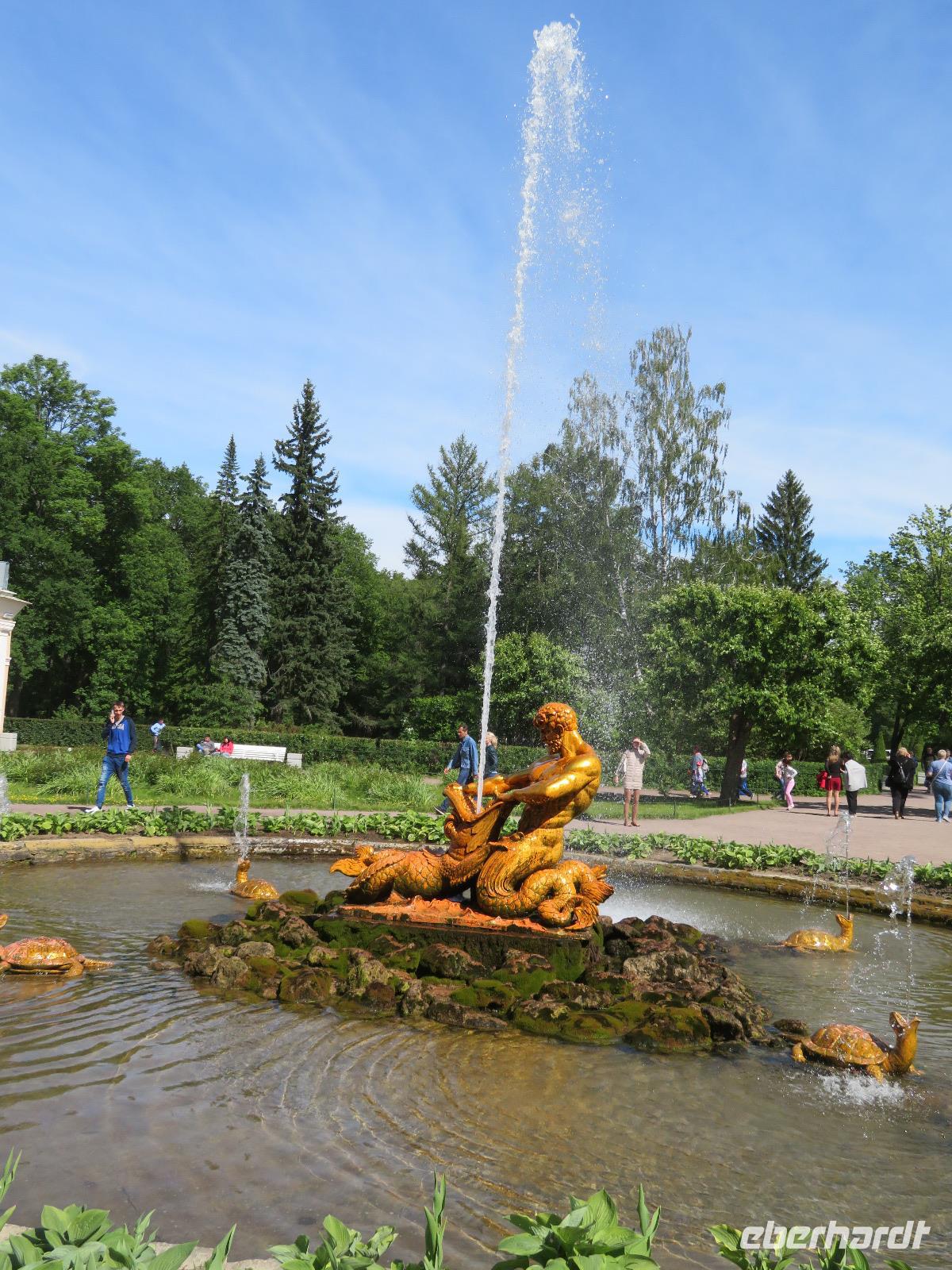 Der akkurat mit 10:37 Uhr zugewiesene Zugang zum Winterpalais ermöglichte uns einen Stopp am Smolny: Ort einer Teerkocherei, eines Mädchenklosters und für romantisierende Bolschewiki-Legenden. Im Strom der Touristen schwammen wir dann mehrere Kilometer durch die Ausstellungsräume eines Museums mit wohl sechzigtausend Ausstellungs- und einigen Millionen Depotgegenständen. In zwei Stunden kann man nur einen kleinen Ausschnitt bei straffer Führung von Timofei sehen: riesige Vasen und Becken aus Halbedelsteinen, Gemälde westeuropäischer Meister, die Galerie der Generäle der russischen Armee im Kampf gegen Napoleon, das von Touristen umlagerte Uhrenspiel oder einfach nur die Säle mit ihrem Goldschmuck. Treff und Fototermin dann an der Alexandersäule auf dem Palaisplatz und zügige Fahrt nach Petrodworez, wo sich mehrere Parkanagen der Zaren befinden, darunter der Peterhof. Bei strahlender Sonne bummelten wir durch den Park mit immer wieder wie neu erscheinenden Goldfiguren und den zahlreichen Fontänen. Am Zugang zur Ostsee mit Blick auf Petersburg mit dem Gazprom-Tower zur Rechten und auf ein Stück Kronstadt zur Linken. Am zeitigen Abend erreichten wir unser Hotel Moskwa und jeder konnte am Abend, wenige Tage vor der Sommersonnenwende, „Weiße Nächte" in St. Petersburg erleben.
