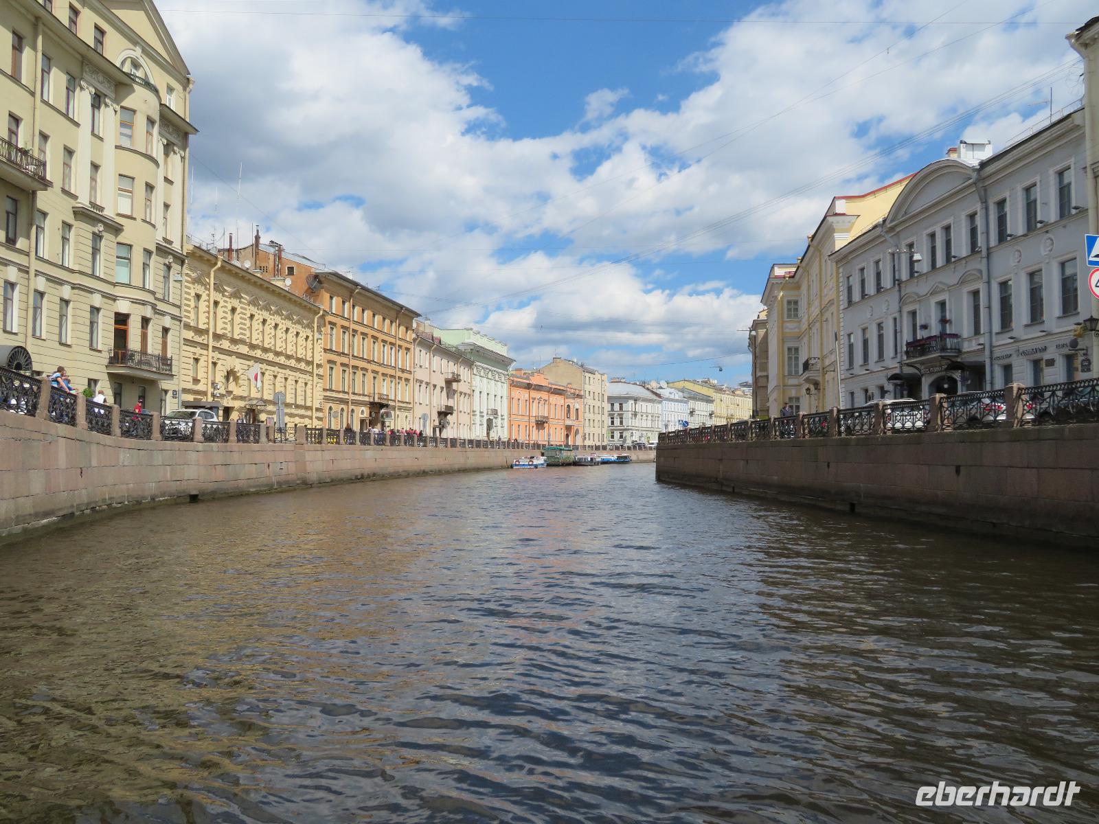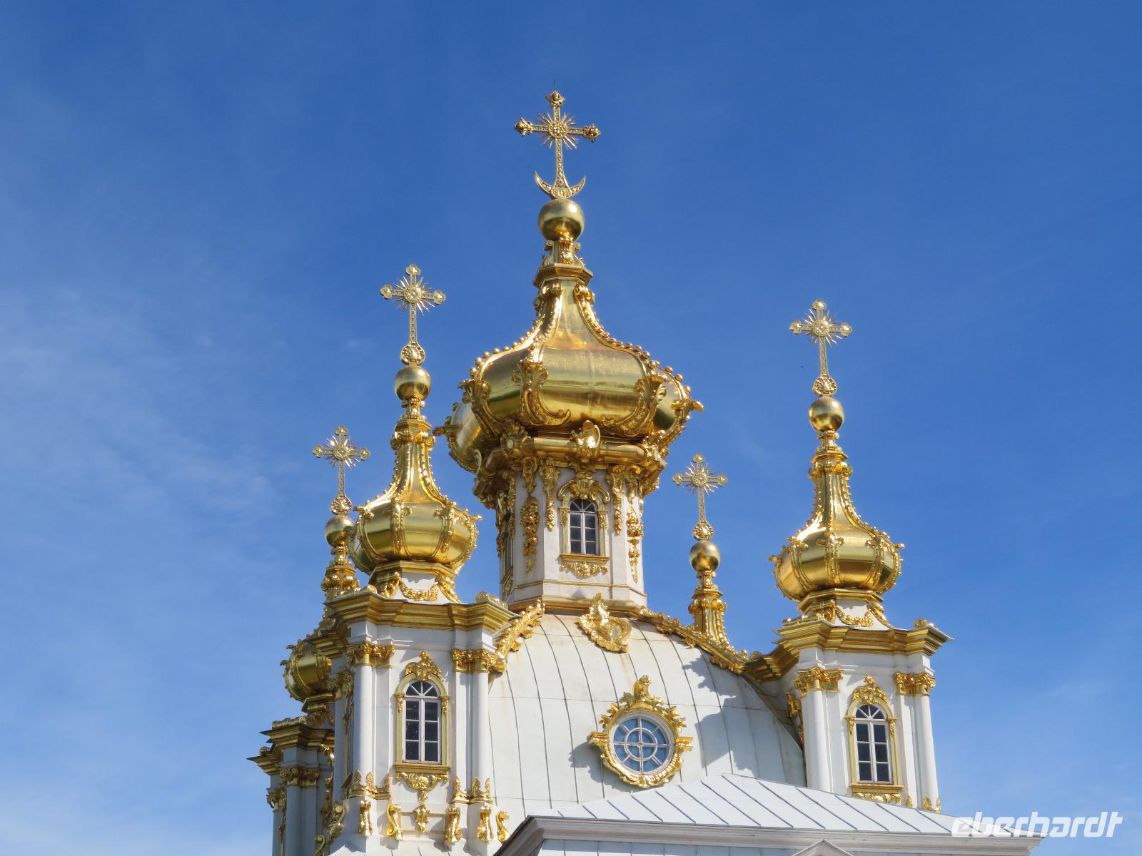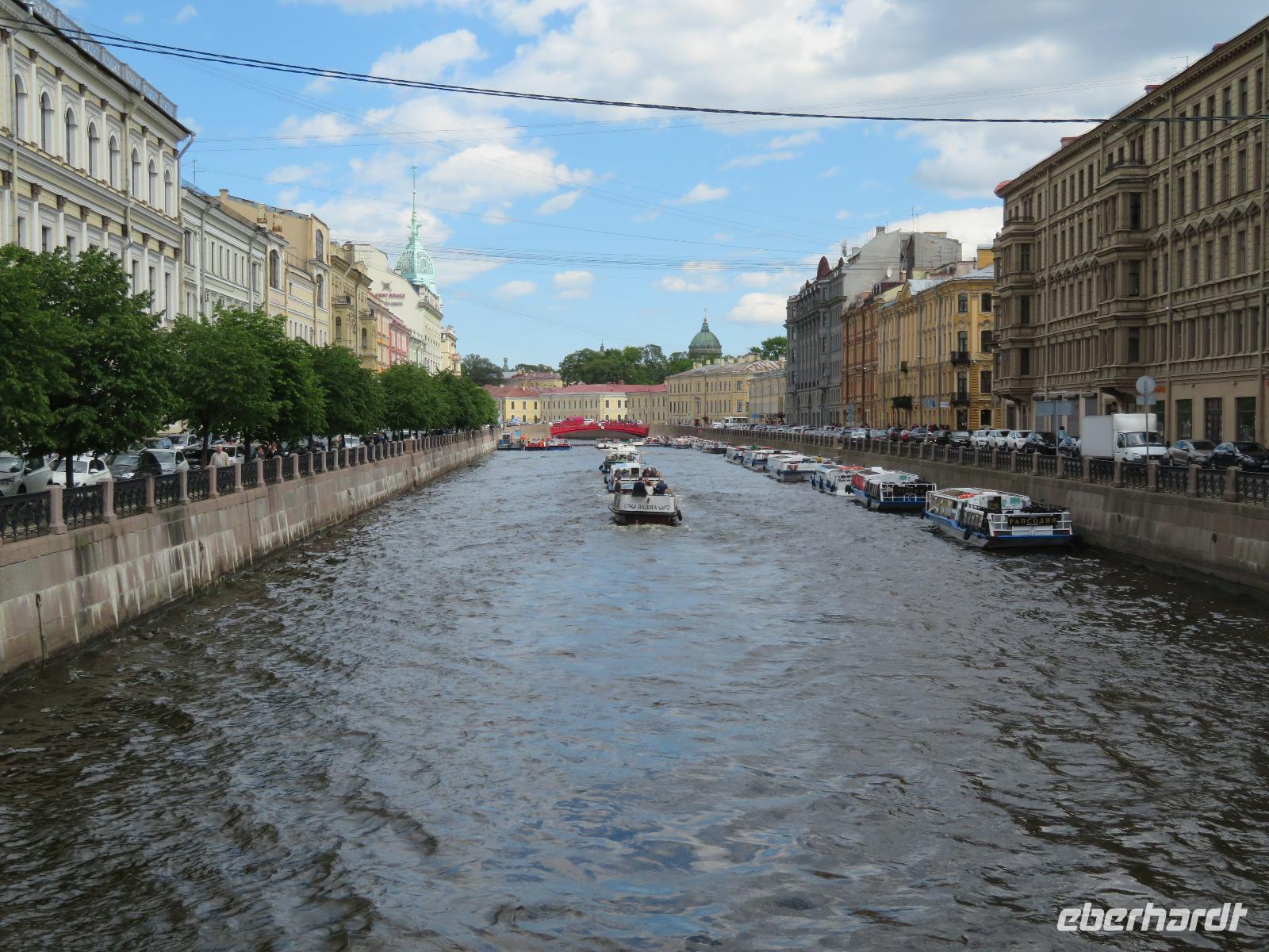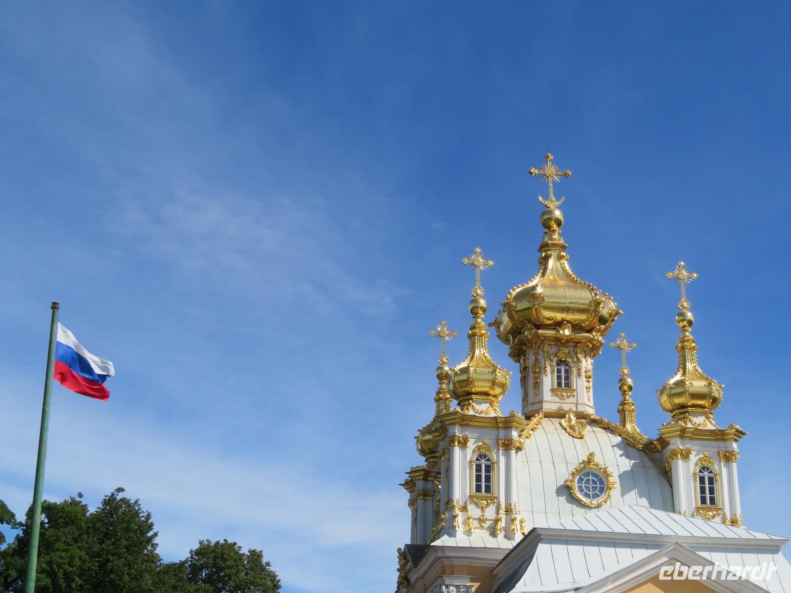 Eine fakultative Bootstour führte über Moika, Newa, Fontanka und Kanal vorbei an all den Adelspalästen, die russische Geschichte schrieben. In zügiger Fahrt erreichten wir über eine neue Stadtautobahn, ab Pulkowo ein wenig im Stau der Datschenausflügler, Puschkin. Das Katharinenschloss im einstigen Zarskoje Selo, gehört sicher zu den eindrucksvollsten Palästen des Barock. Das Bernsteinzimmer als einstiges Geschenk des Preußenkönigs an den russischen Zaren - ein Beispiel gutnachbarlicher Diplomatie ...