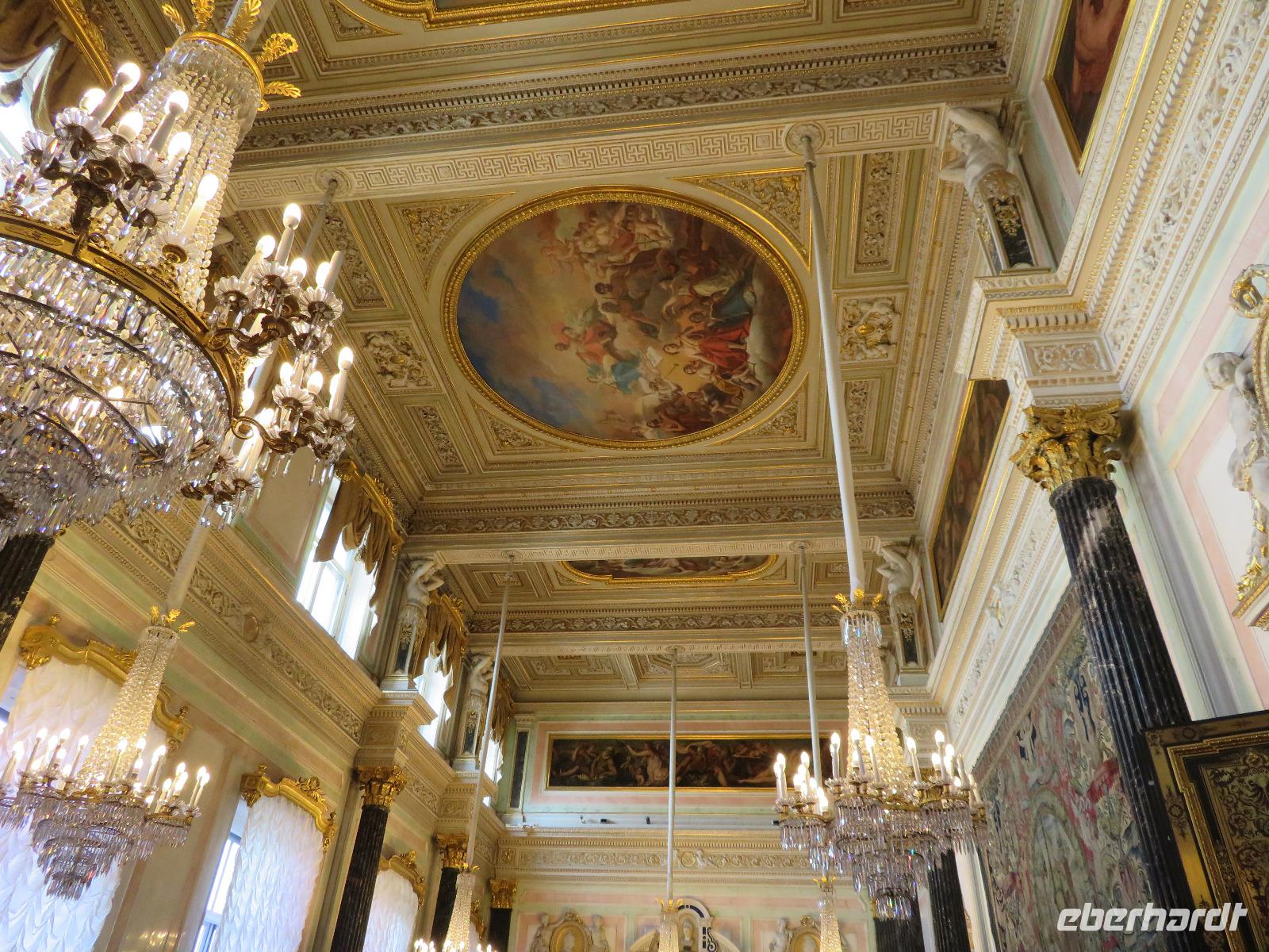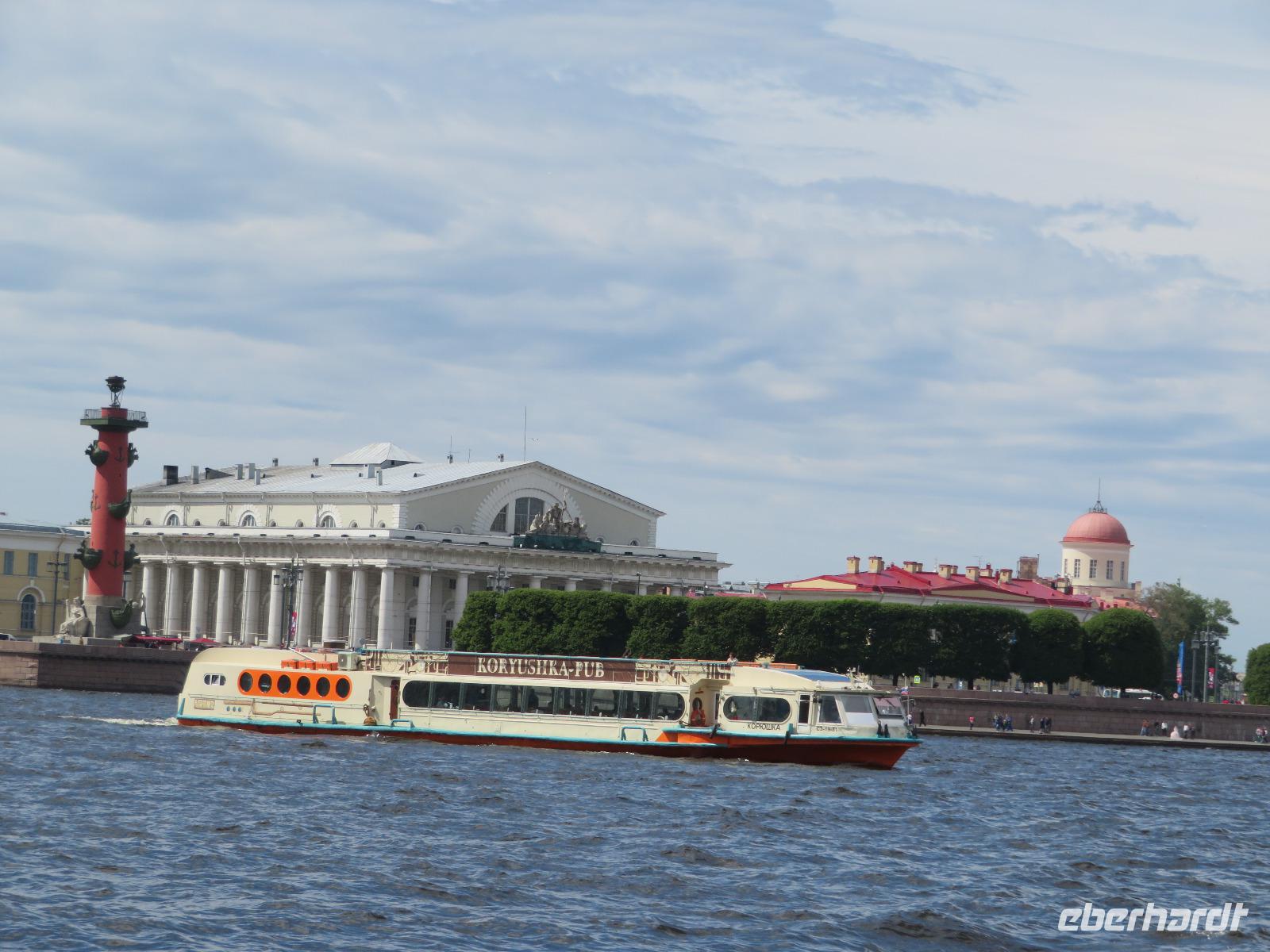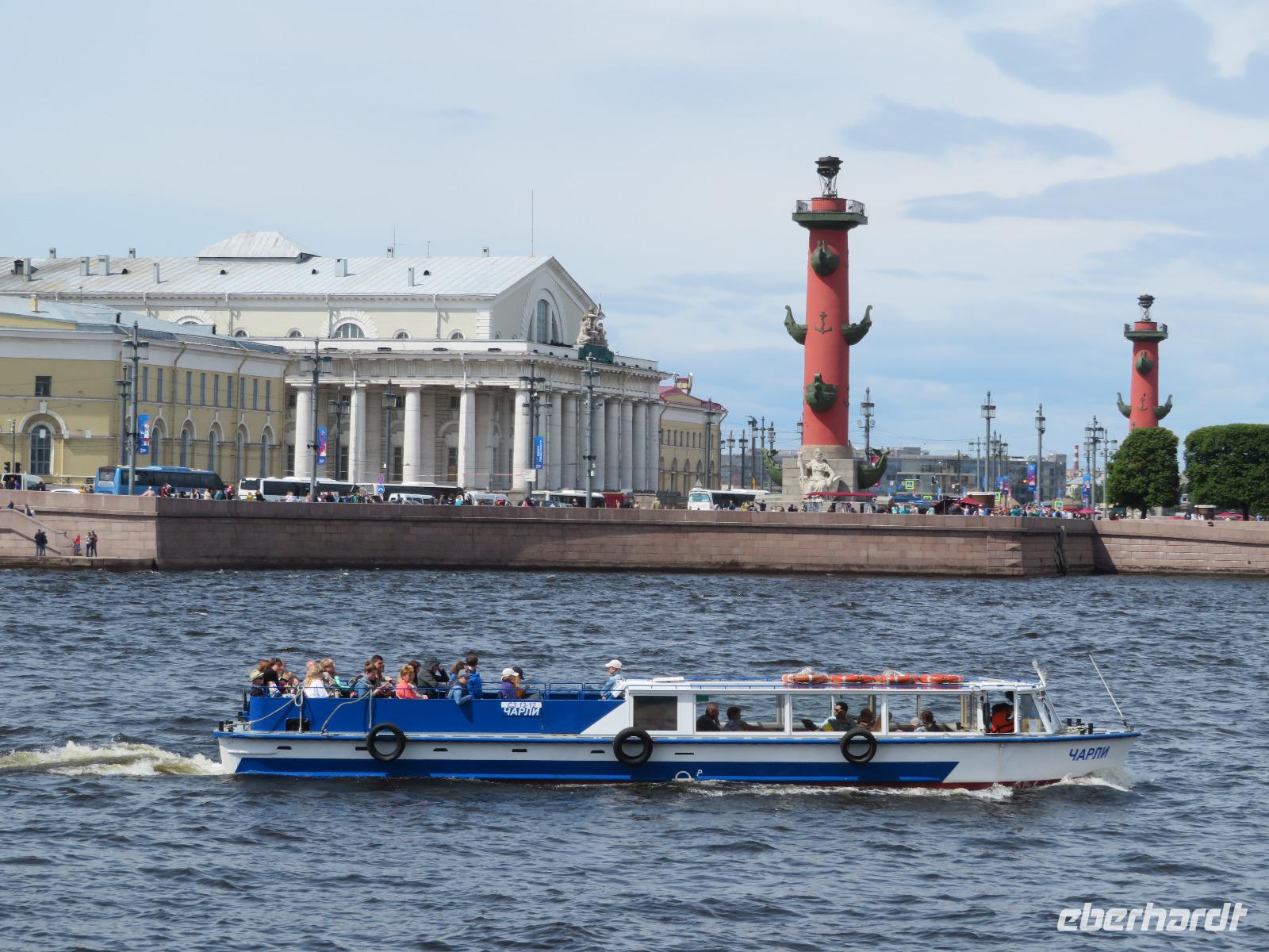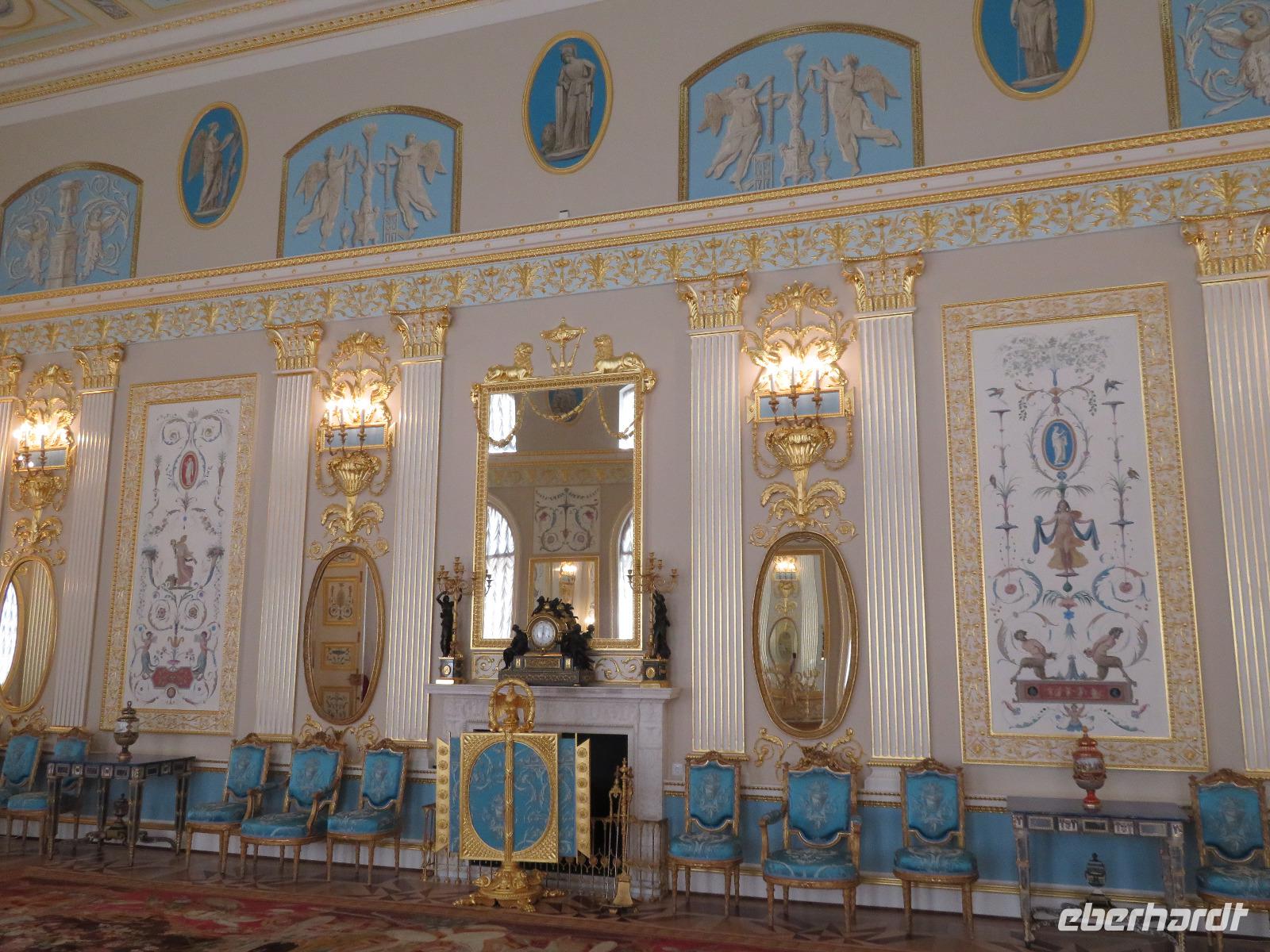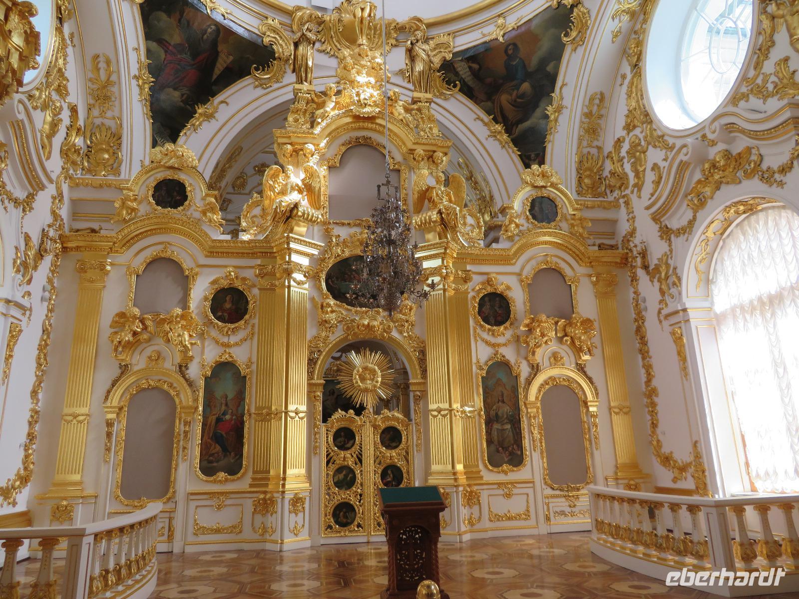 Eine fakultative Bootstour führte über Moika, Newa, Fontanka und Kanal vorbei an all den Adelspalästen, die russische Geschichte schrieben. In zügiger Fahrt erreichten wir über eine neue Stadtautobahn, ab Pulkowo ein wenig im Stau der Datschenausflügler, Puschkin. Das Katharinenschloss im einstigen Zarskoje Selo, gehört sicher zu den eindrucksvollsten Palästen des Barock. Das Bernsteinzimmer als einstiges Geschenk des Preußenkönigs an den russischen Zaren - ein Beispiel gutnachbarlicher Diplomatie ...