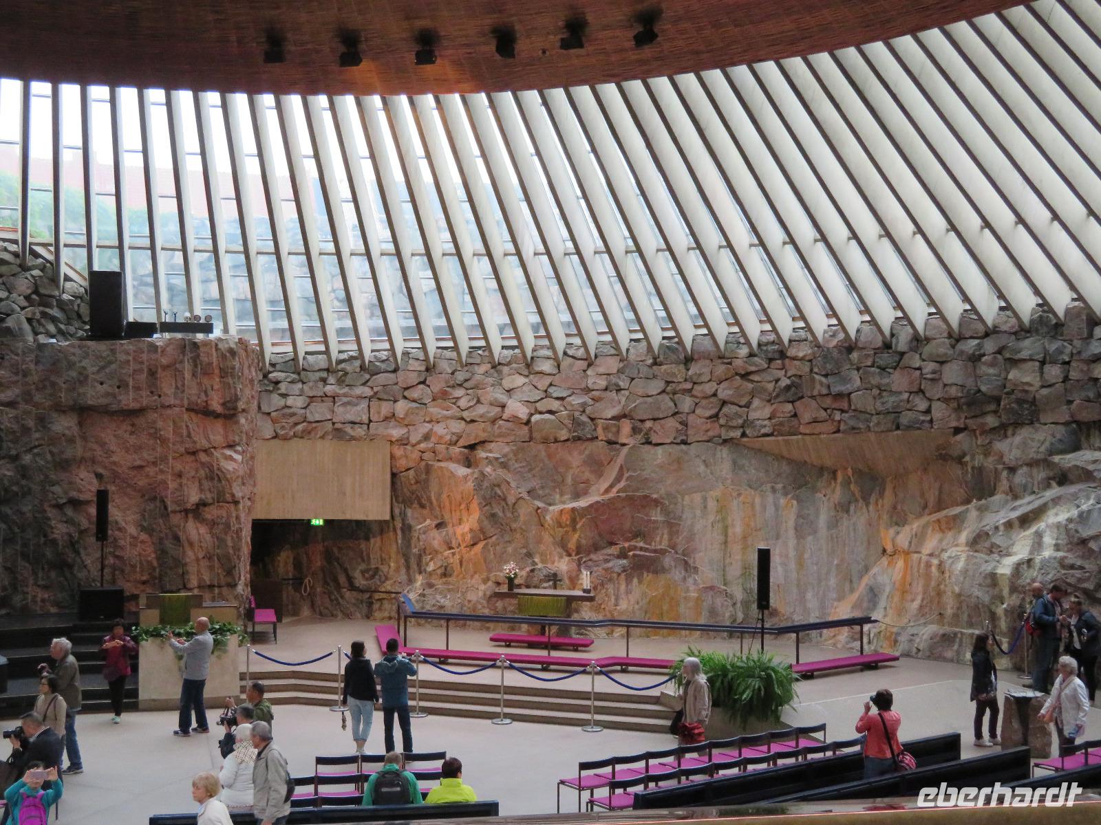 Die gemeinsame Zeit einer Reisegruppe von Bus- und Fluggästen sollte an diesem Tag planmäßig zu Ende gehen. Um noch eine gemeinsame Stadtrundfahrt zu erleben, starteten wir zügig nach dem Frühstück. Helsinki ist ein lohnender Abschluss einer Tour durch die baltischen Staaten und St. Petersburg; die Stadt verbindet schwedische und russische Geschichte, Neoklassizismus und Jugendstil mit typisch Finnischen. Einen Besuch in der Felsenkirche schoben wie zusätzlich mit ein, handelt es sich doch um ein herausragendes architektonisches Kirchenbauwerk. Am Senatsplatz unter dem weißen Dom des Berliner Baumeisters Engel verabschiedeten wir die Gäste zum Flughafen. Nach noch individuellem Bummeln - meist Markt und Markthalle - erreichten wir mit unserem Reisebus mit Gelassenheit den Hafen und unser Schiff „Finnmaid". Bei Sonne schipperten wir durch die Schären vor Helsinki; bei leicht aufkommendem Wind erreichten wir die offene See. Bald Zeit zum Büffet zu gehen: Elch, Ente, Fisch in aller Mannigfaltigkeit und dann ran an das Dessertbüffet.
