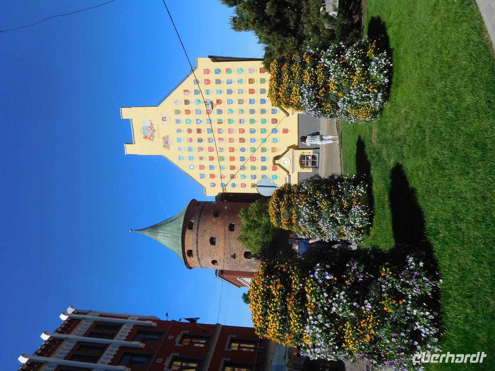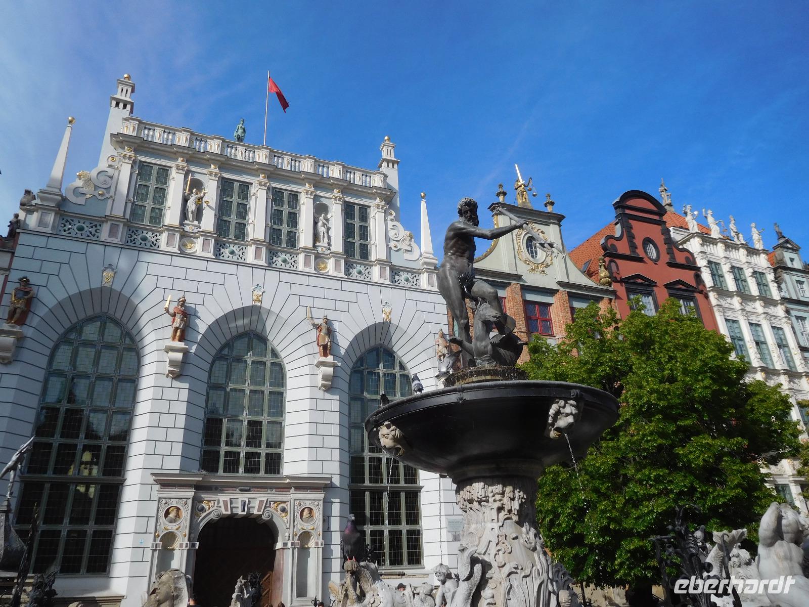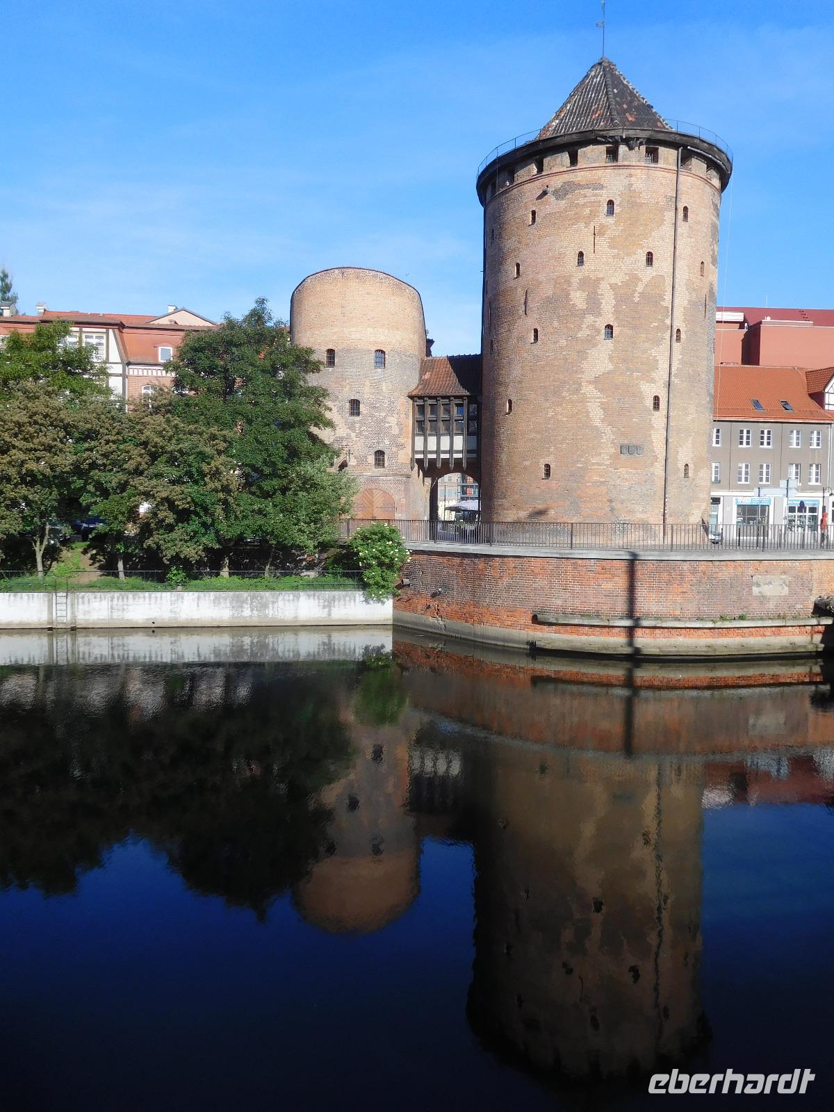 Nach zügiger Fahrt erreichten wir pünktlich in Frankfurt/Oderdie Grenze zu Polen. Weiter ging es per neuer Autobahn nach Posen, Gnesen und Thorn. Um die die Fahrtzeit zu überbrücken, erzählte der Reiseleiter schon vorab allerhand Unterhaltsames aus der reichen Geschichte des polnischen Königreichs, sowie über die Städte, durch die wir fuhren. Natürlich kamen auch interessante Informationen über Danzigs und Pommerns reicher Historie und das Wirken des Deutschen Ordens. Die Mittagspause absolvierten wir auf dem Parkplatz der Kathedrale von Gnesen. 968 wurde hier das erste polnische Bistum gegründet und im Jahre 1000 war der Kaiser bei der Grablegung der Reliquien des heiligen Adalbert anwesend, was als Anerkennung des polnischen Königtums gewertet wird. Der Schrein mit den Reliquien und eine hochromanische Bronzetür aus der Zeit um 1200 gehören zu den wichtigsten Schätzen der Kathedrale, die wir besichtigen konnten. Weil wir bereits vor halbfünf im Danziger Hotel auf der Speicherinsel einchecken konnten, bot der Reiseleiter noch vor dem Abendessen einen Stadtspaziergang an. Wir schlenderten dann durchs Grüne Tor zum Langen Markt, sahen die schönsten Stadttore, den frisch sanierten Artushof, das rechtstädtische Rathaus mit der dahinter liegenden riesigen gotischen Marienkirche und durch das Königstor hindurch zur Markthalle mit der Nikolaikirche und dann zur Johanniskirche. Der Weg endete an dem mit Kneipen gepflasterten Weg die Mottlau entlang zum alten Hafenkran. Fußläufig und rechtschaffen hungrig erreichten wir das Hotel.