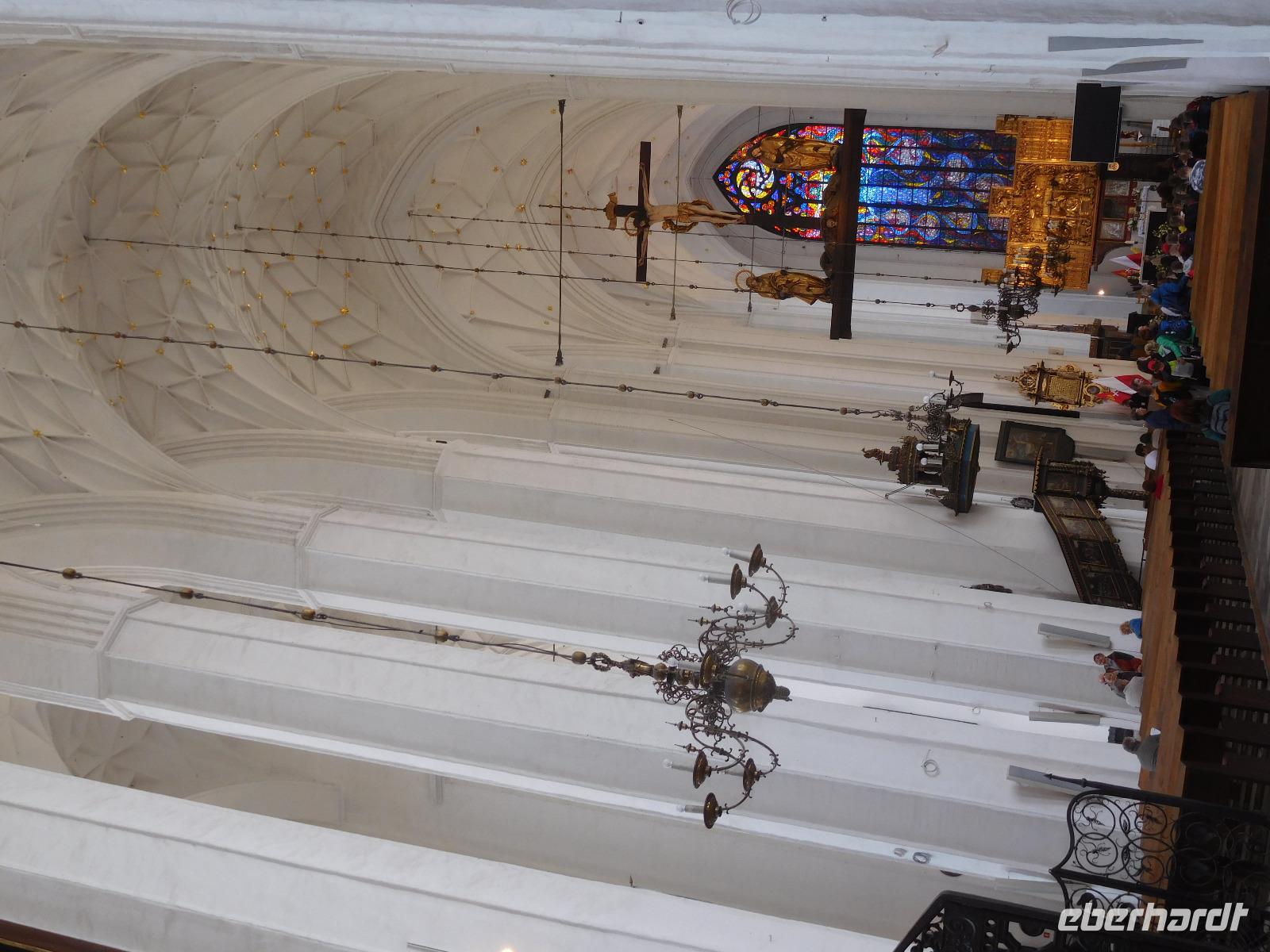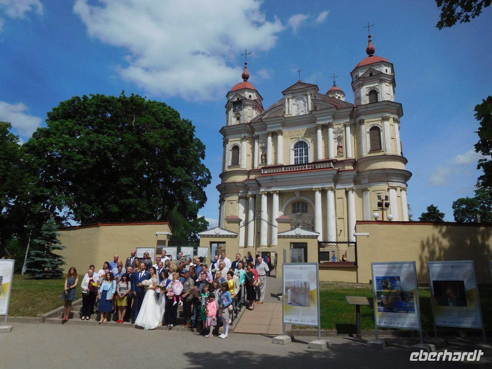 Zuerst fuhren wir die barocke Kirche Peter und Paul mit unzähligen Stuckfiguren im Innern an. Dann betraten wir beim Tor der Morgenröte die Altstadt. Unser Spaziergang führte zu den wichtigsten Kirchen und Sehenswürdigkeiten. Genannt seien der Komplex der im 16. Jahrhundert als Jesuitenkolleg gegründeten ältesten Universität Litauens, sowie die Kathedrale am wieder aufgebauten Schloss der litauischen Großfürtsten, von dem aus das Geschlecht der Jagiellonen als Köige der litauisch- polnischen Union eines der größten Länder Europas beherrschten. Es ging zum gotischen Ensemble des Bernhardinerklosters und zur Theresienkirche. Während der anschließenden Freizeit erkundete jeder bei herrlichem Sommerwetter nach seiner Neigung die Stadt.