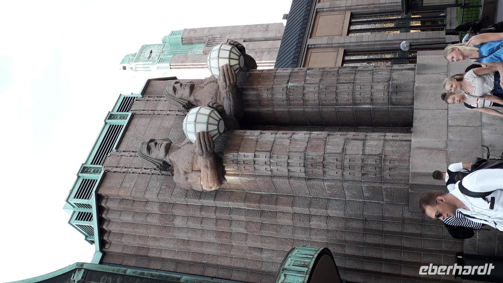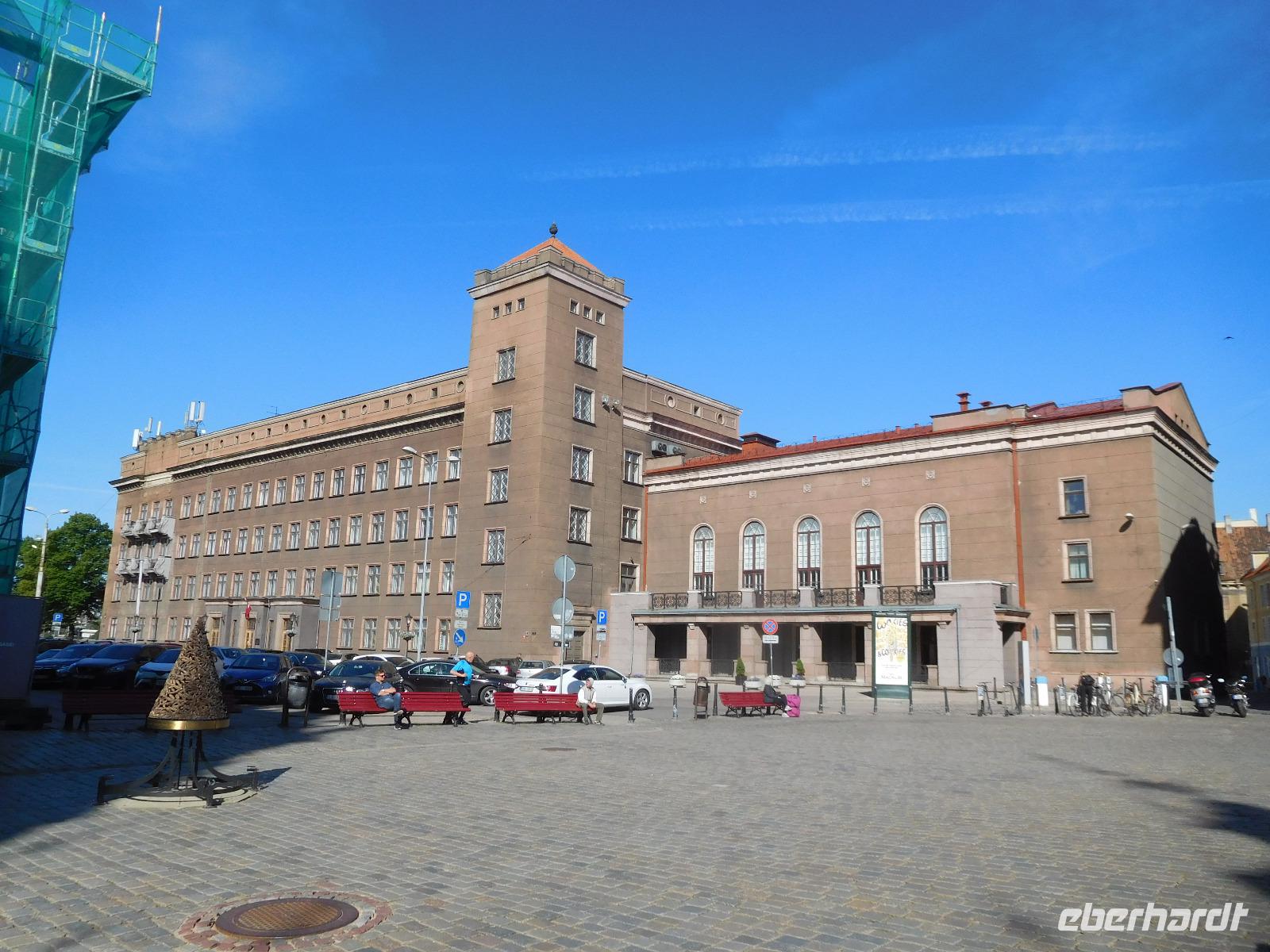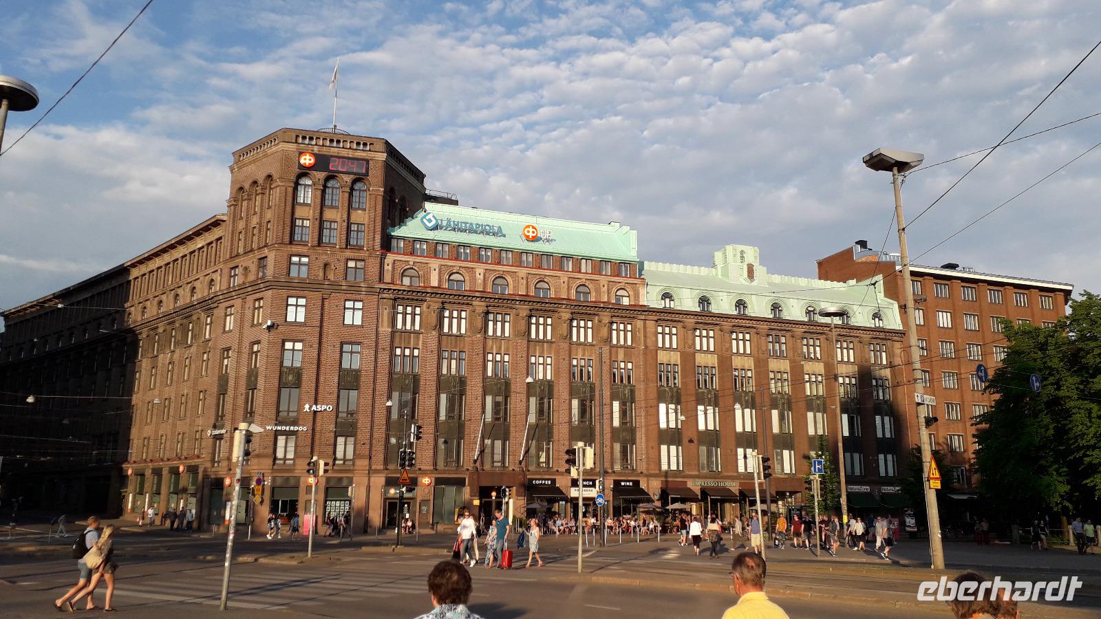 Pünktlich um halbneun begann die Stadtrundfahrt mit der örtlichen Führerin Riitta. Die Schreibweise ist kein Fehler. Die charmante und kompetente Dame zeigte uns die wichtigsten Kirchen der Stadt, sprich den lutherischen Dom mit den Gebäuden am Senatsplatz. Wir fuhren am Sibeliusdenkmal und am Olympiastadion vorbei und sahen auch die am Meer gelegenen Teppichwaschplätze. Die Tour endete am Hotel, wo wir uns in unseren Zimmern nochmal erfrischen konnten, bevor wir auscheckten und das Gepäck in den Bus luden. Von hier war es nicht weit zum Rathaus, sowie zum Markt und zur Markthalle, wo es diverse Möglichkeiten zur lokaltypischen Verköstigung, vor allem mit frischem Fisch und Meeresfrüchten gibt, die allgemein genutzt wurden.