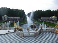 Anschließend begann mit dem Besuch der Eremitage der kunsthistorischen Höhepunkt der Reise, denn schließlich ist sie eine der drei größten Kunstsammlungen überhaupt, auch qualitativ. Anschließend wartete mit Peterhof die nach dem Vorbild von Versailles als Sommerschloss erbaute Palastanlage. Sie begeistert vor allem durch die imposanten Wasserspiele mit zahlreichen vergoldeten Figuren, die die größte geschlossene Brunnenanlage der Welt bilden. Leider ging ein Gewitter über die Gegend, das von einigen Schauern begleitet wurde, doch trotzdem ließen wir uns die Führung nicht vergällen. Das Funkeln der Fontänen und der vergoldeten mythologischen Figuren, dazu im Hintergrund die Ostsee- einen schöneren Abschluss der Tage in Petersburg kann man sich kaum vorstellen.Sonnabend, den achten Juni - Von Russland nach Finnland