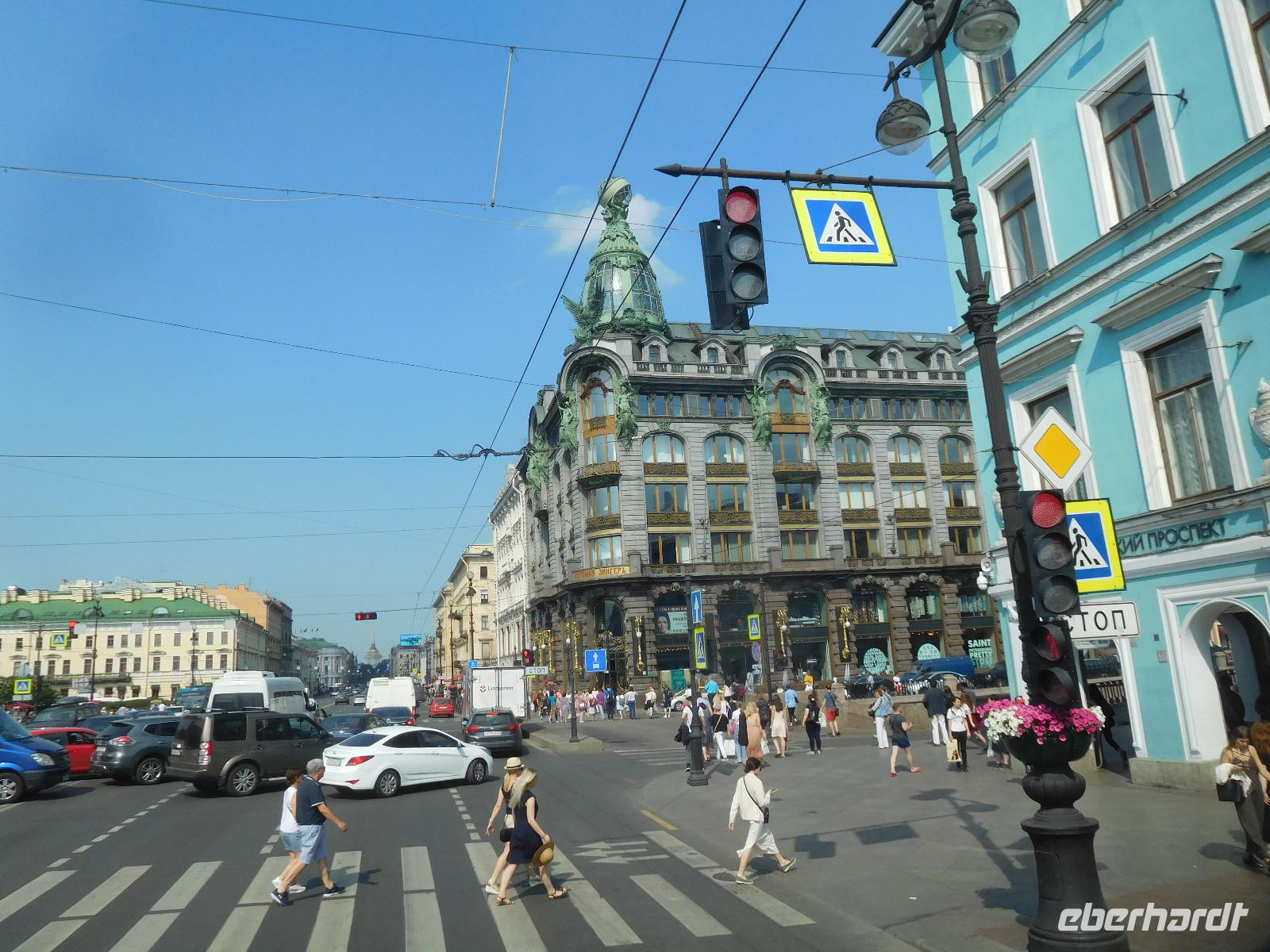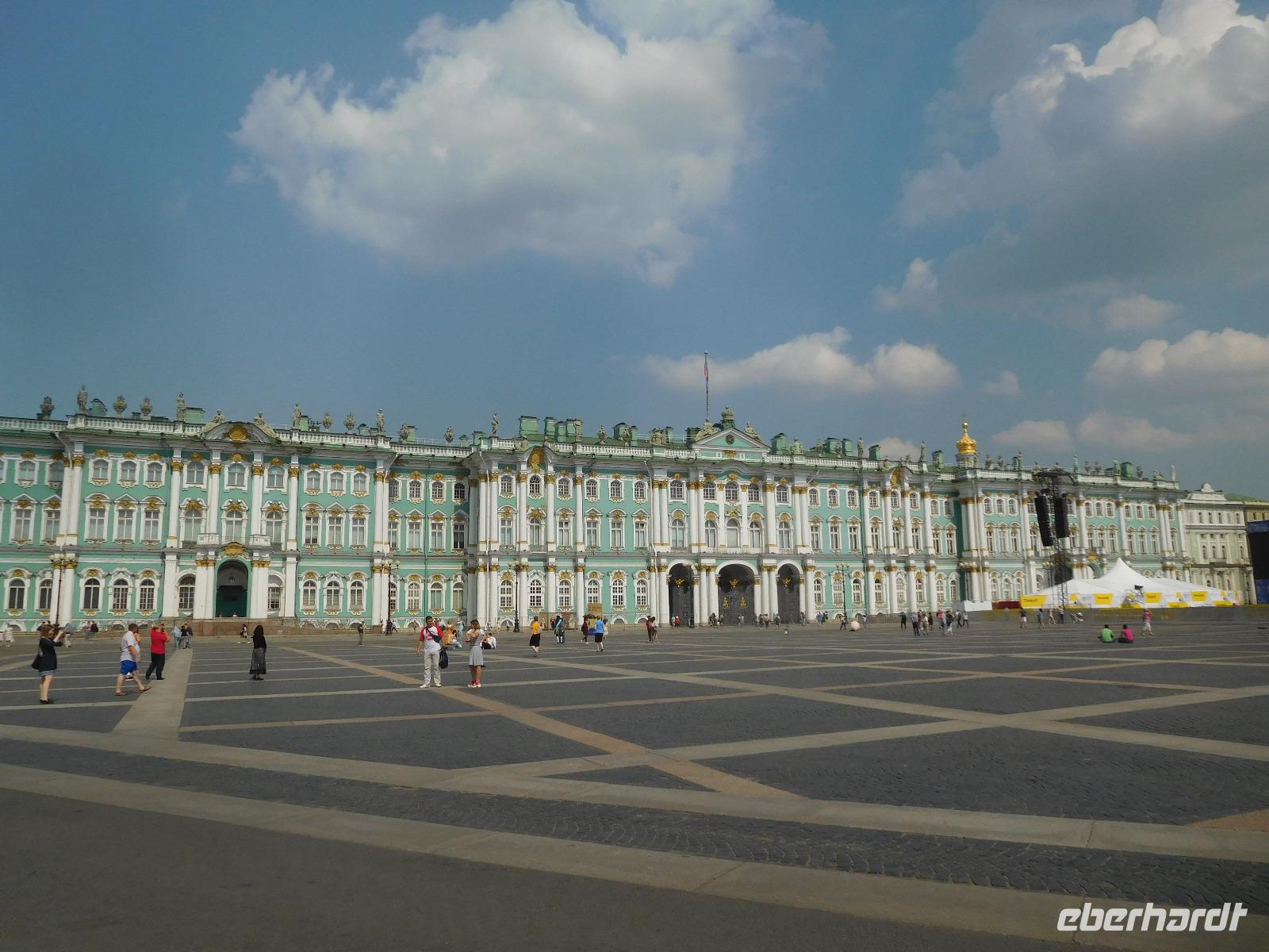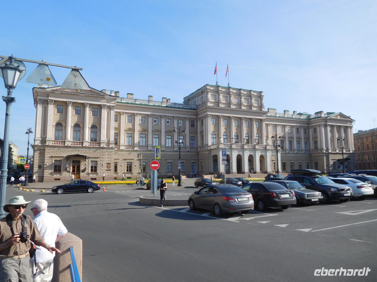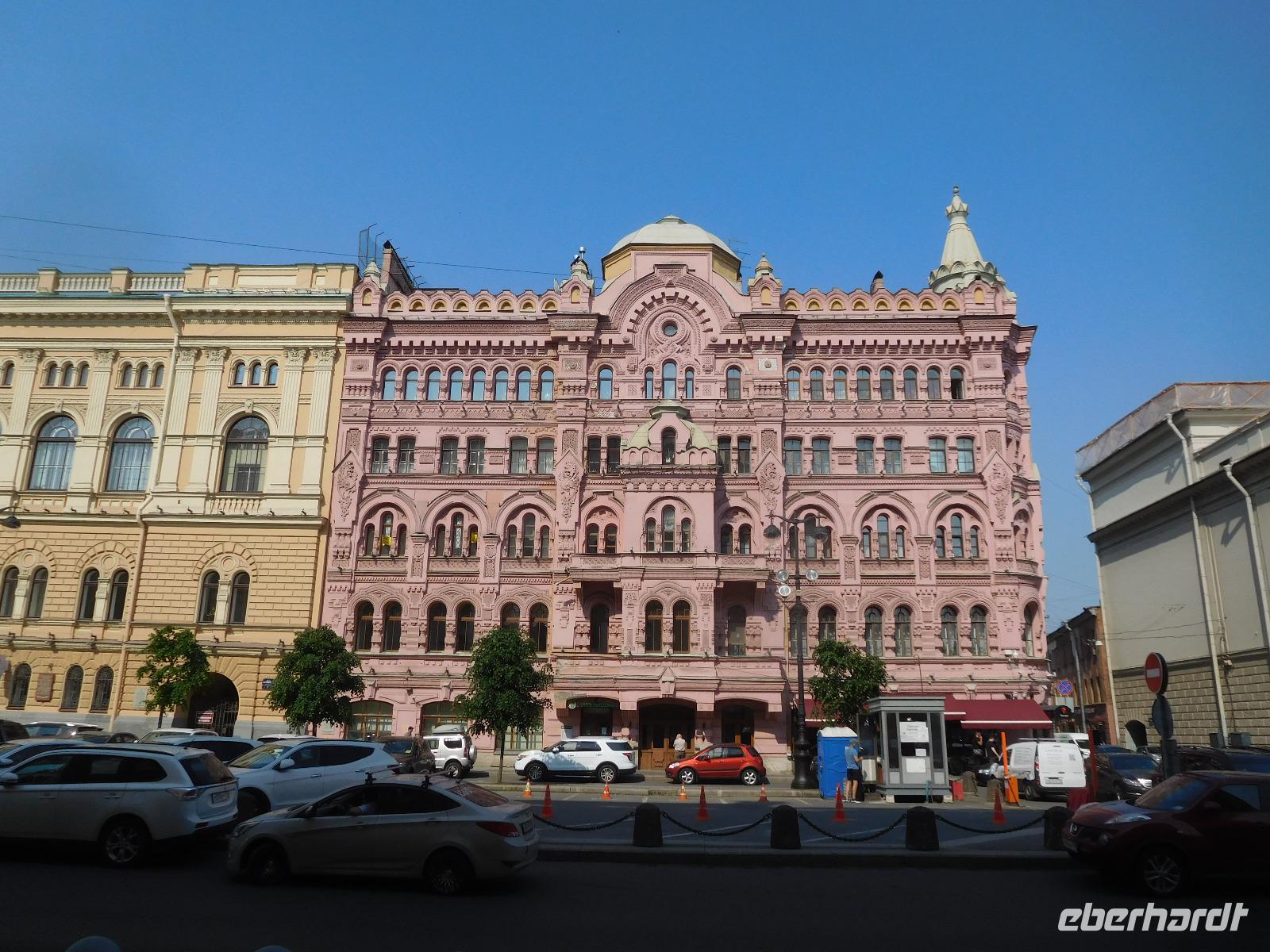Nach dem Frühstück traten wir wegen des anspruchsvollen Tagesprogramms mit Einreise nach Russland zeitig die Weiterreise an. Schweren Herzens verabschiedeten wir die so engagierte wie kompetente Reiseleiterin Wanda, die allen ans Herz gewachsen war. Den russischen Reiseführer Timofej, abgekürzt Tim, nahmen wir gleich nach der Grenze auf und fuhren nach Petersburg. Auf den Vorschlag unseres engagierten Stadtführers Timo hin entschieden sich alle Gäste auch im Hinblick auf das heiße Sommerwetter für eine Bootsfahrt. Durch einen freundlichen Zuschuß von Eberhardt-Travel hielten sich die Selbstkosten in Grenzen. Die Tour zeigte uns zunächst viele Villen und Paläste am Gribojedowkanal, der Moika und der Fontanka, bevor wir herrliche Ansichten auf der Newa genießen konnten. Wir hatten die denkbar besten Blicke auf den Marmorpalast des Fürsten Orlow, sowie diverse andere Paläste und Kirchen. Anschließend ging es zum Hotel, wo wir sofort einchecken und zum Abendessen gehen konnten.